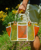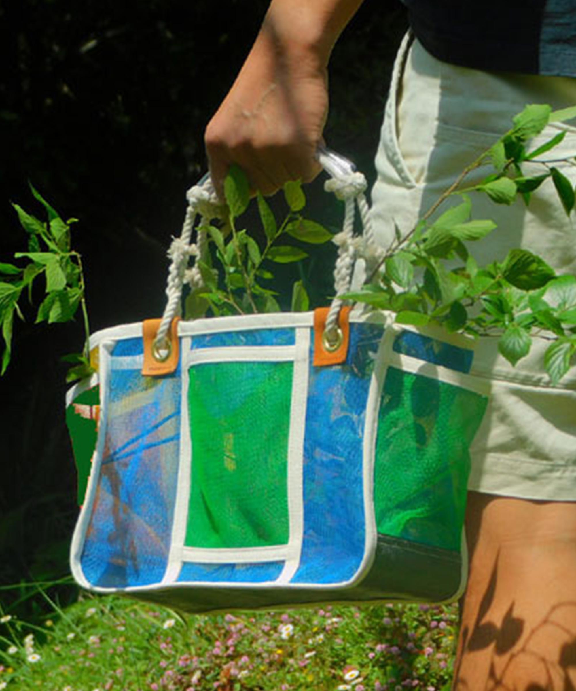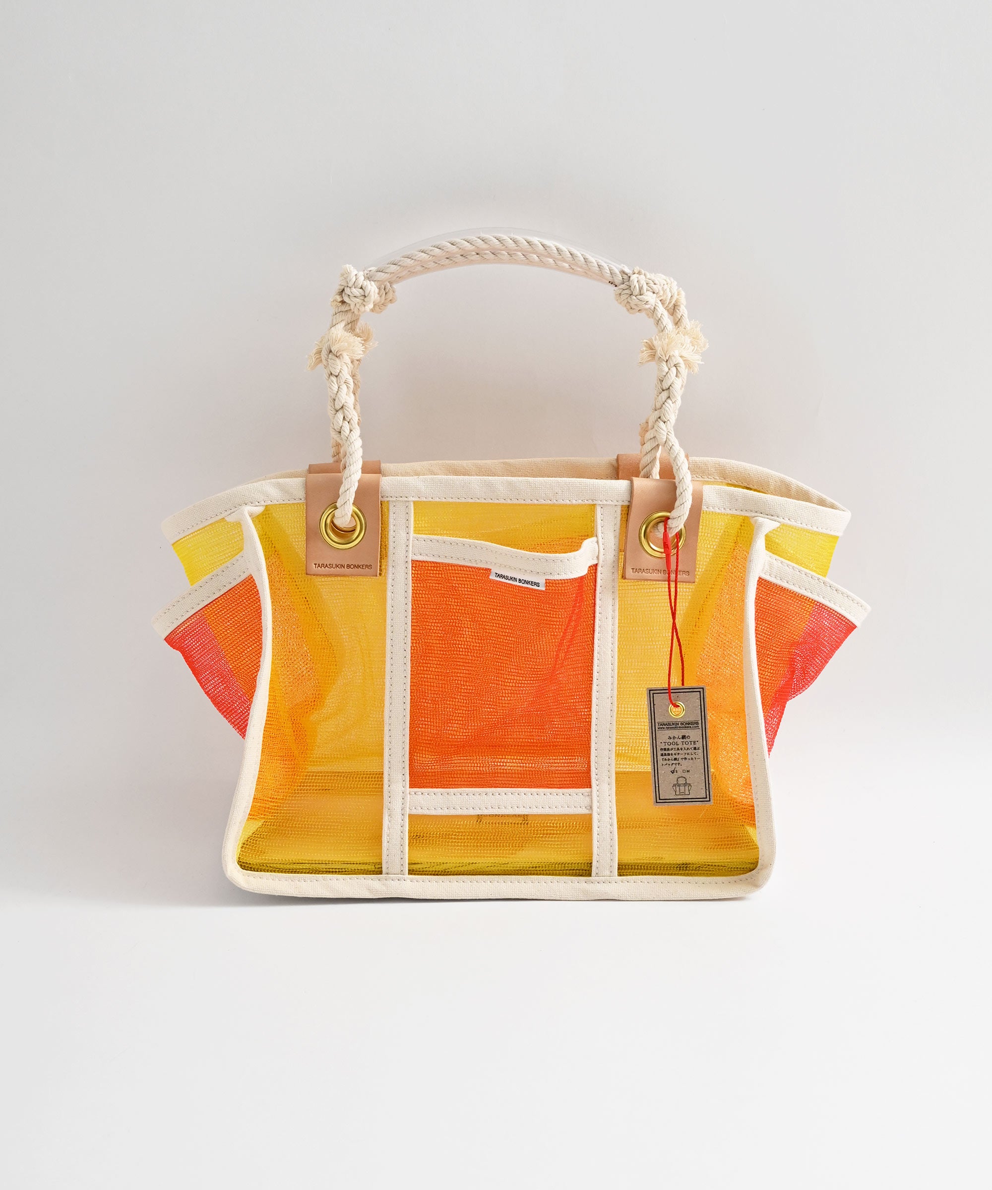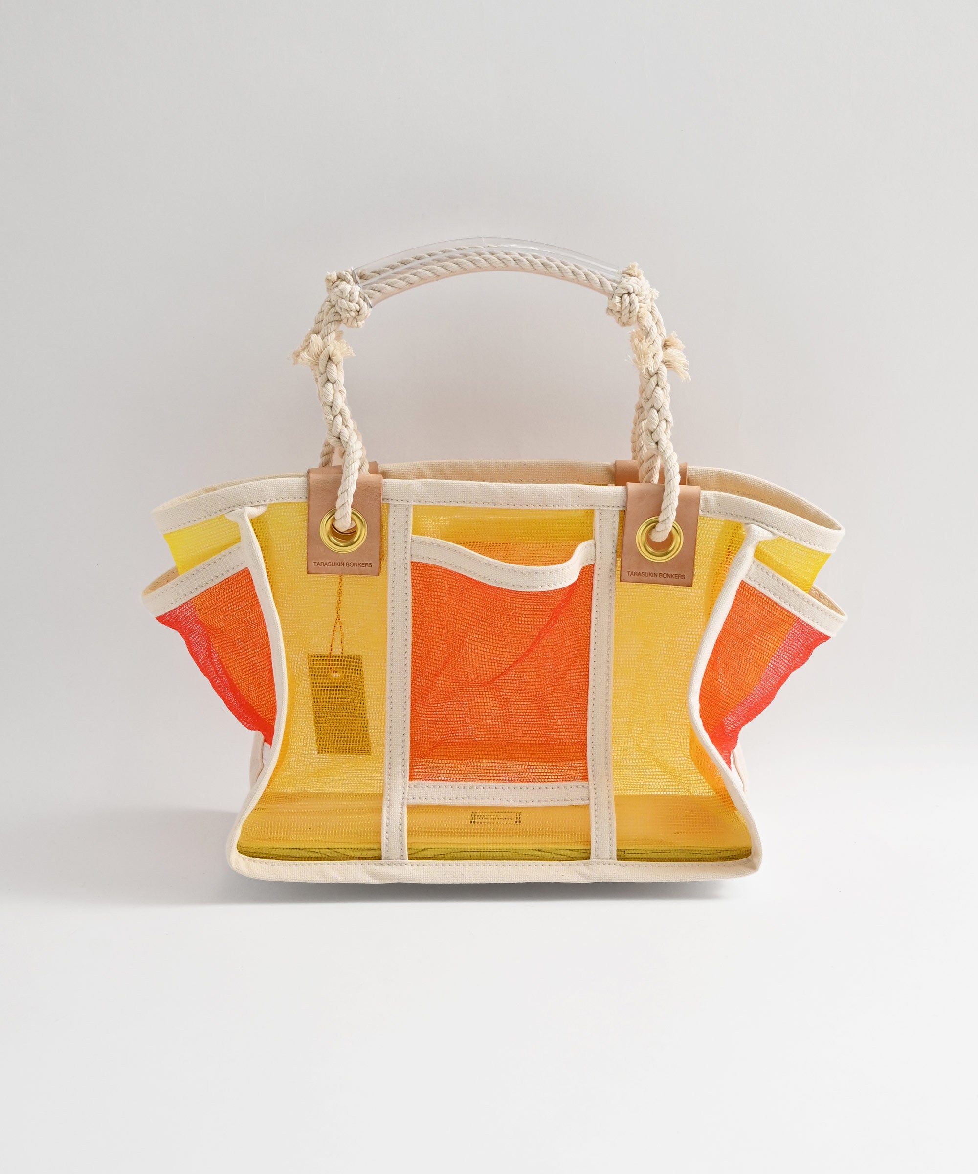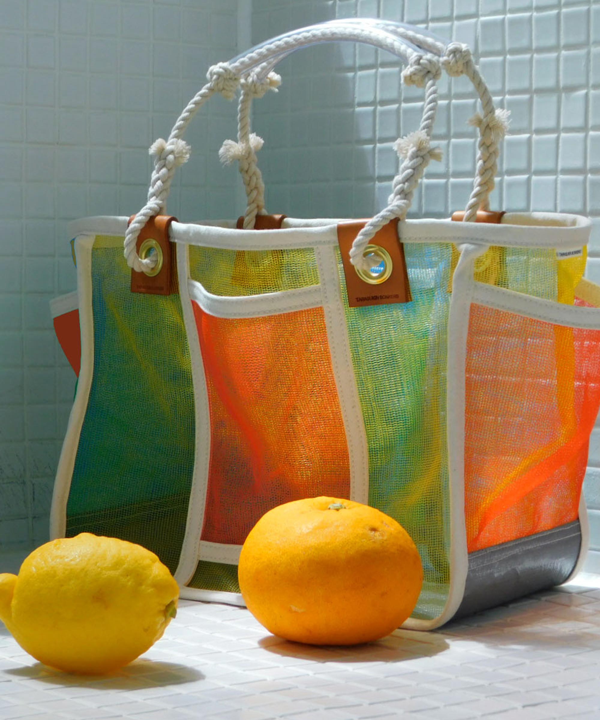 みかんなどの収穫に使われる農業用の網(みかん網)を素材に使用したバッグです。