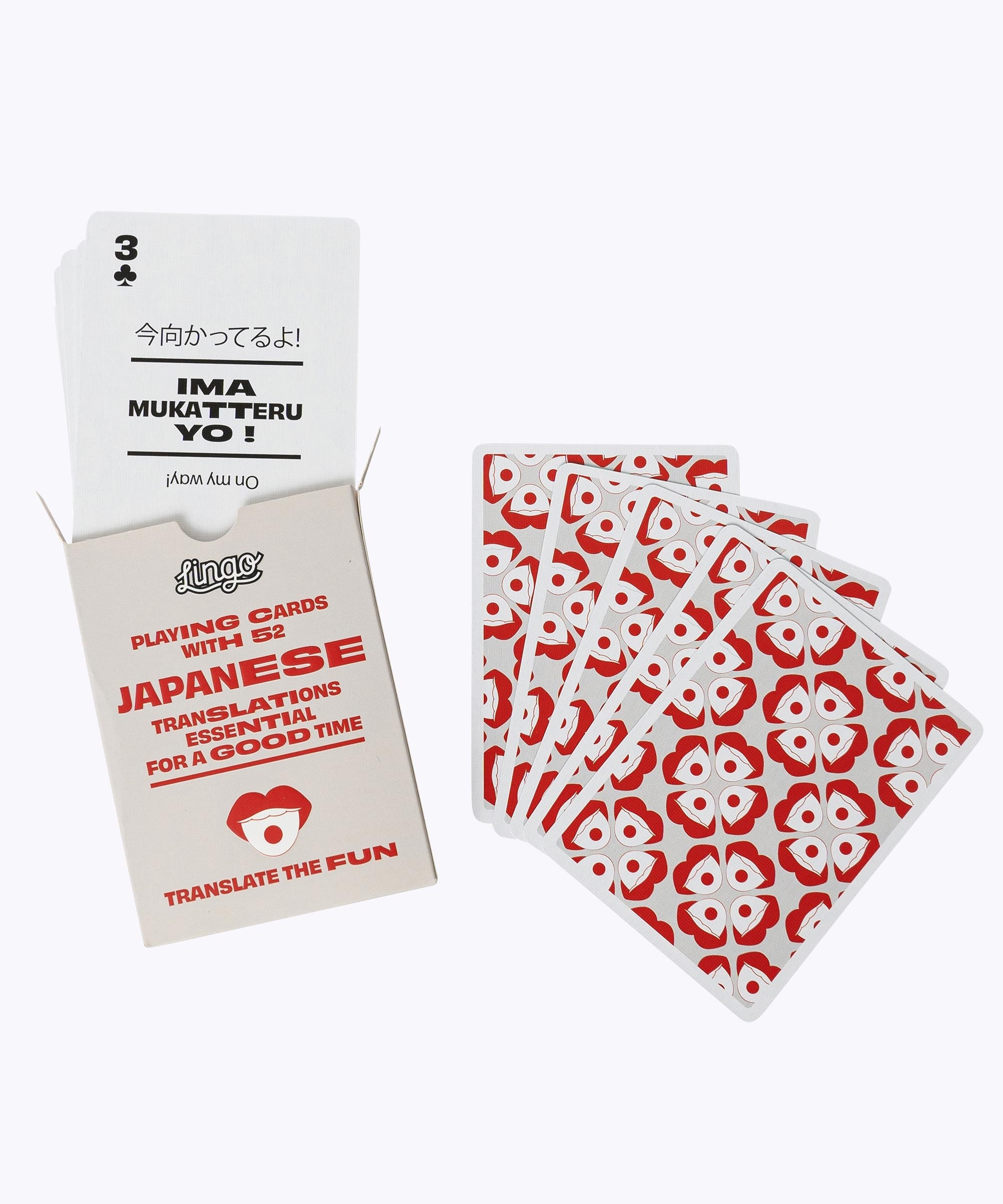各カードには「こんにちは(KONNICHIWA)」「すみません(SUMIMASEN)」から「やった!(YATTA!)」など、日常会話で役立つ日本語のフレーズとその発音が記載されており、ゲームを通じて自然に言語習得が可能。日本語は世界でも5番目に人気といわれ、カルチャーとしての側面で日本モチーフのギフトとしてもおすすめです。