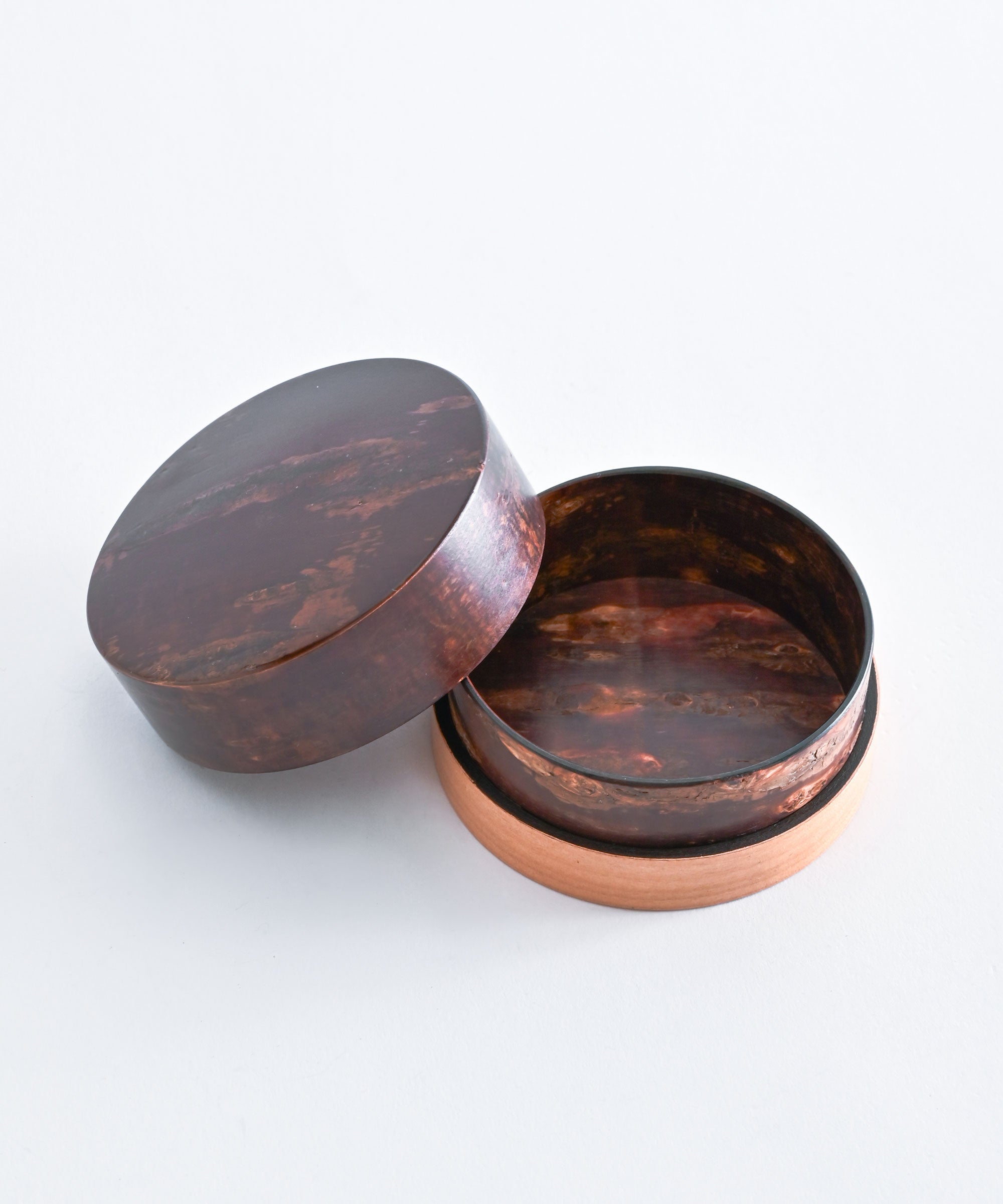 外筒と内筒で作られる「型もの」技法の特性を活かしつつ、新しい製法を用いた菓子入れです。