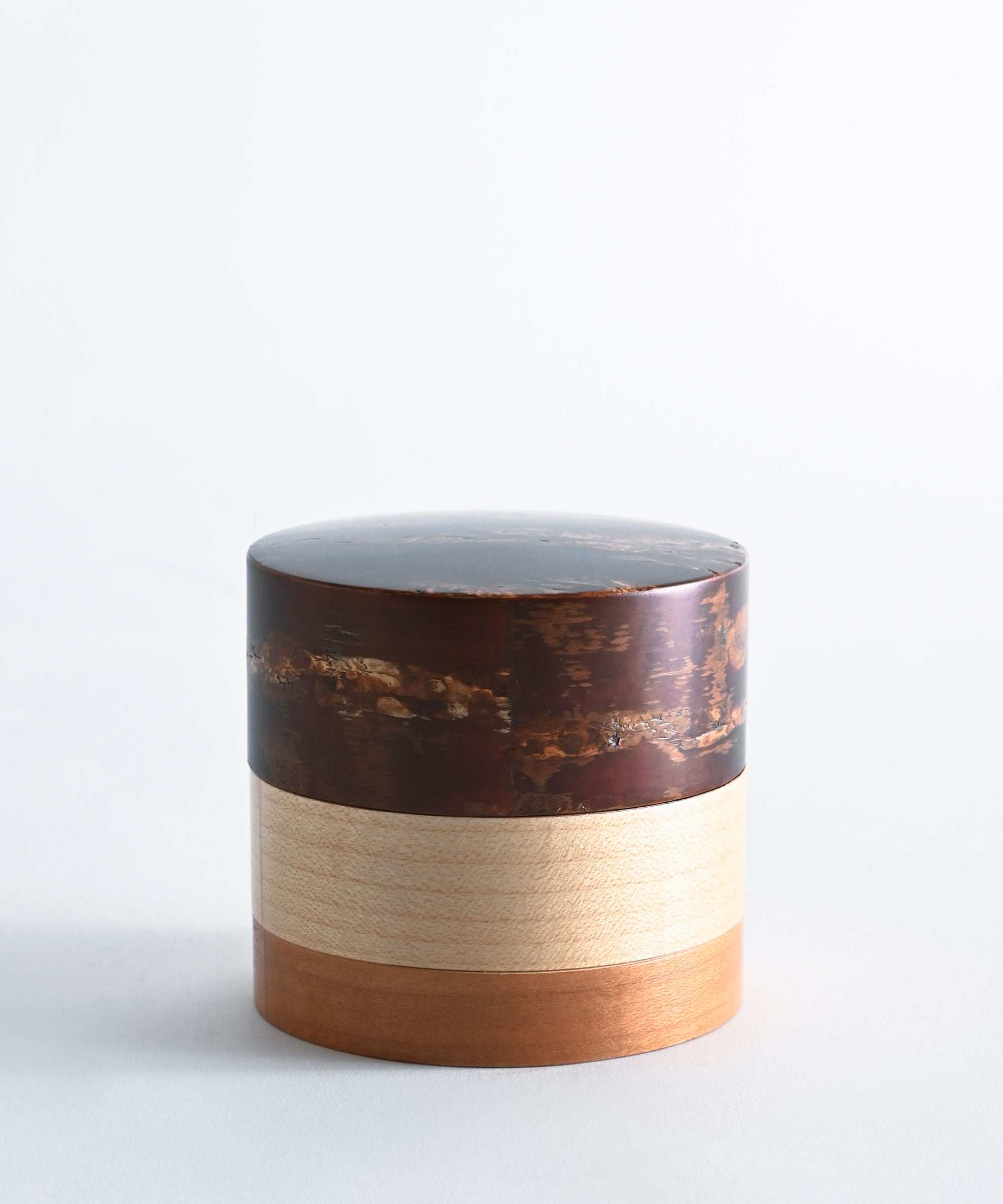 用いている素材は、上から桜皮の無地皮、かえで、さくらで、一番上の外蓋に用いられている「無地皮」が商品名となっています。