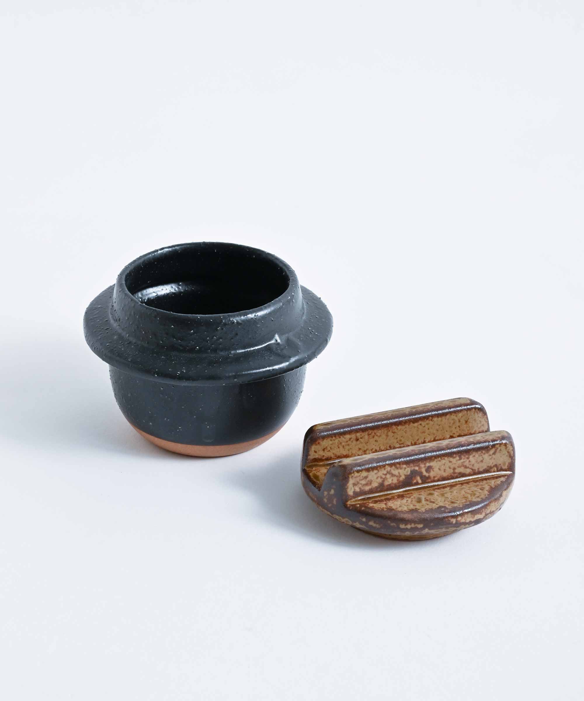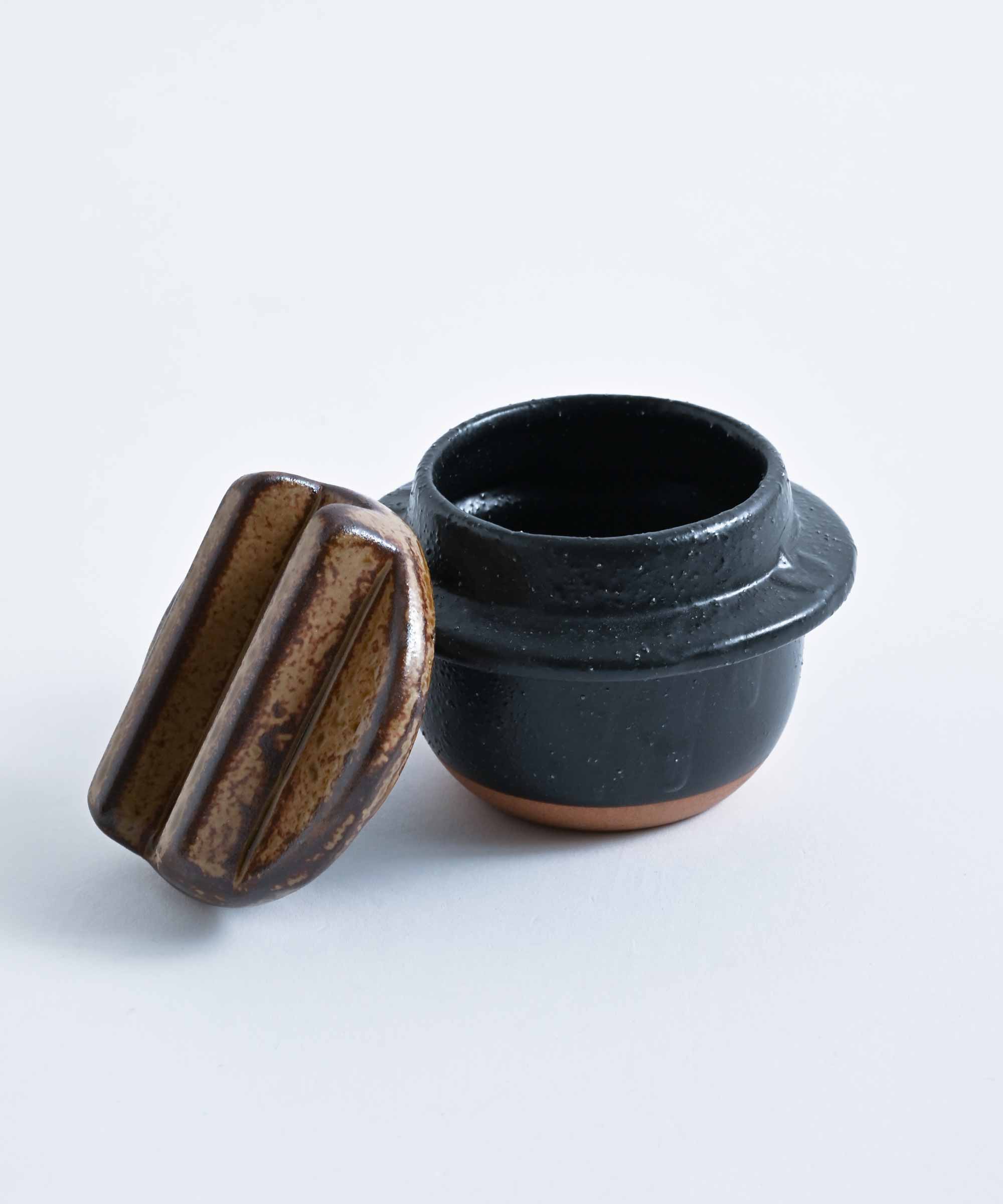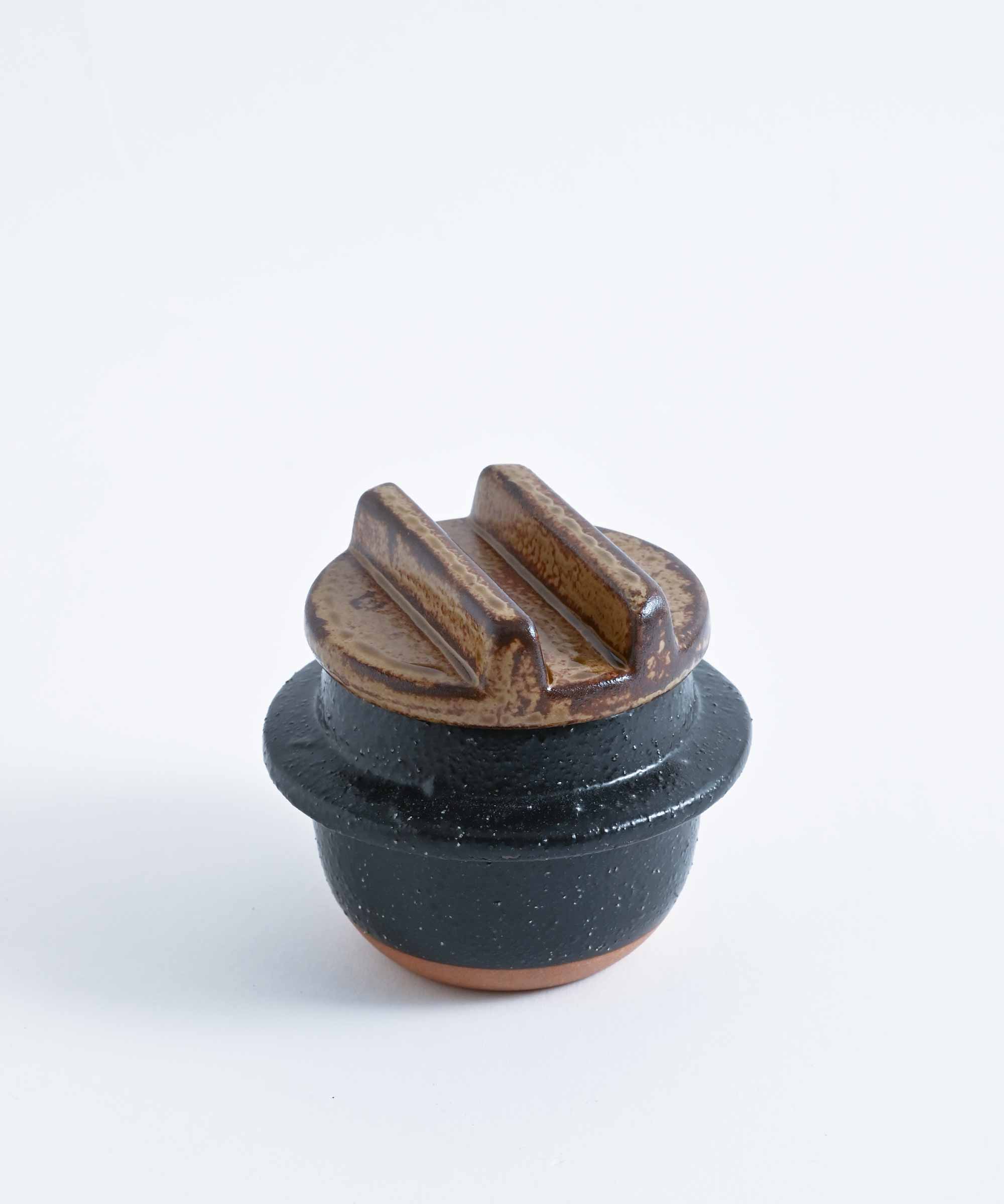 ころんと丸いフォルムが愛らしい、美濃焼の小さなお釜の形の蓋付き薬味入れ。