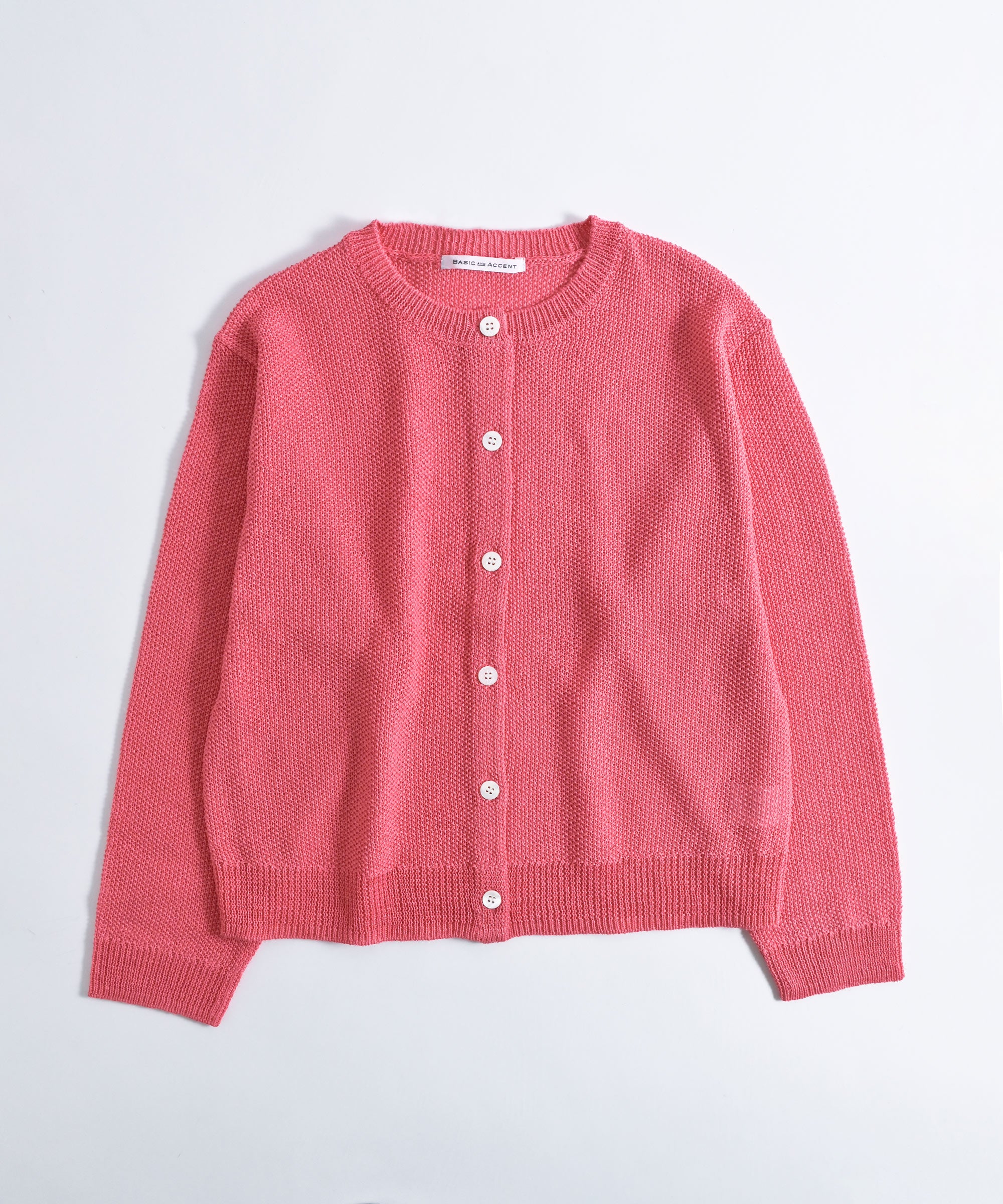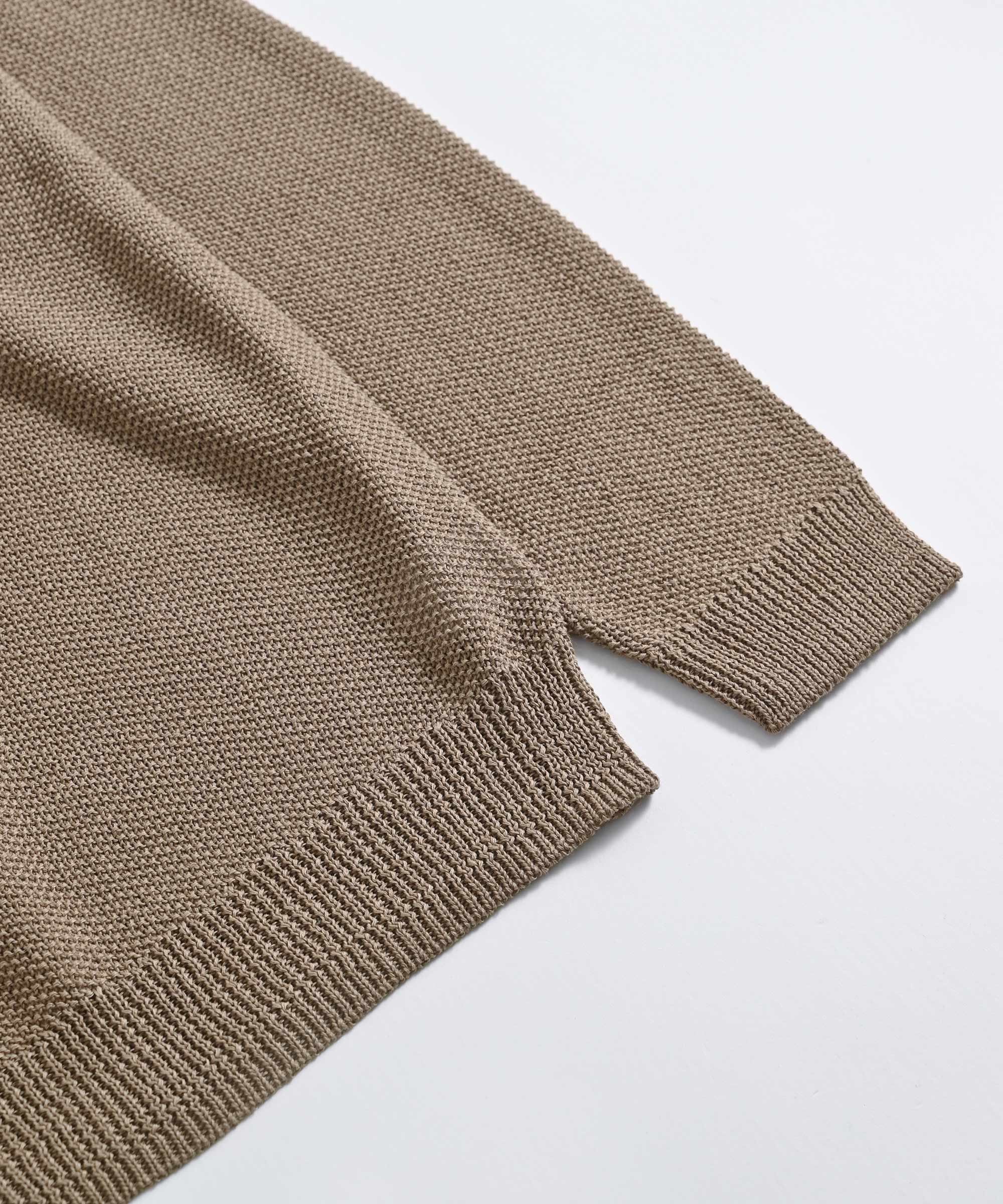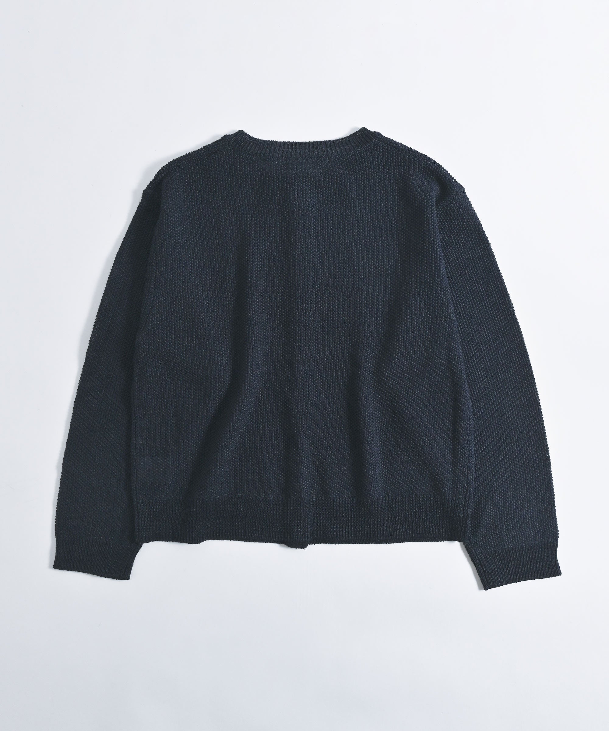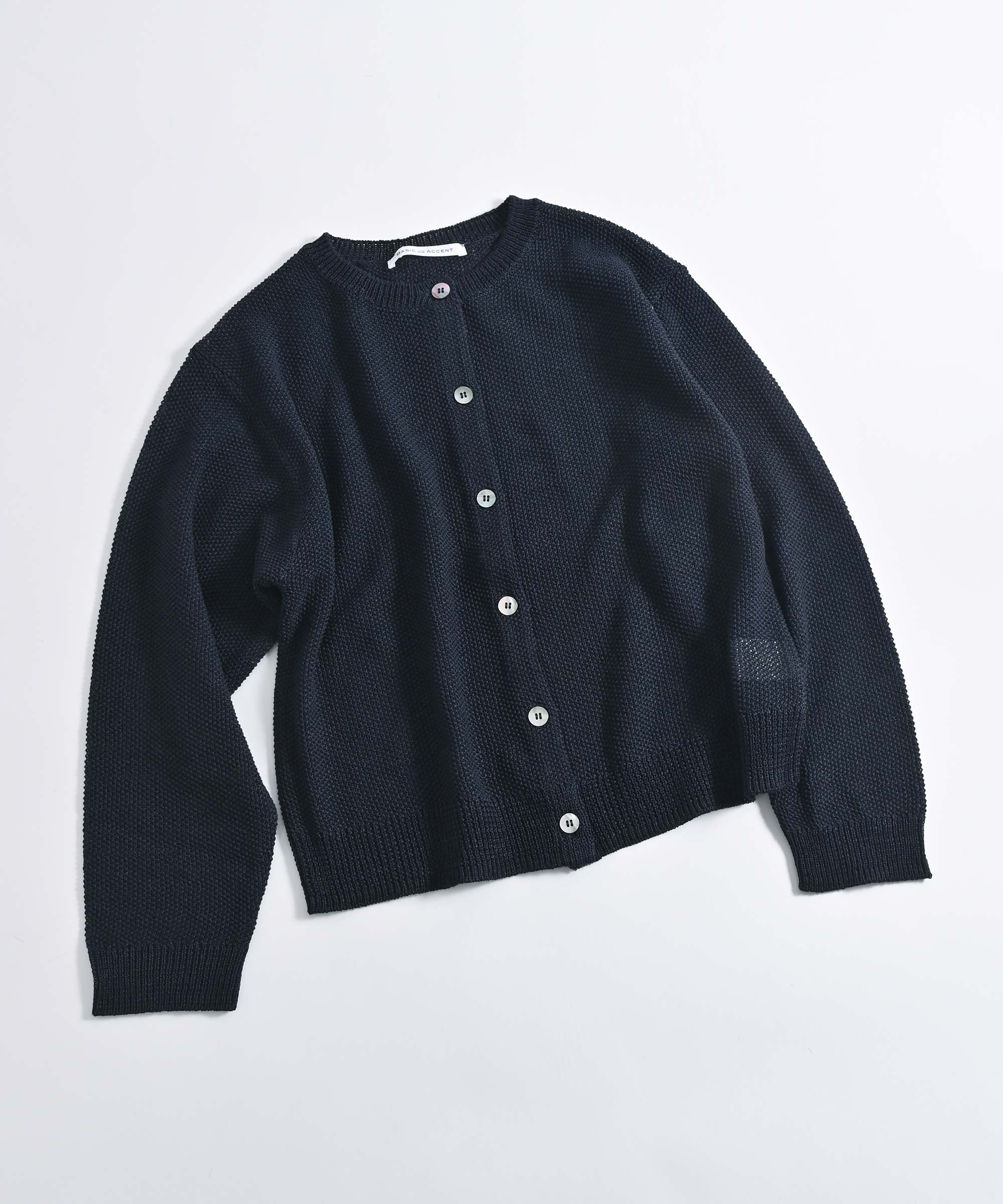 リネンライクな手触りの糸を使用した透かし編みのニットカーディガン。