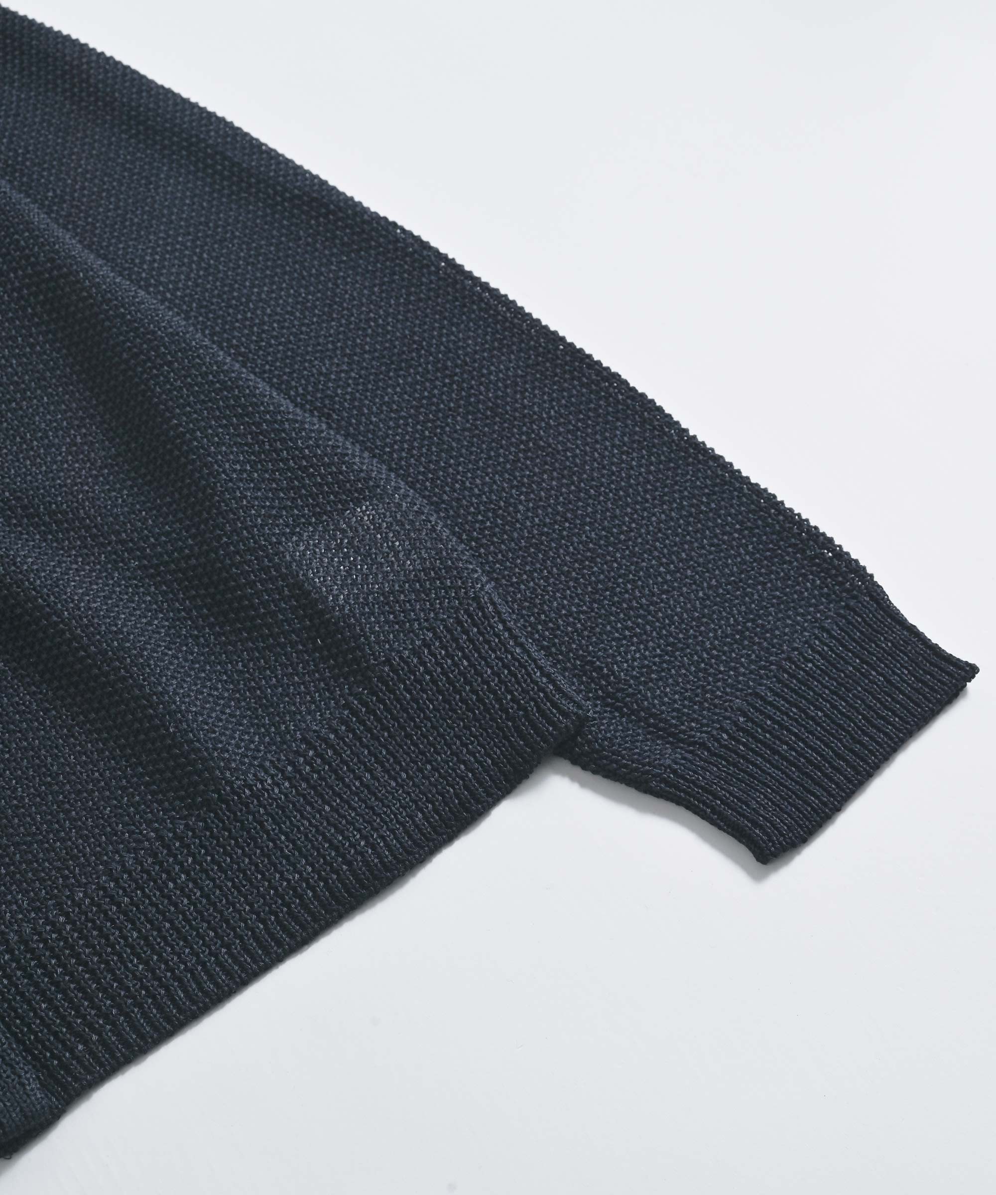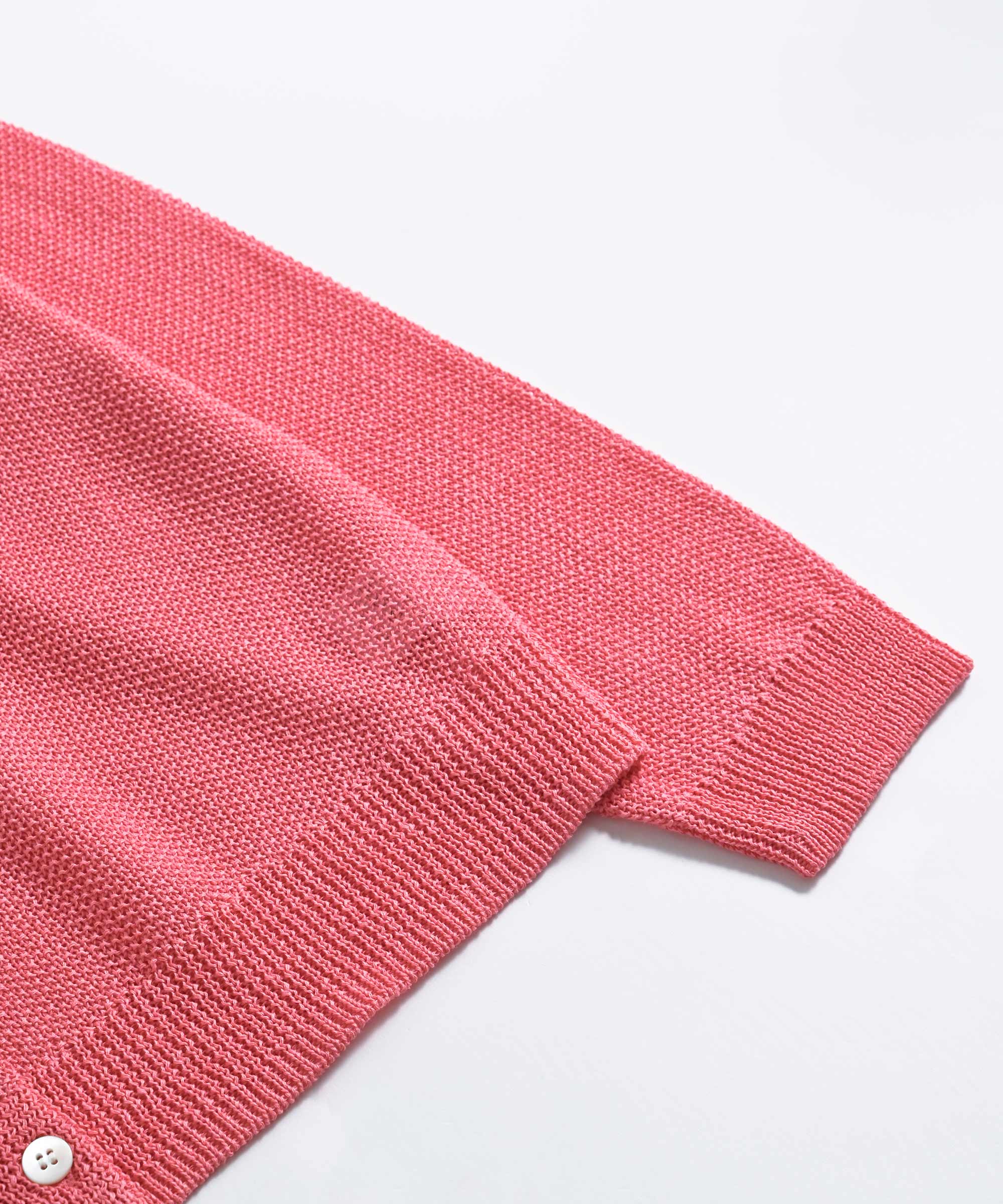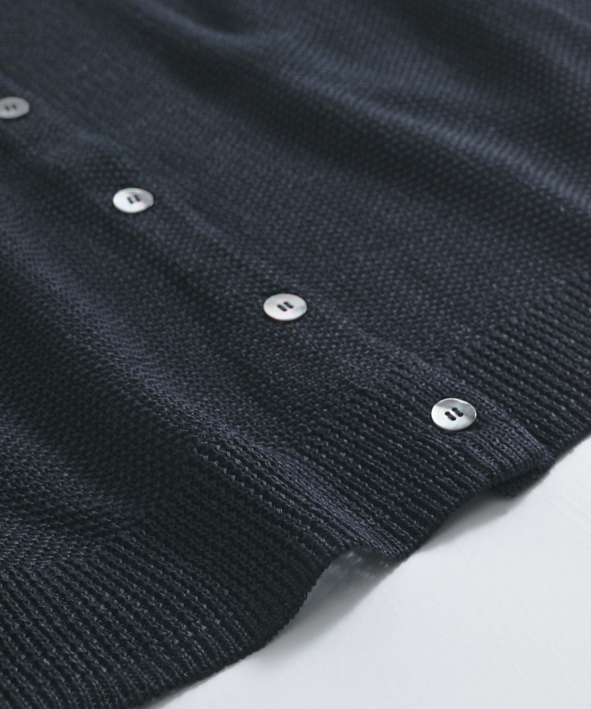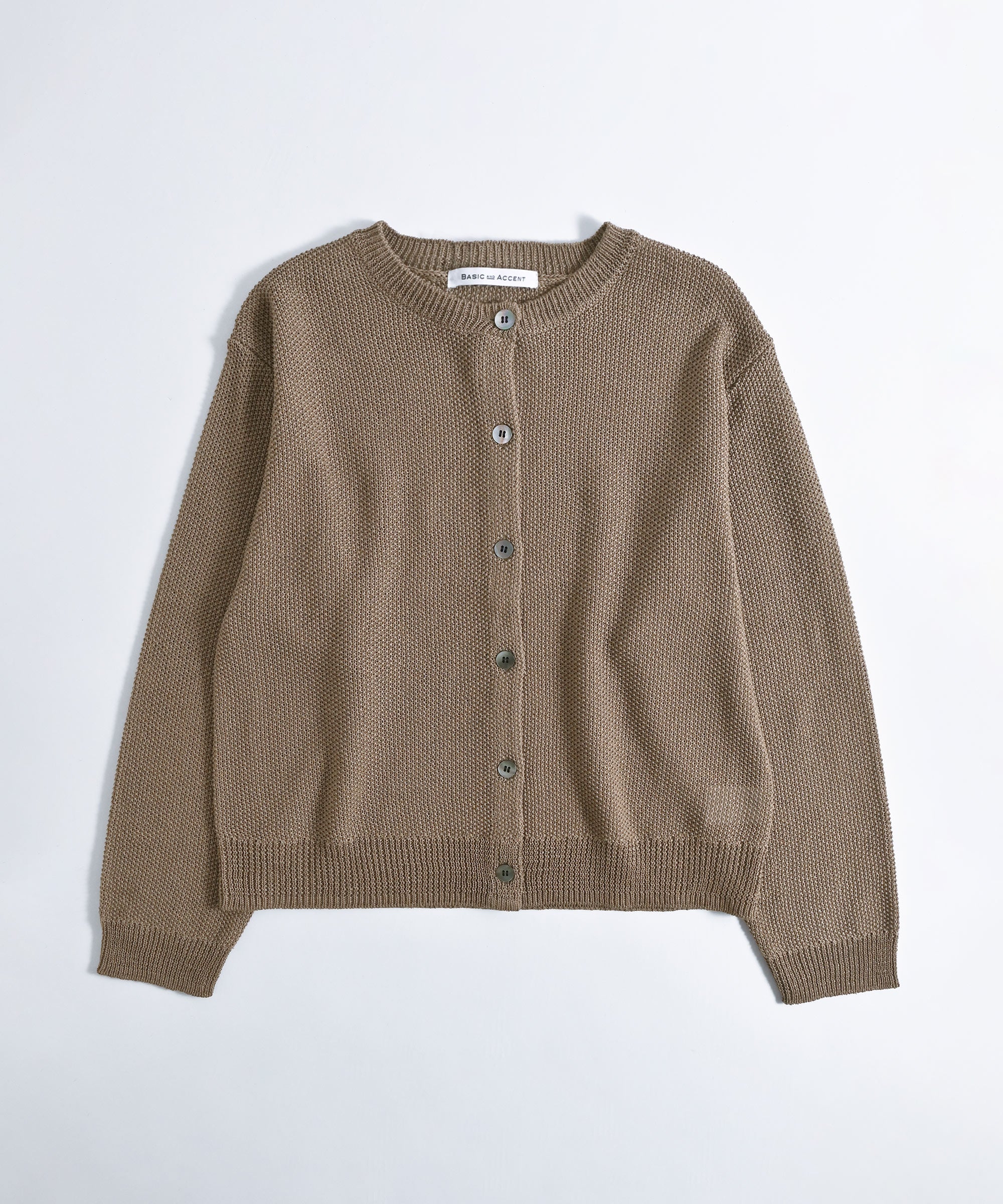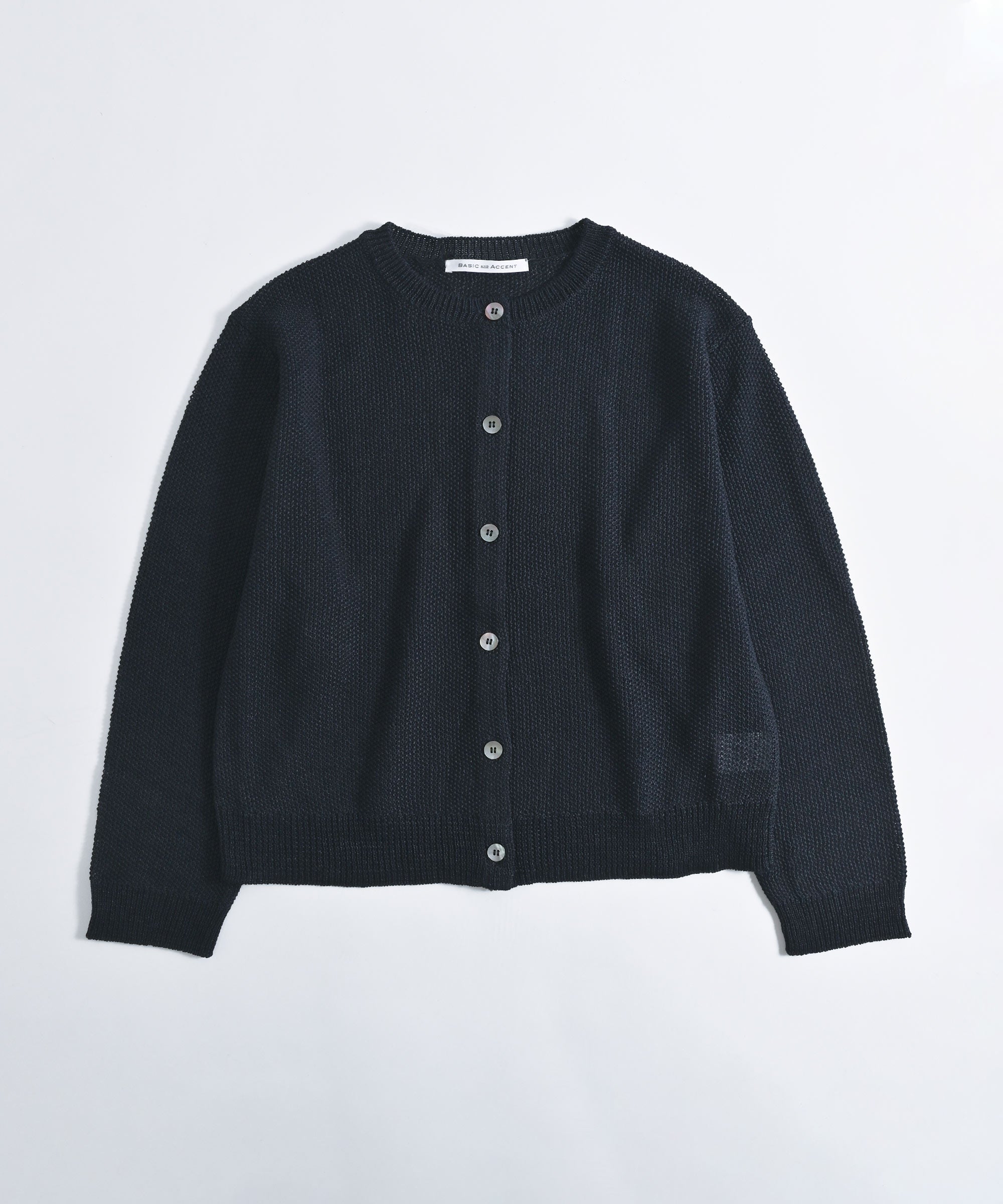 リネンライクな手触りの糸を使用した透かし編みのニットカーディガン。
