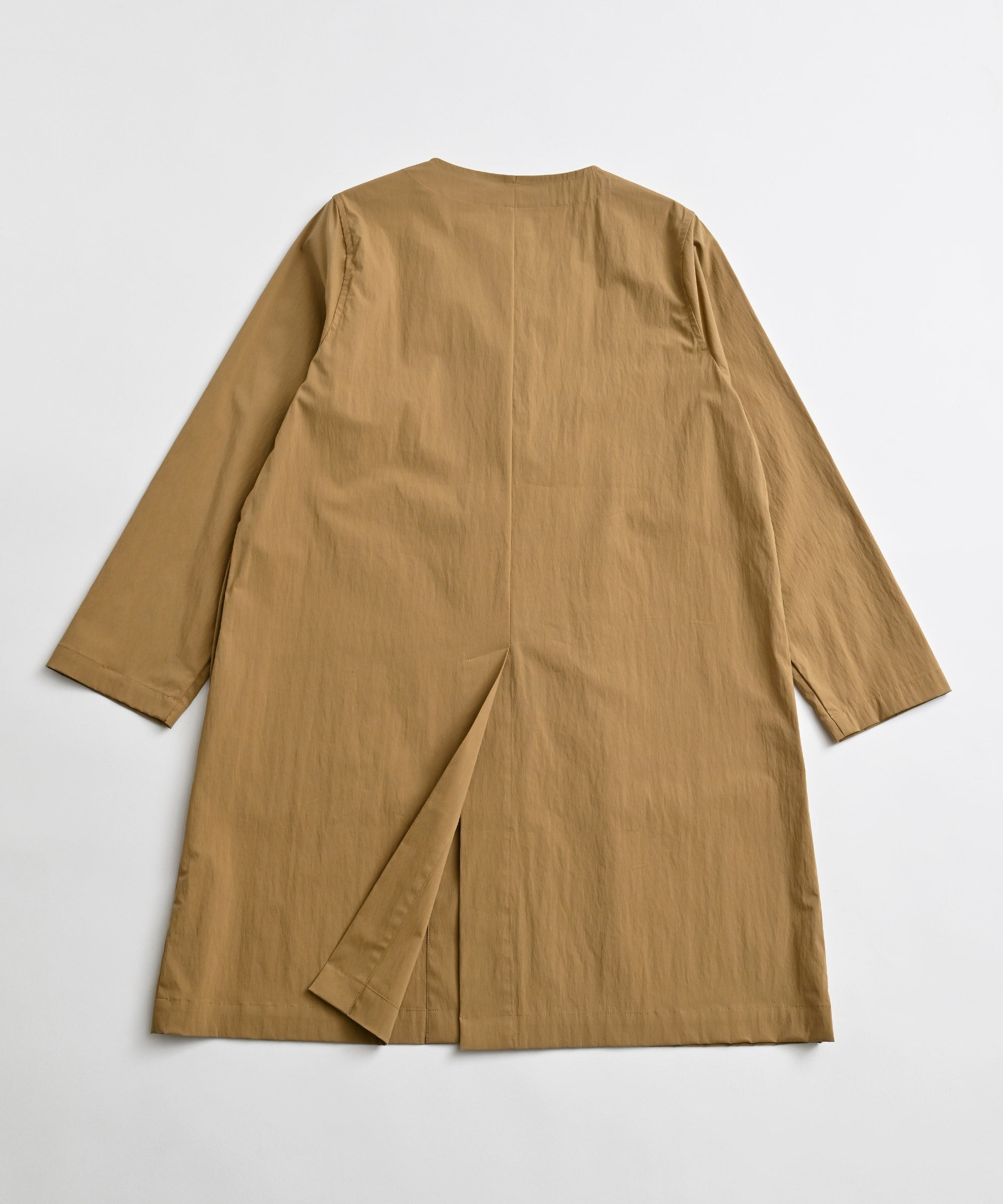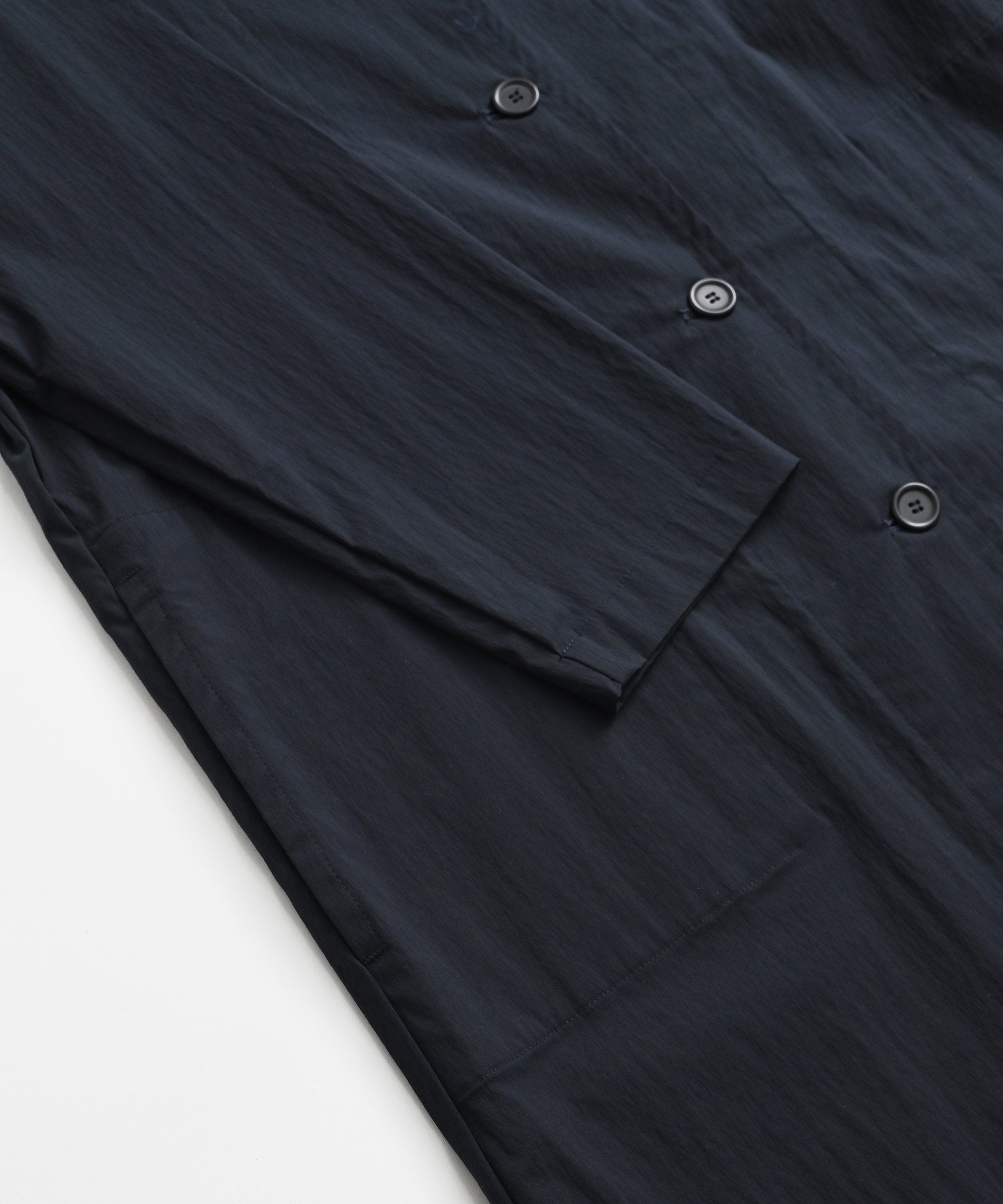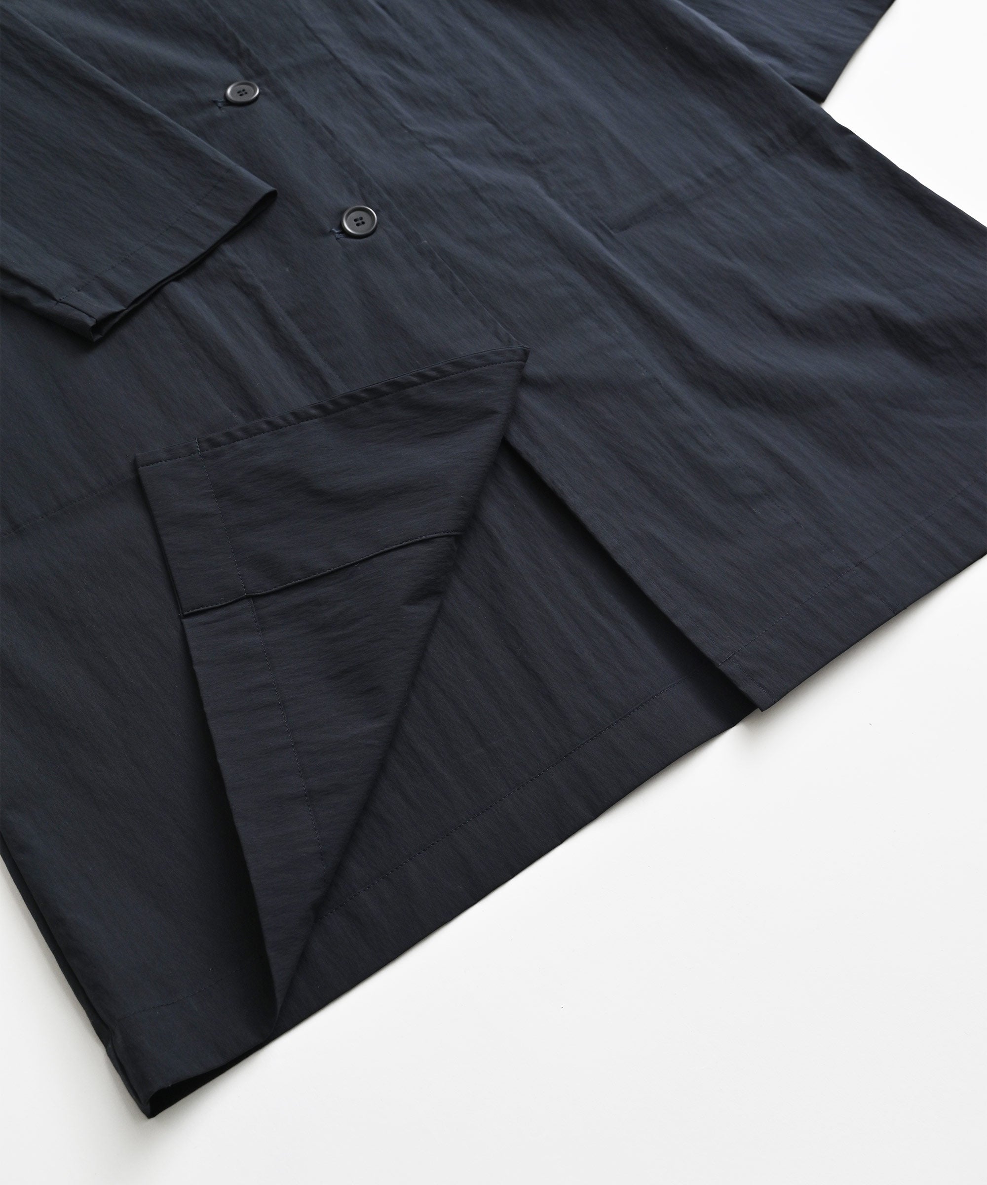 程よい張り感と表情のある生地を使用したロングジャケット。