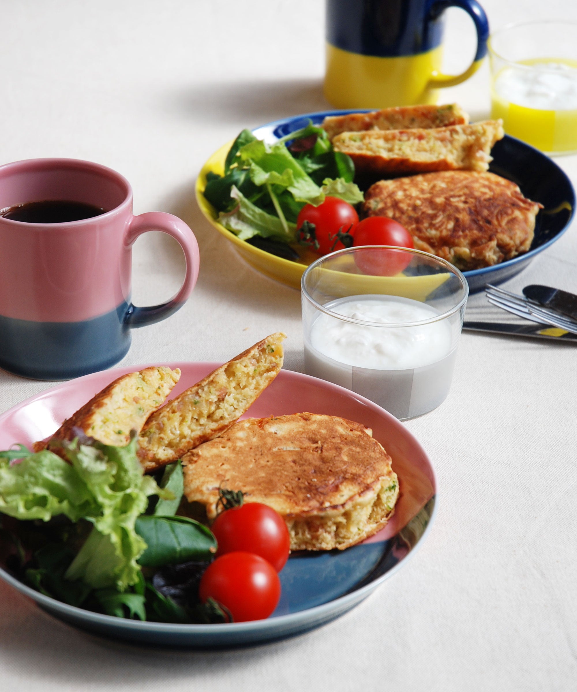 釉薬をかけ分けたカラーのコンビが食卓をパッと華やかに。