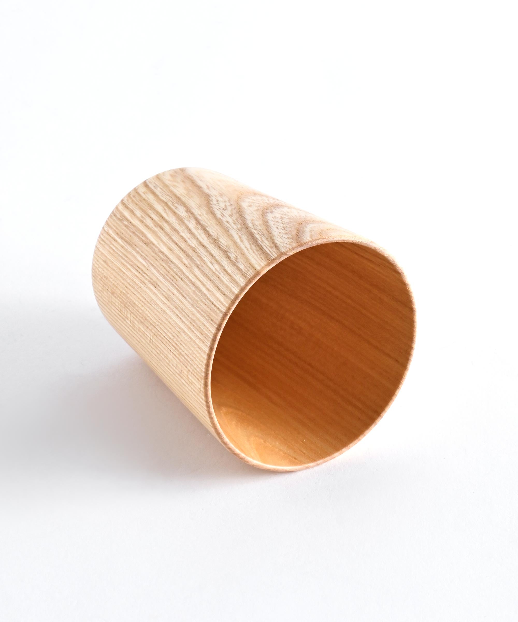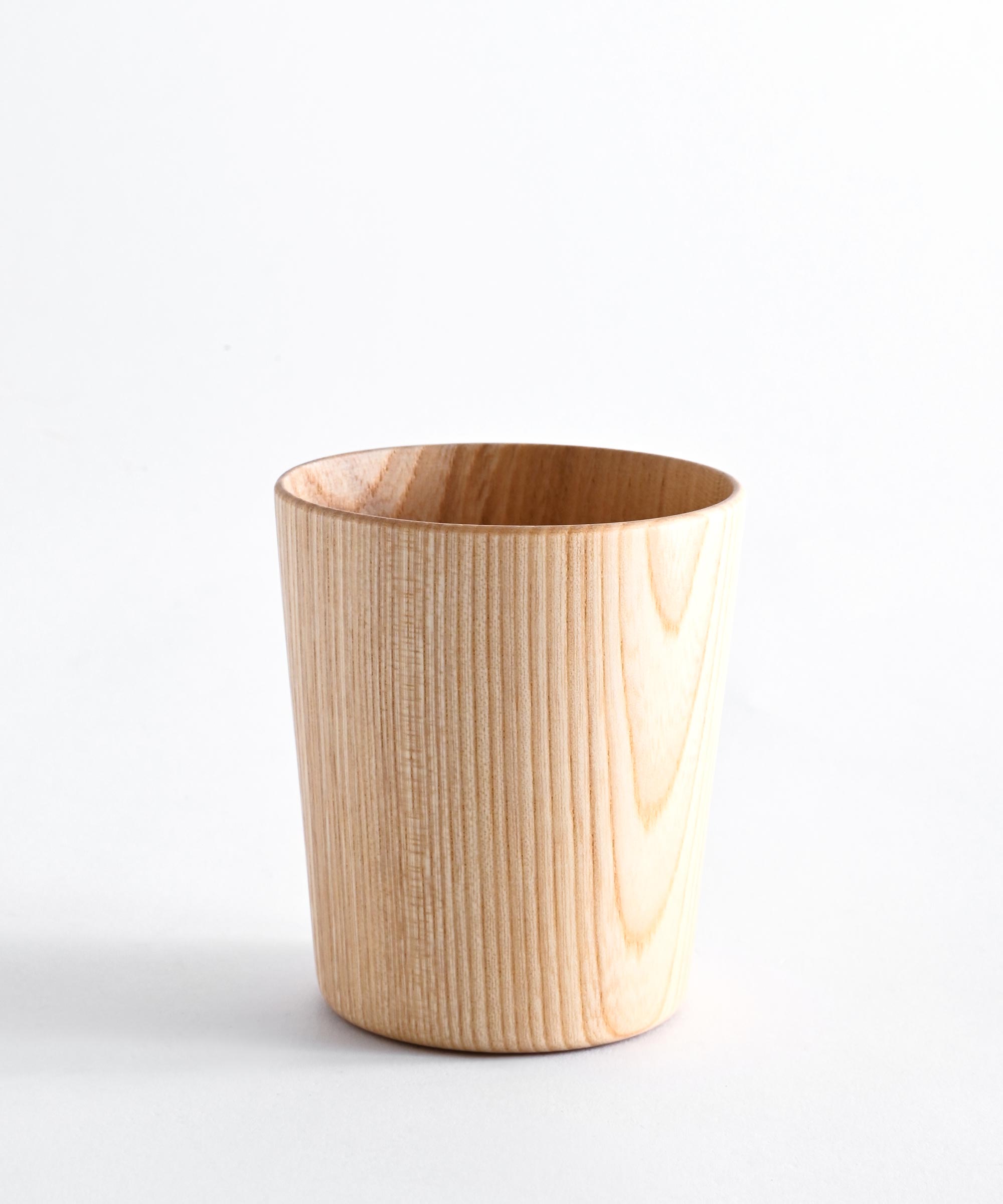 北海道産の「セン」の木を、厚さおよそ2mmまで挽いた木のグラス。