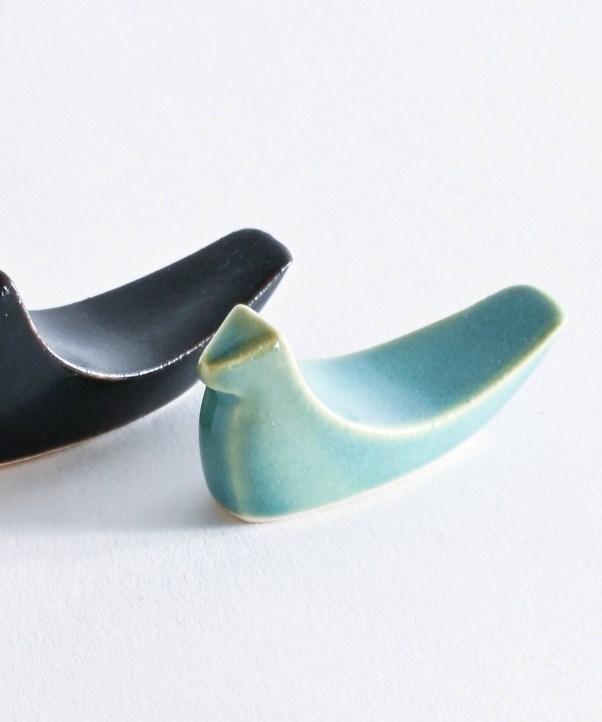益子焼(栃木県)の伝統的な釉薬を使った鳥のフォルムの箸置き。