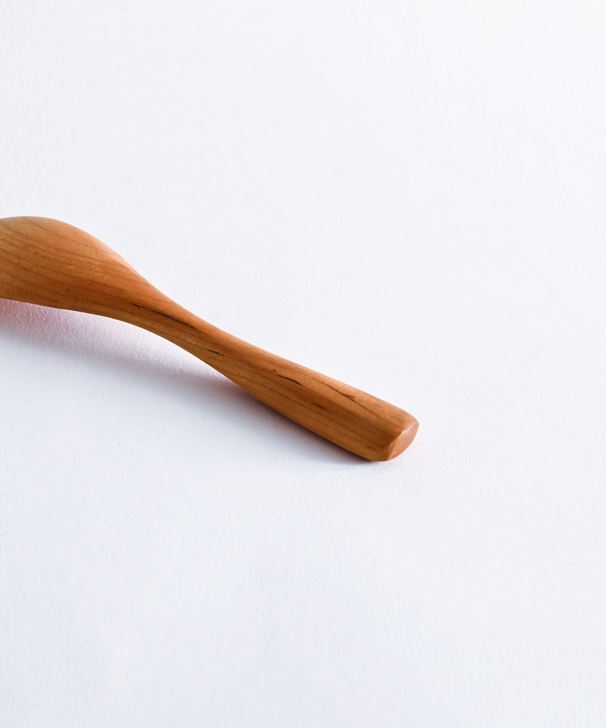 手に持ちやすく、口当たりやわらかいのも木のカトラリーの魅力。