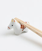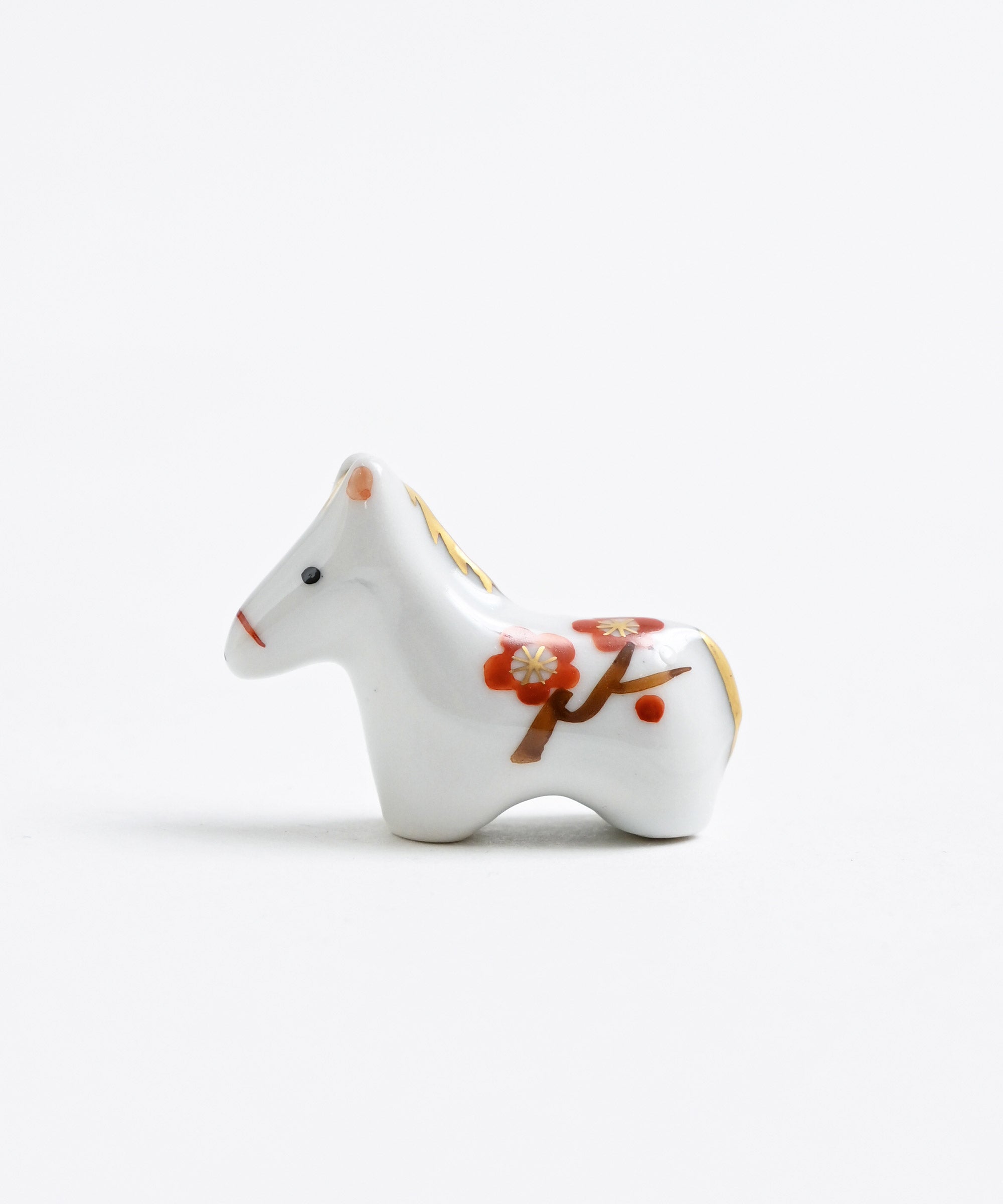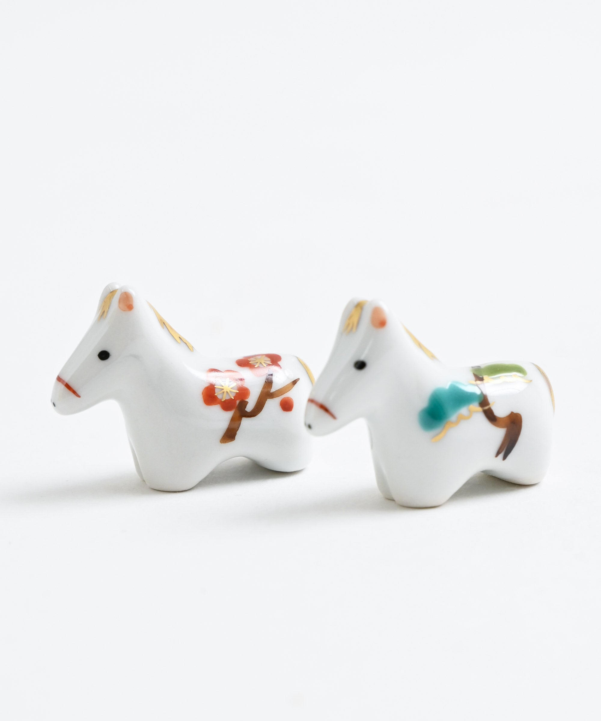 来年の干支「午」の箸置き。背中に松竹梅の梅・松がそれぞれ描かれています。