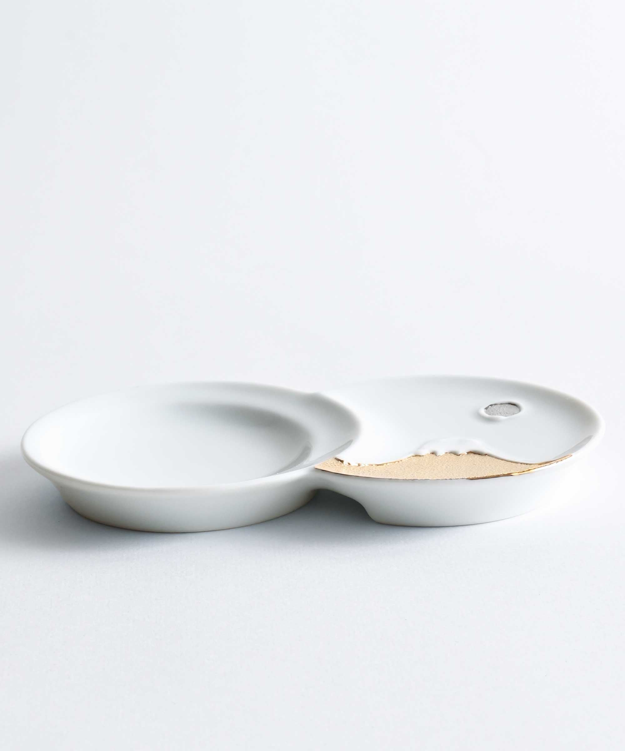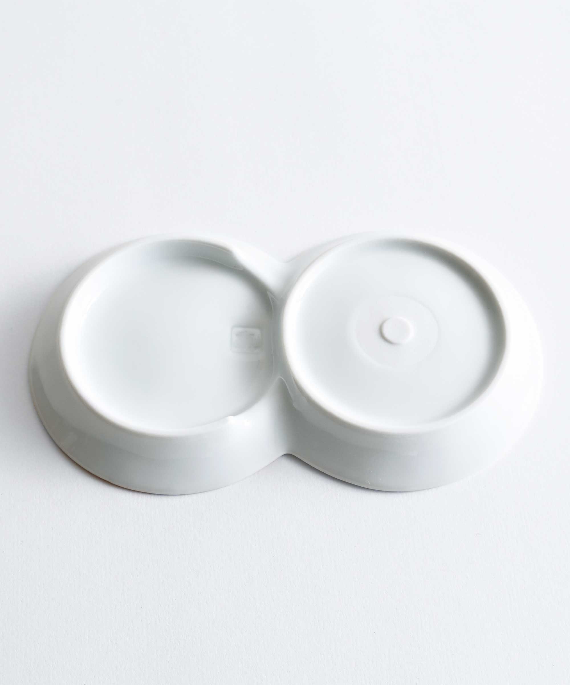 小さな豆皿2つがくっついたような形状の波佐見焼の小皿。