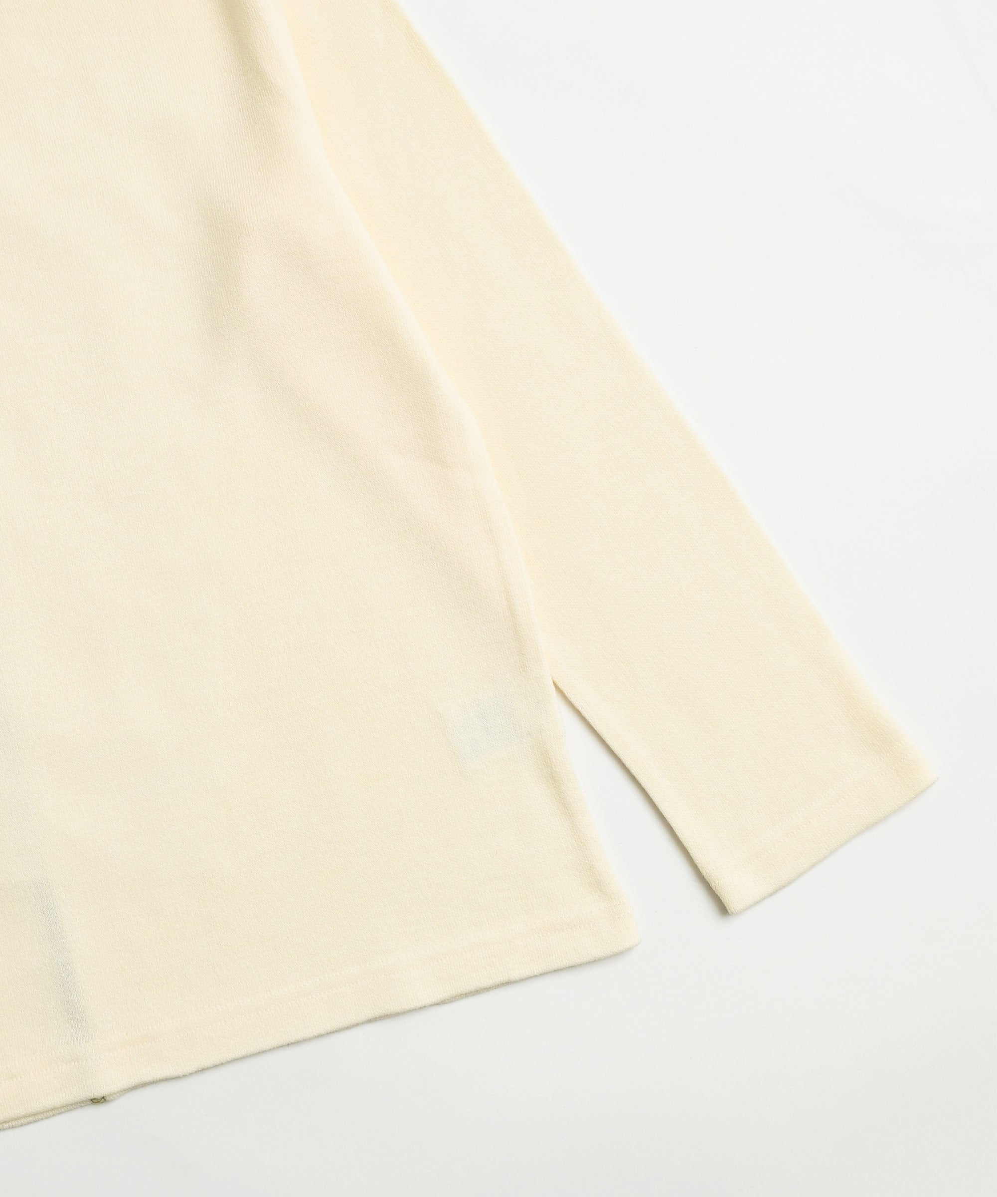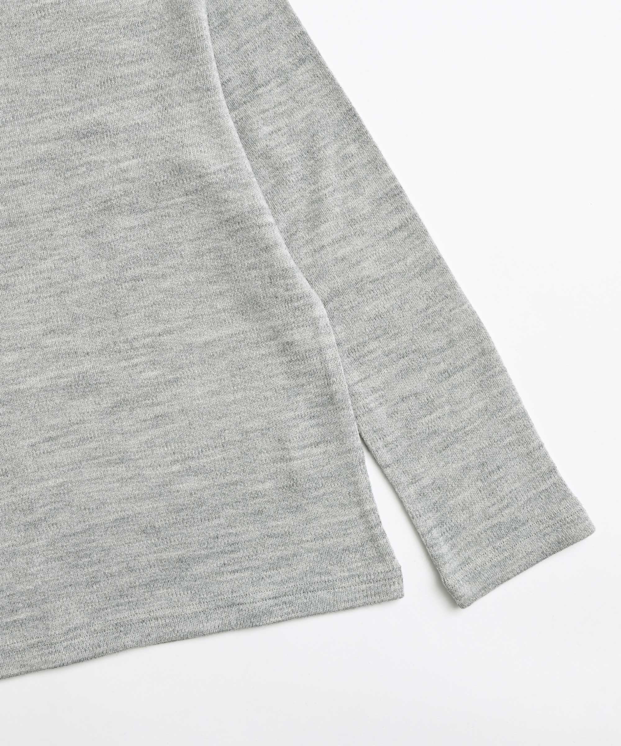 手洗い可能でカットソー感覚でおすすめできるあたたかい表情のある1枚です。上着を脱いで1枚着でもおすすめしやすいポイントです。