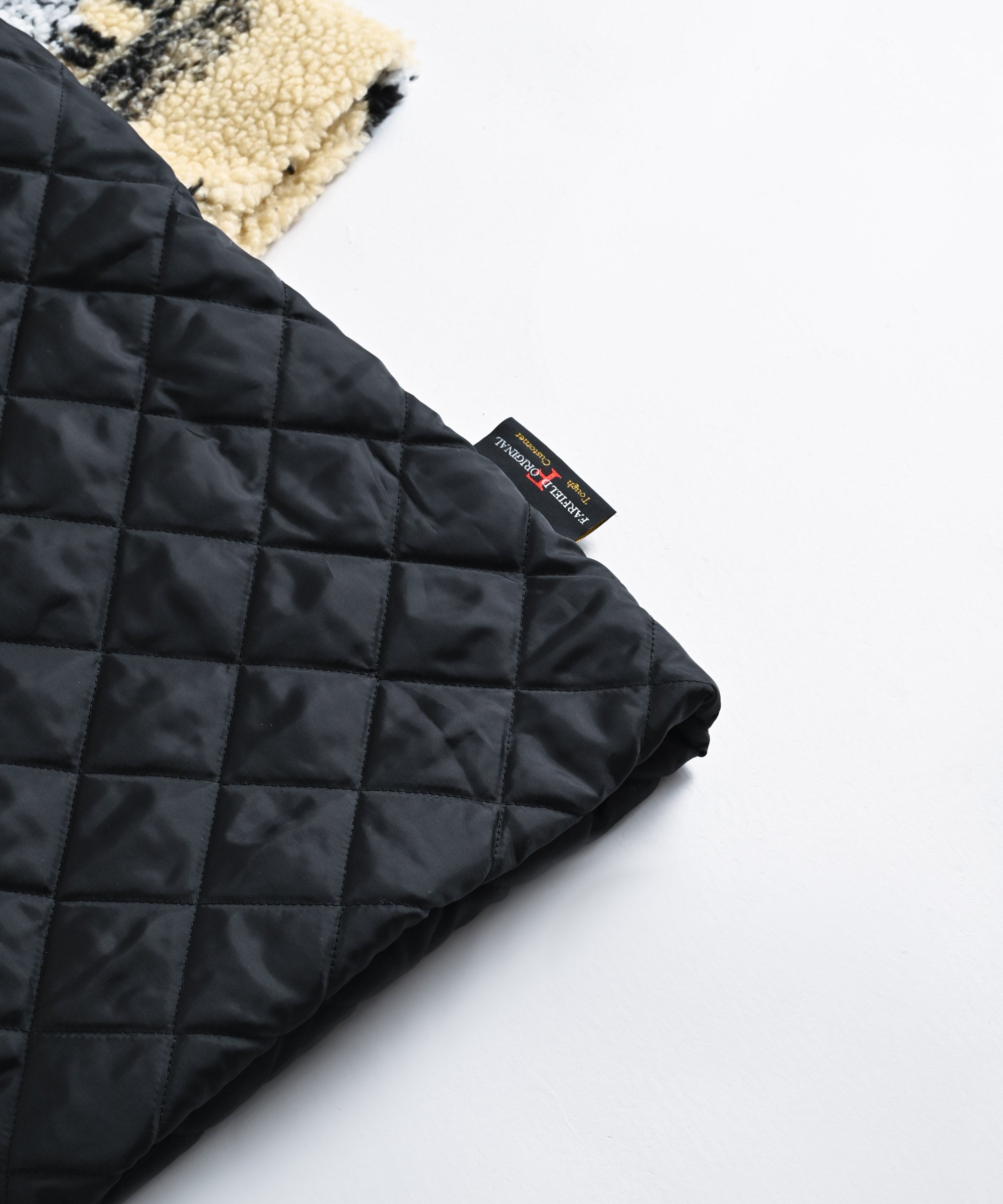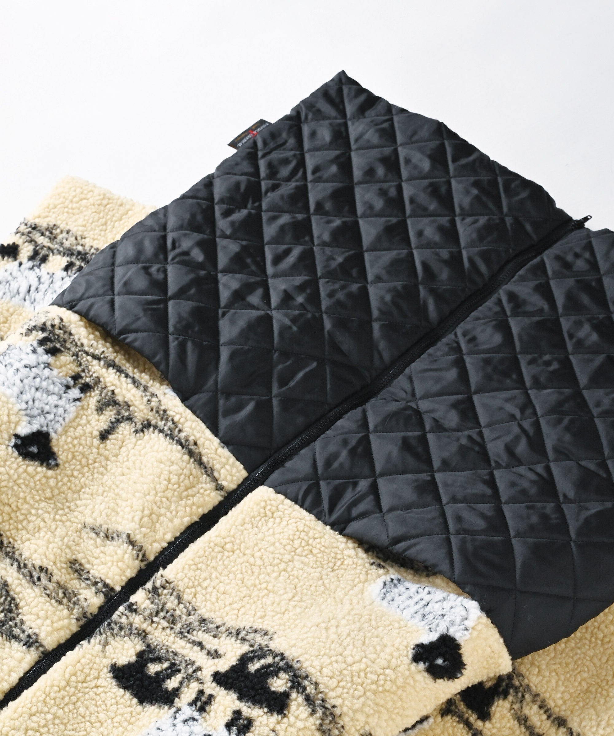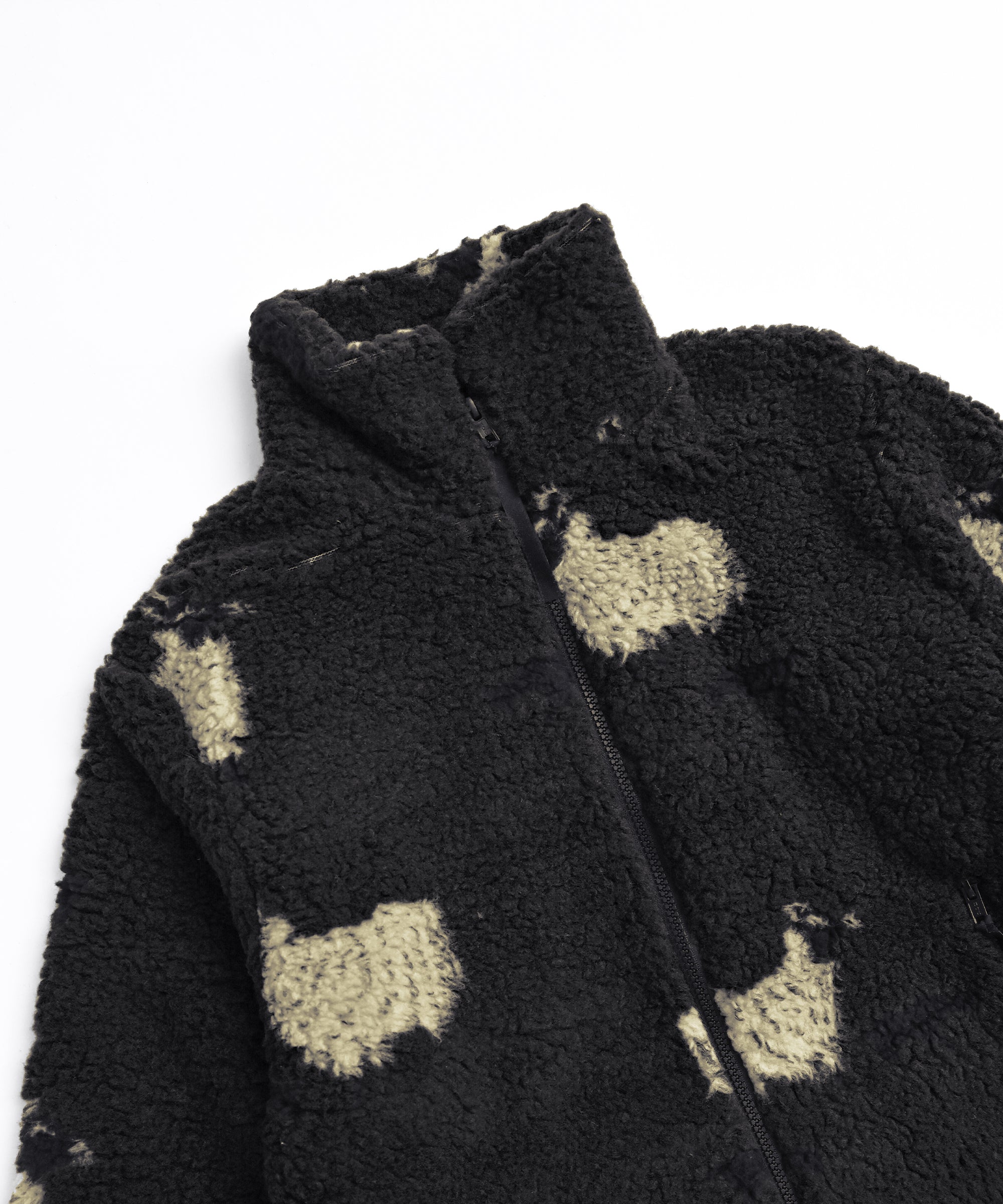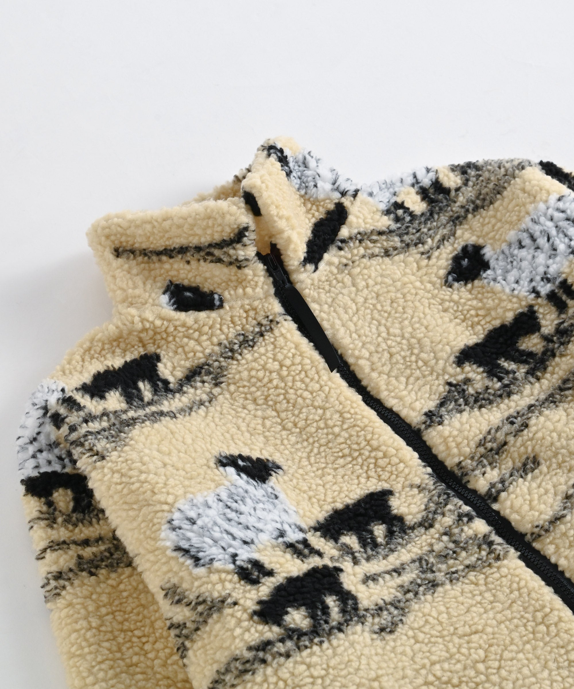 ”羊と子羊”の柄がユニークなフリース素材とキルティング生地がコンビになったミドルコート。