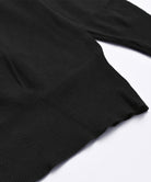 衿は3.5cmの2×2リブ仕様、首元のリブの襟裏には伸び止めテープを取り付け、伸びや型崩れ防止の配慮をしています。