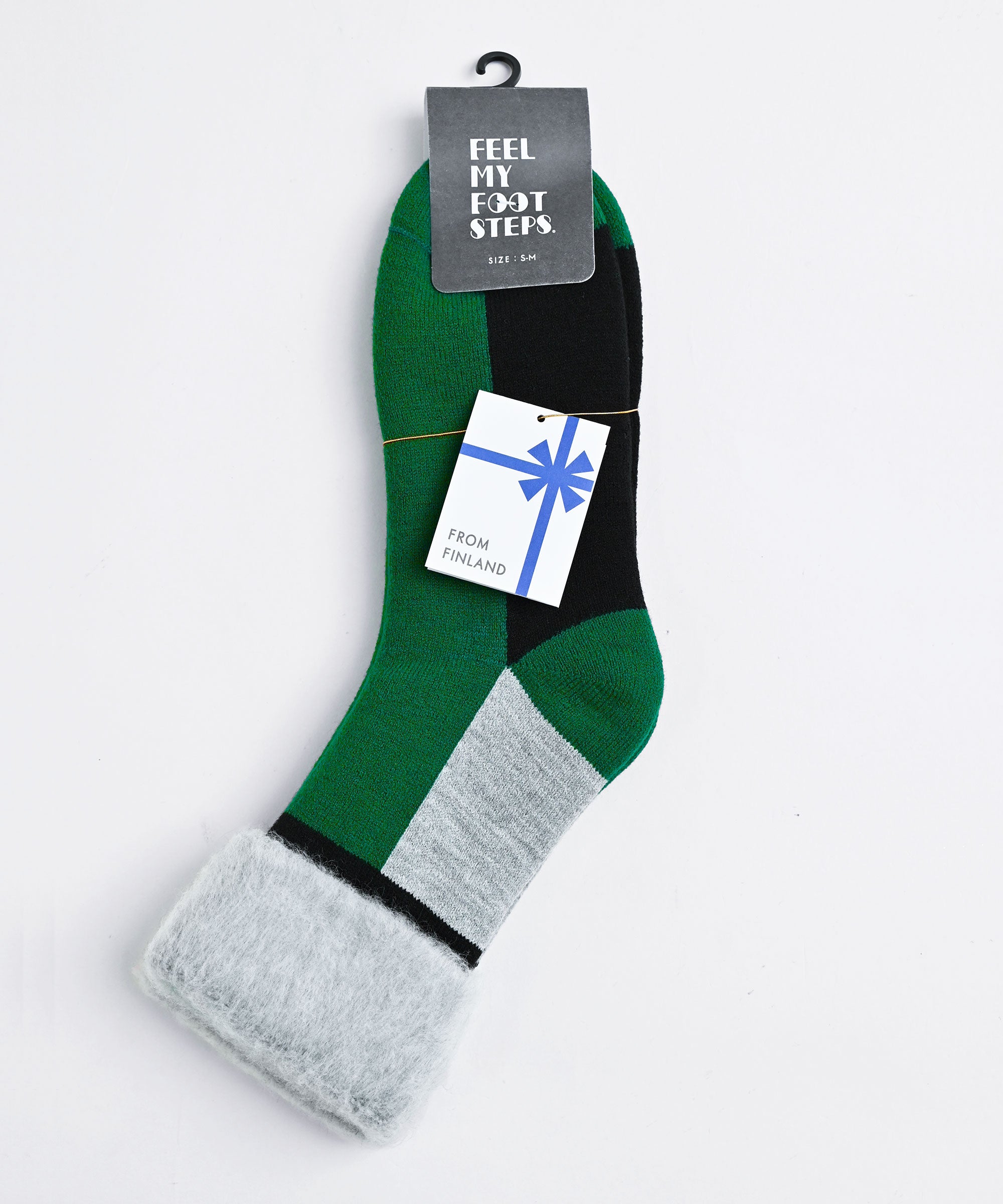 フィンランド発祥の肌側がふわふわに起毛された靴下は、驚くほどあたたかで履いた瞬間「良いものだ」と実感することができます。