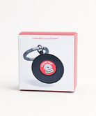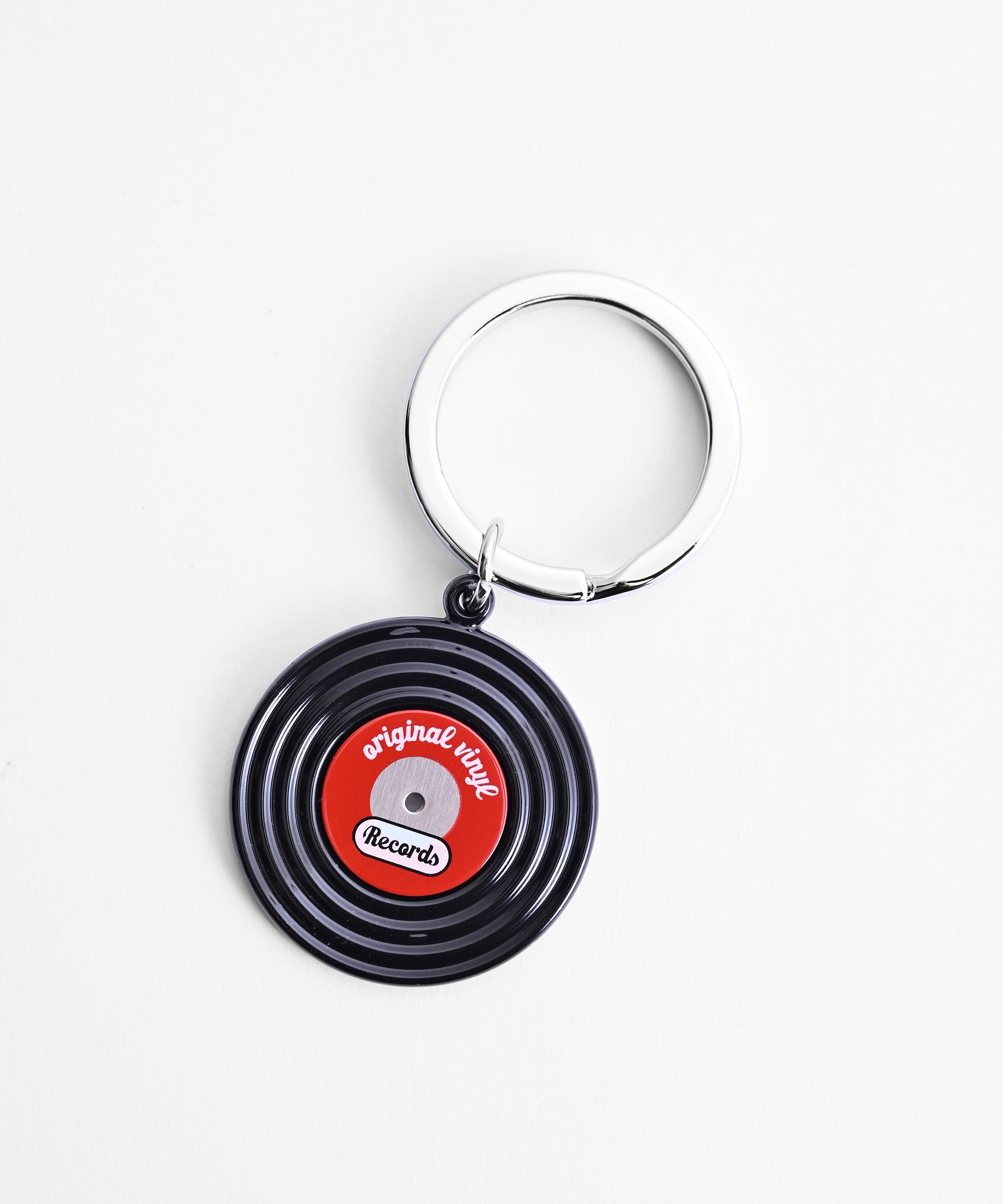 レトロかつモダンなレコードの形をしたキーホルダー。