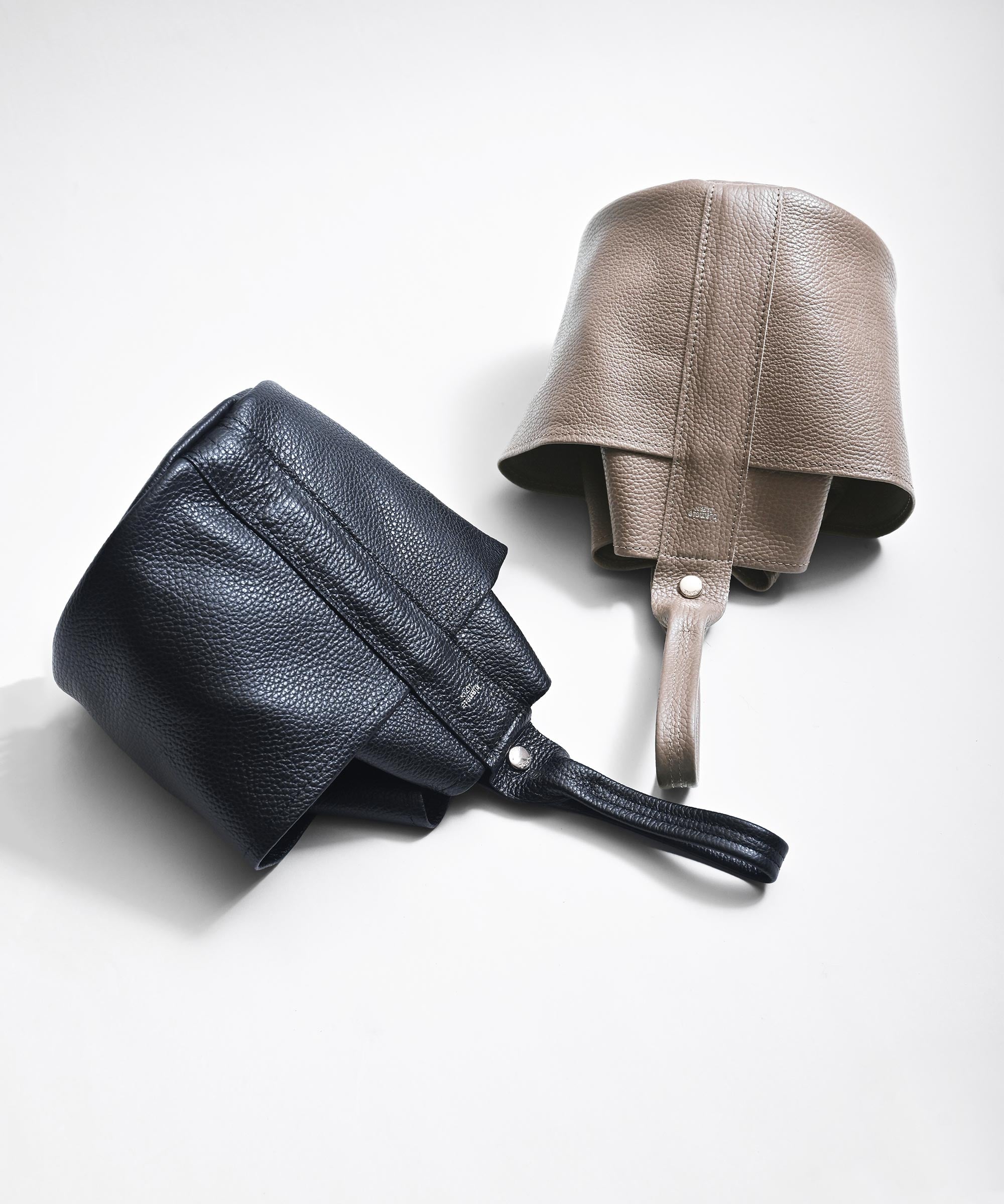 イタリアンシュリンクレザー※を使用した筒型のチューブバッグ(ハンドバッグ)。