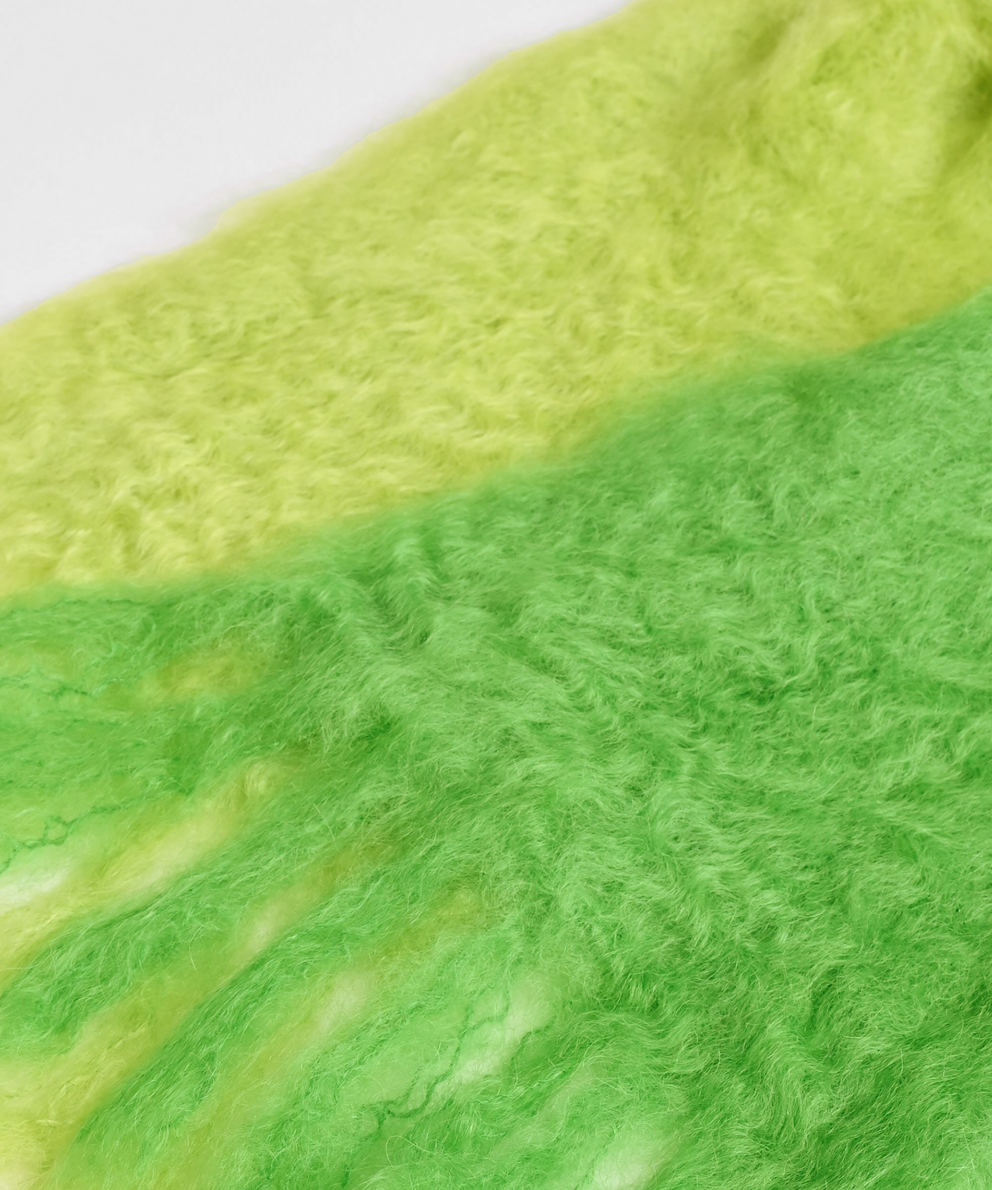 柔らかなモヘアを使ったバイカラーのマフラーが登場。