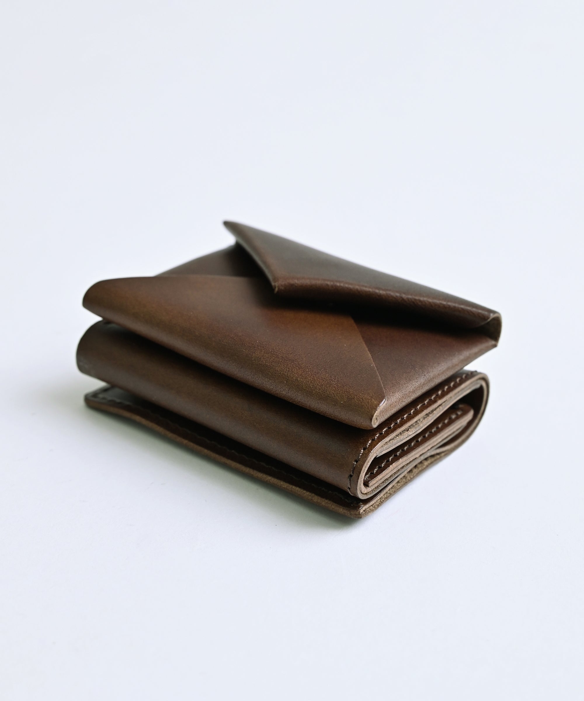 イタリア産牛革ブッテロを使用、コンパクトな3つ折り財布。