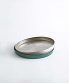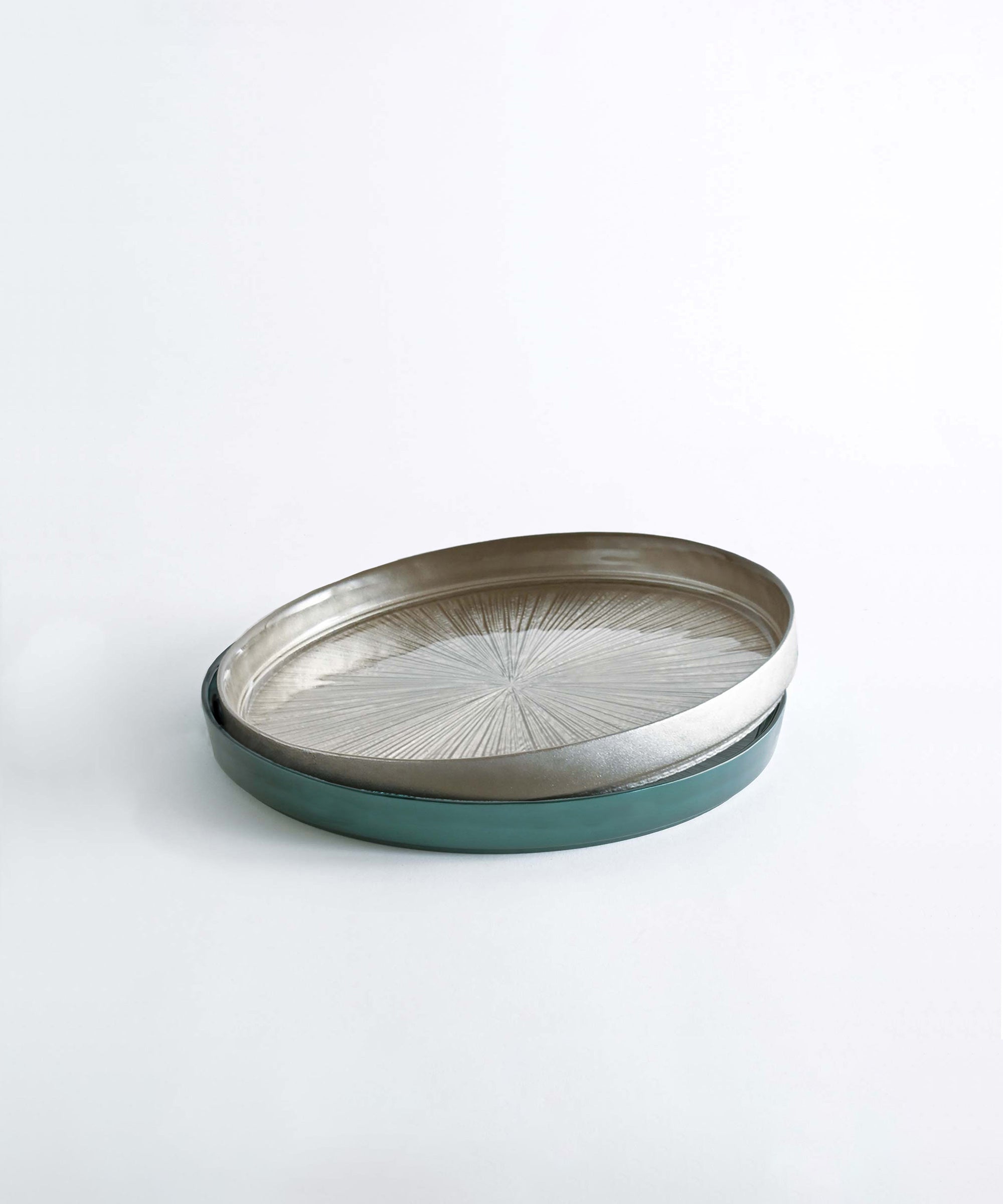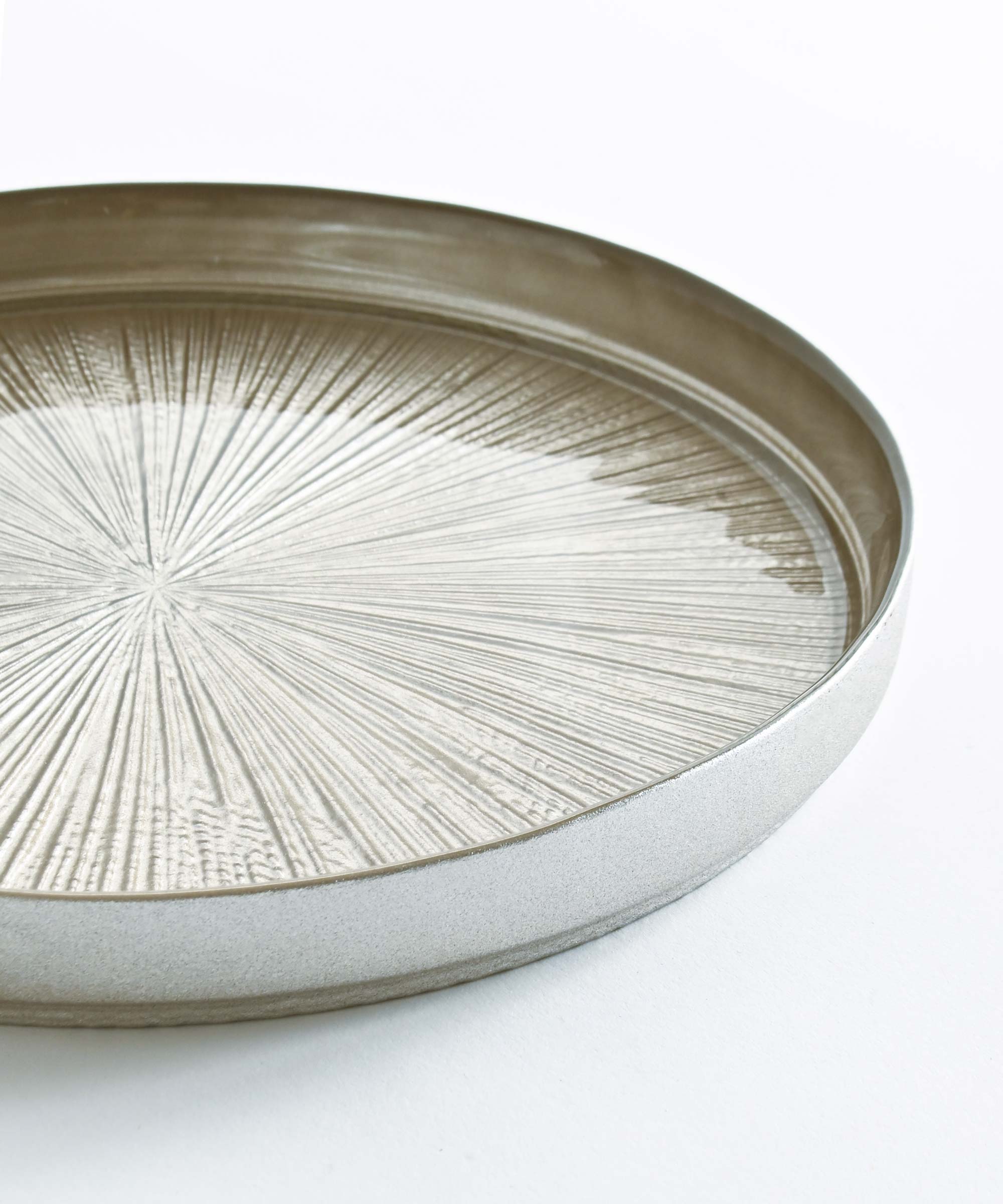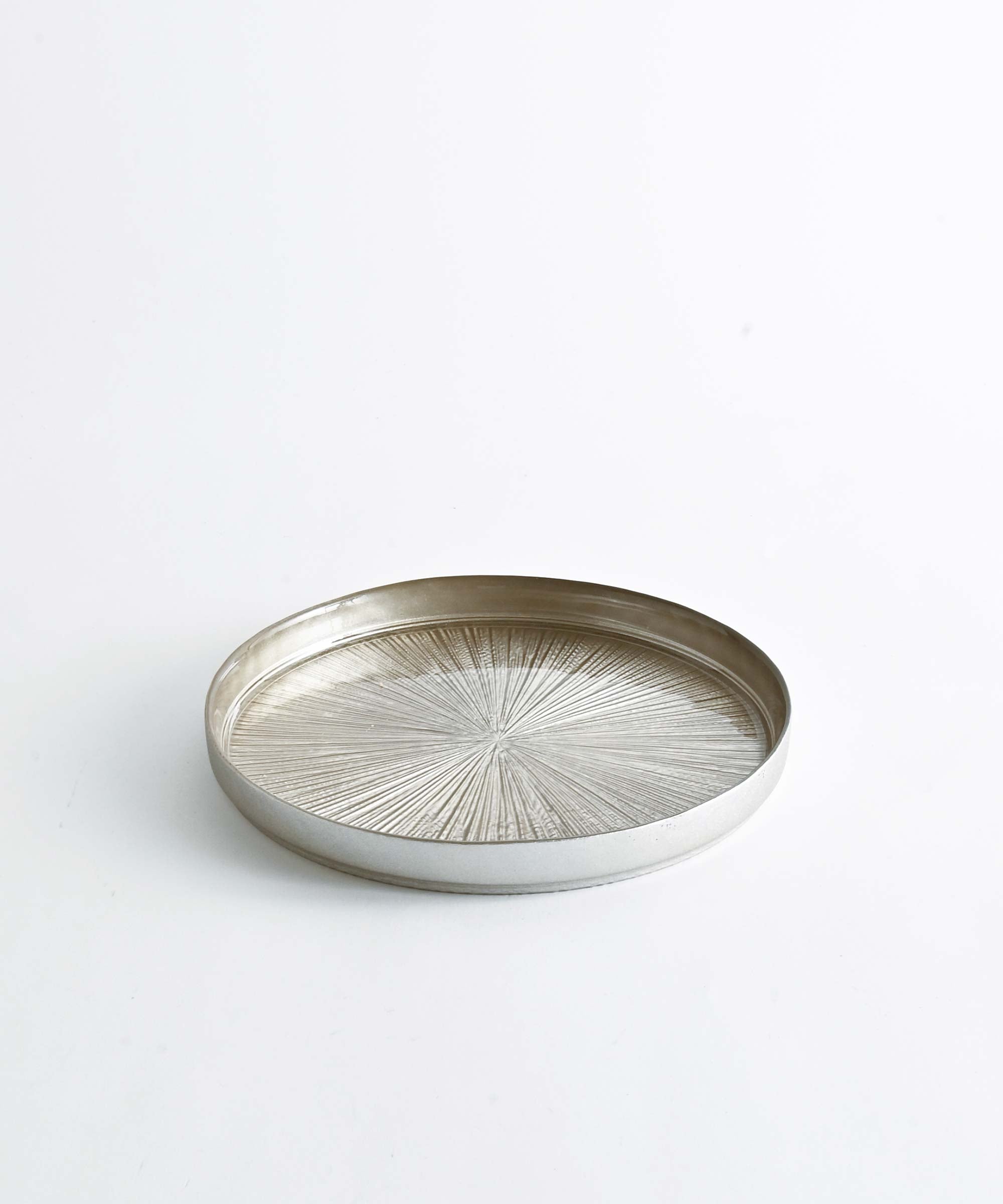 底面の放射状のデザインに、外側から手作業でマットなメタリックカラーの塗装が施されており、