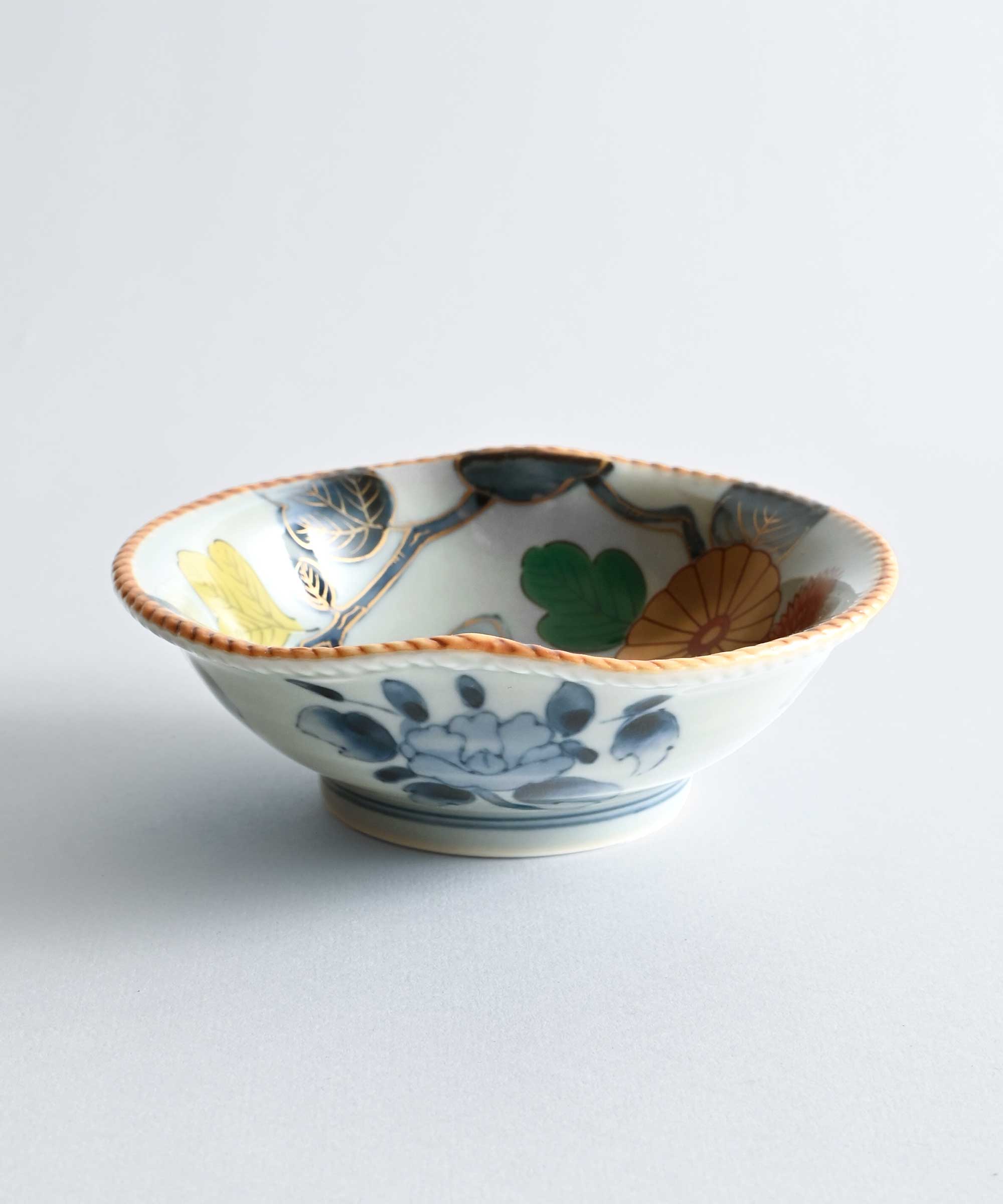 金と鮮やかな色彩で描かれた細やかな絵付けが特徴の古伊万里様式は、古く江戸時代より世界中の王侯貴族を魅了しました。伝統的な染付と赤絵を活かしながらも現代の生活にもなじむようアレンジされた上品な色使いと華やかに描かれた花のデザインが優美で豪華な表情を醸し出します。
