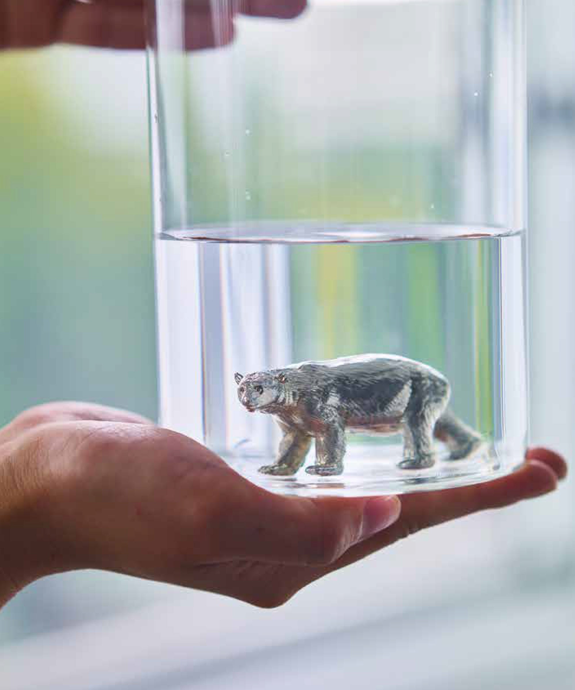 そんな動物たちに少しでも思いを馳せてもらいたい、そんな思いを込めて作成されたリサイクル錫100%のオブジェ。