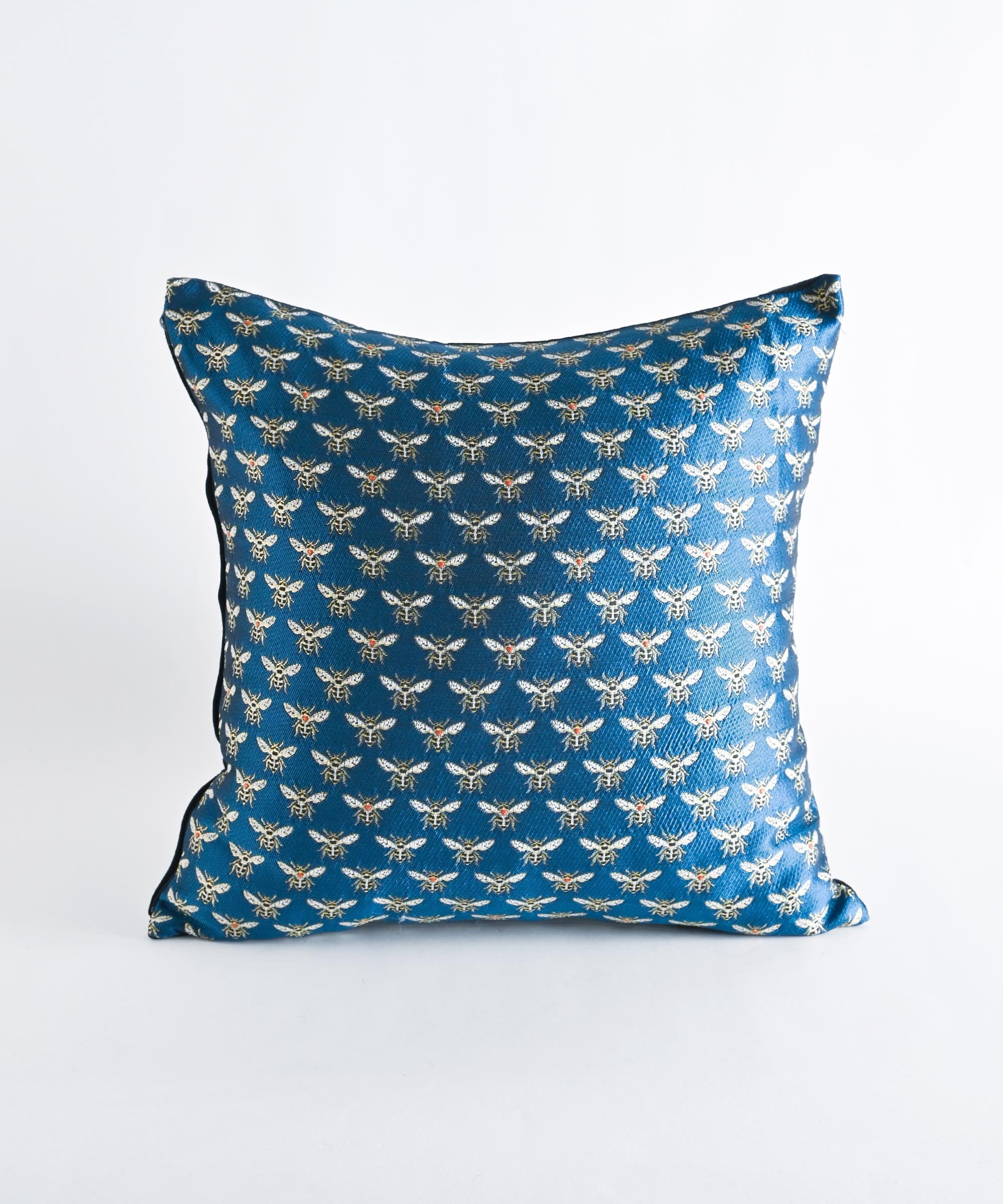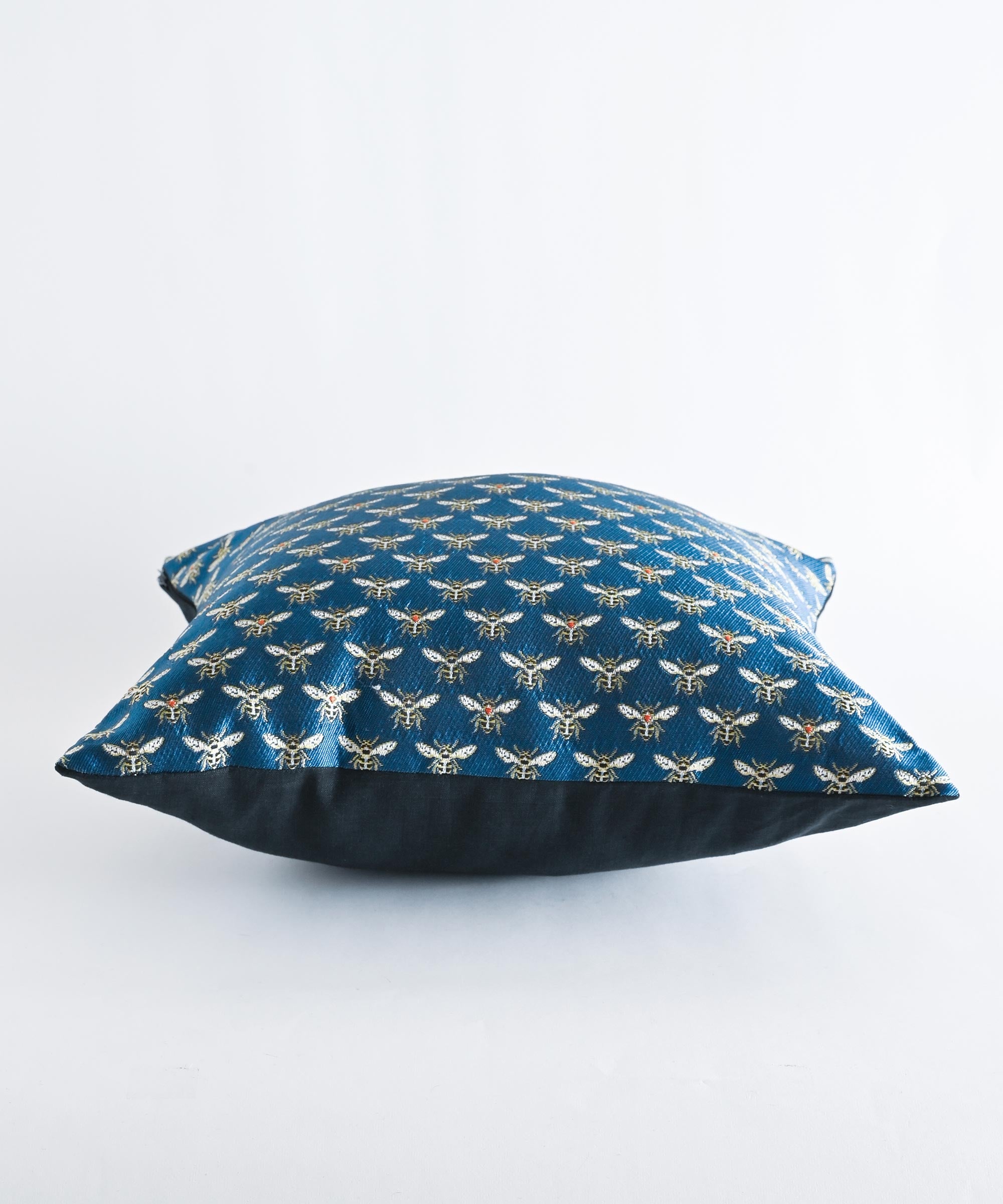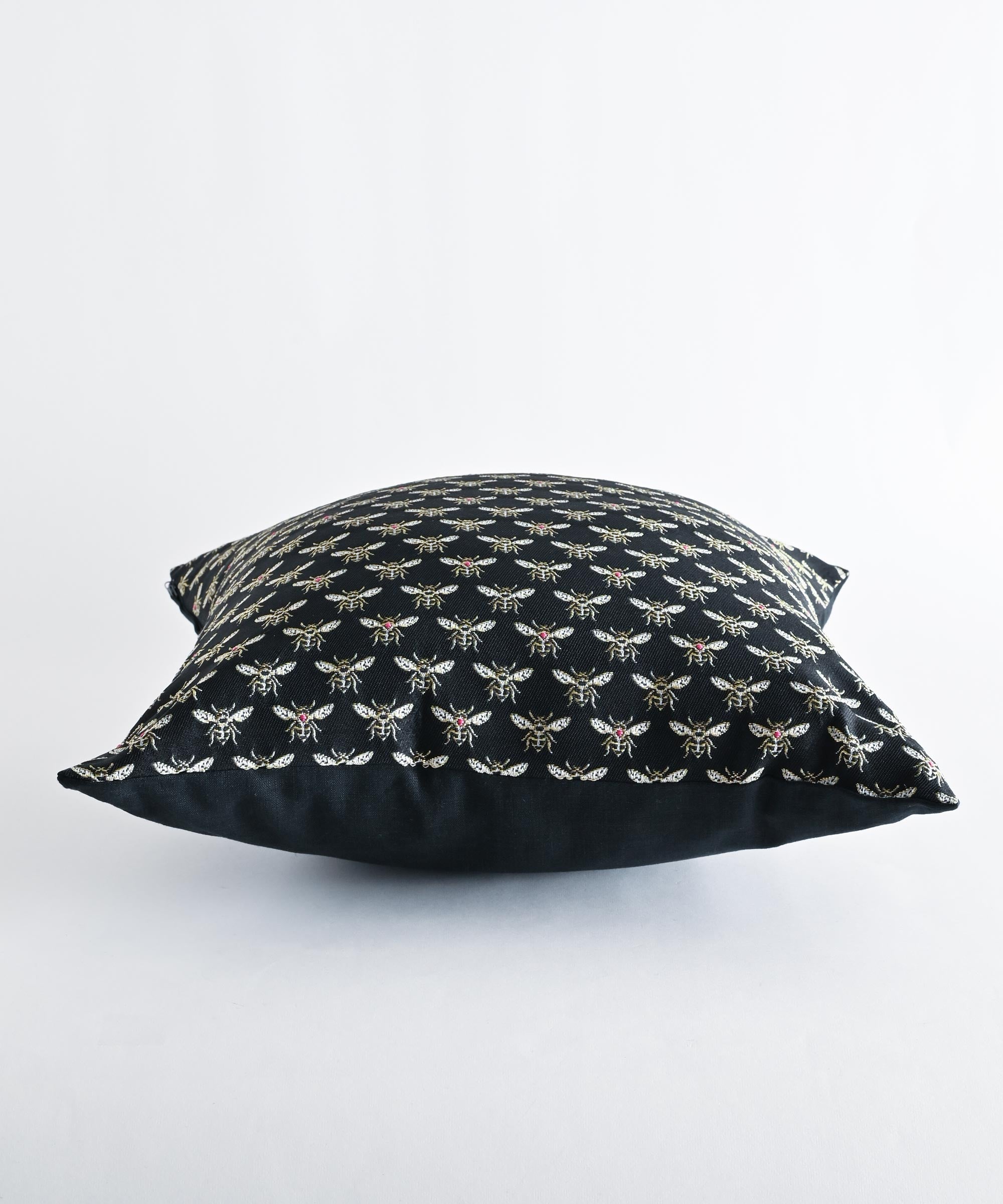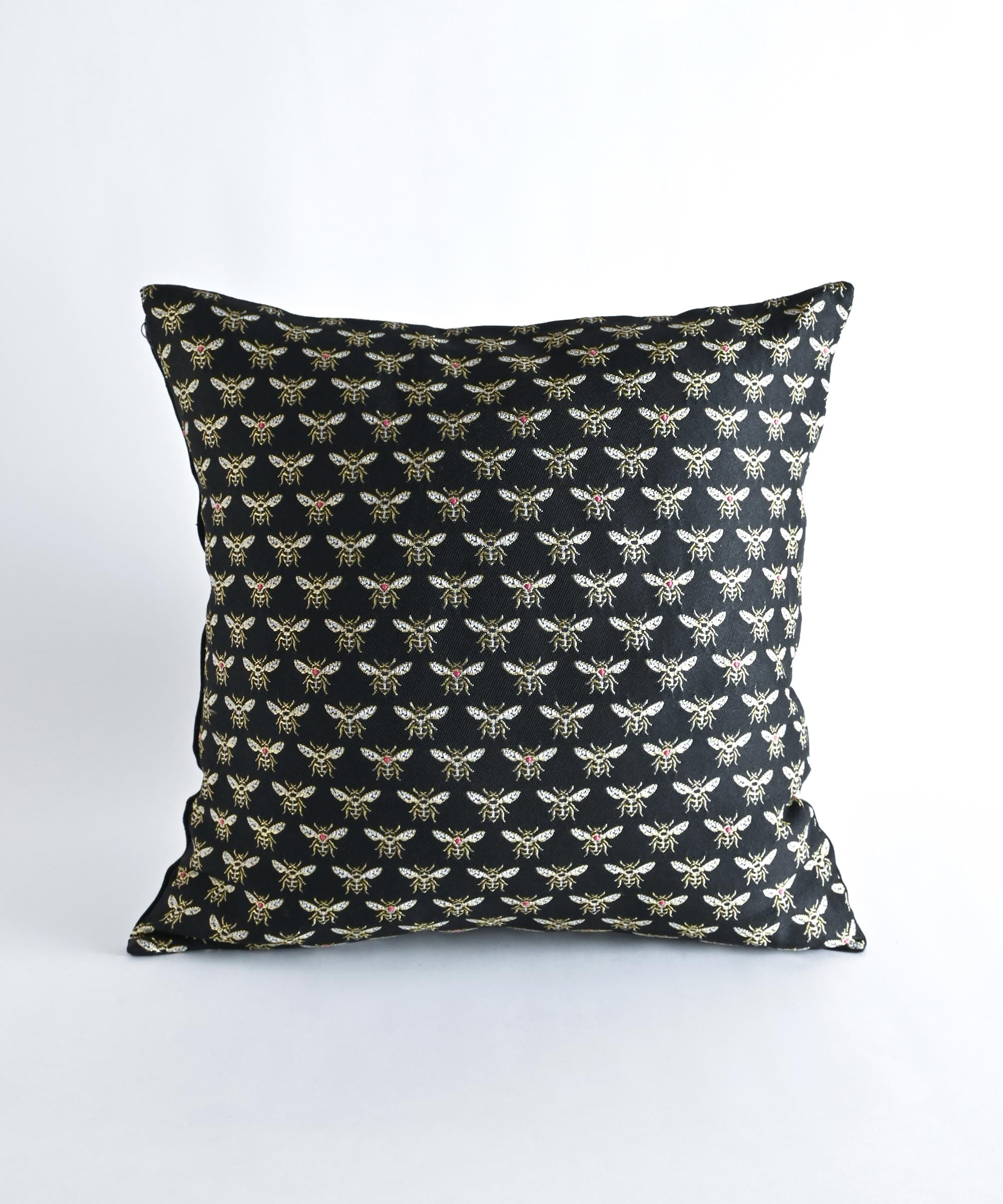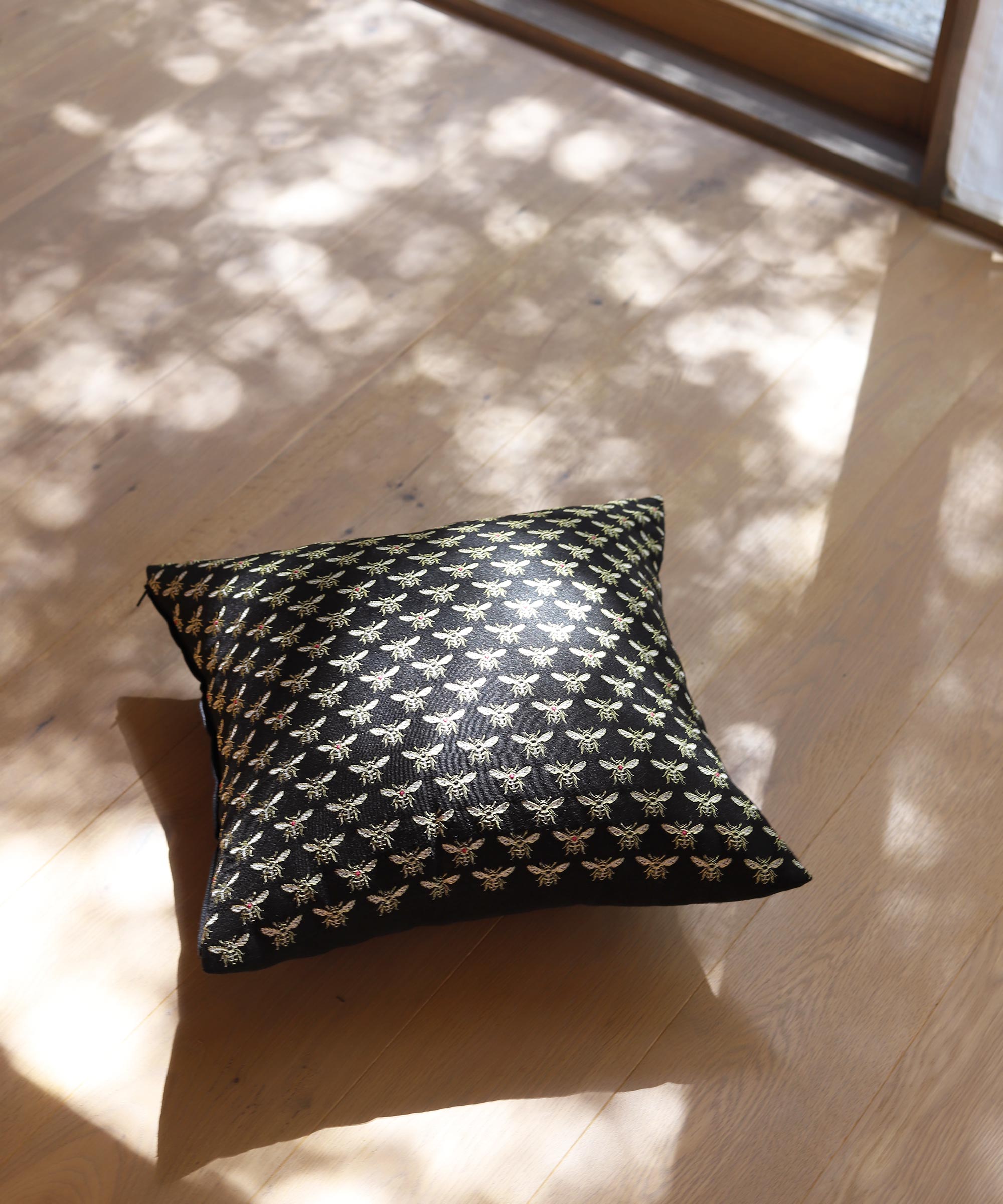 蜂がモチーフのジャガード織りの生地を使用したクッションカバー。