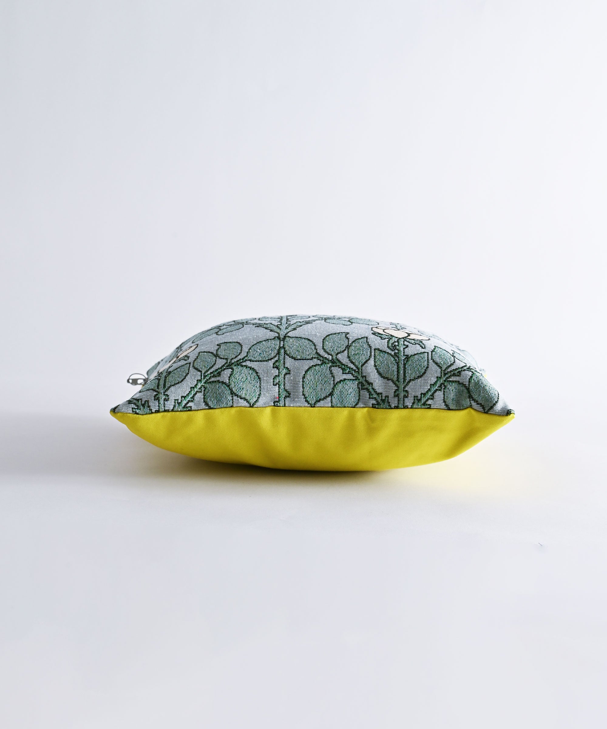 表情のあるジャガード織りの生地を使用したクッションカバー。