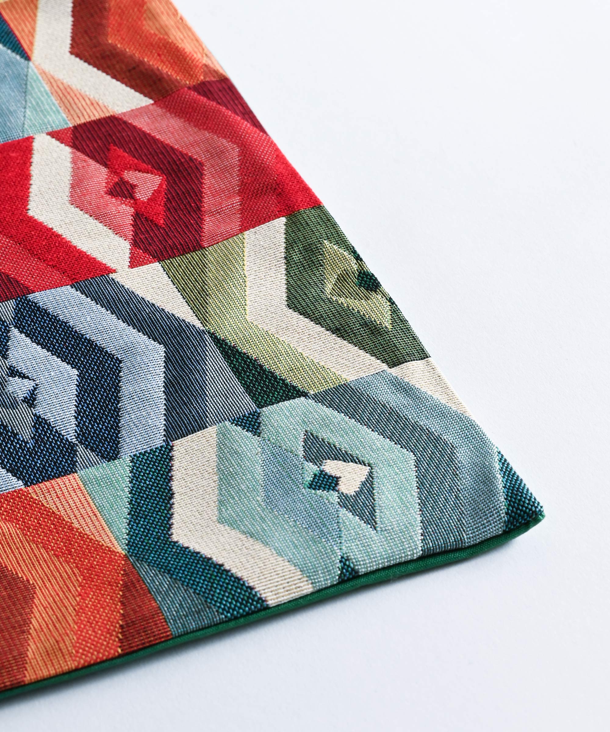 表情のあるジャガード織りの生地を使用したクッションカバー。