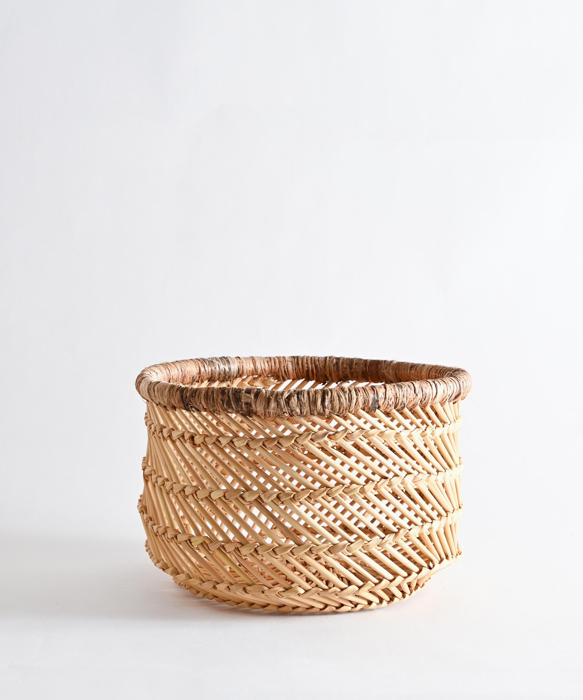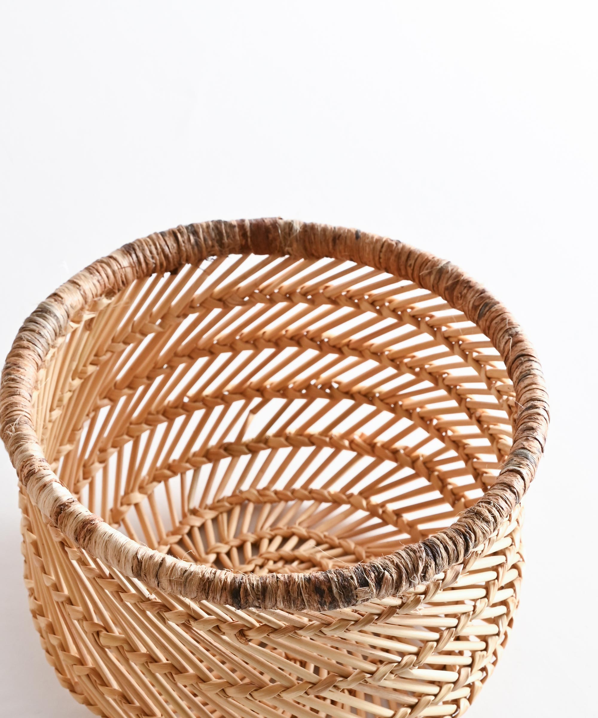 透かし編みが程よい抜け感があり、素朴なフォルムが素敵なバスケットです。