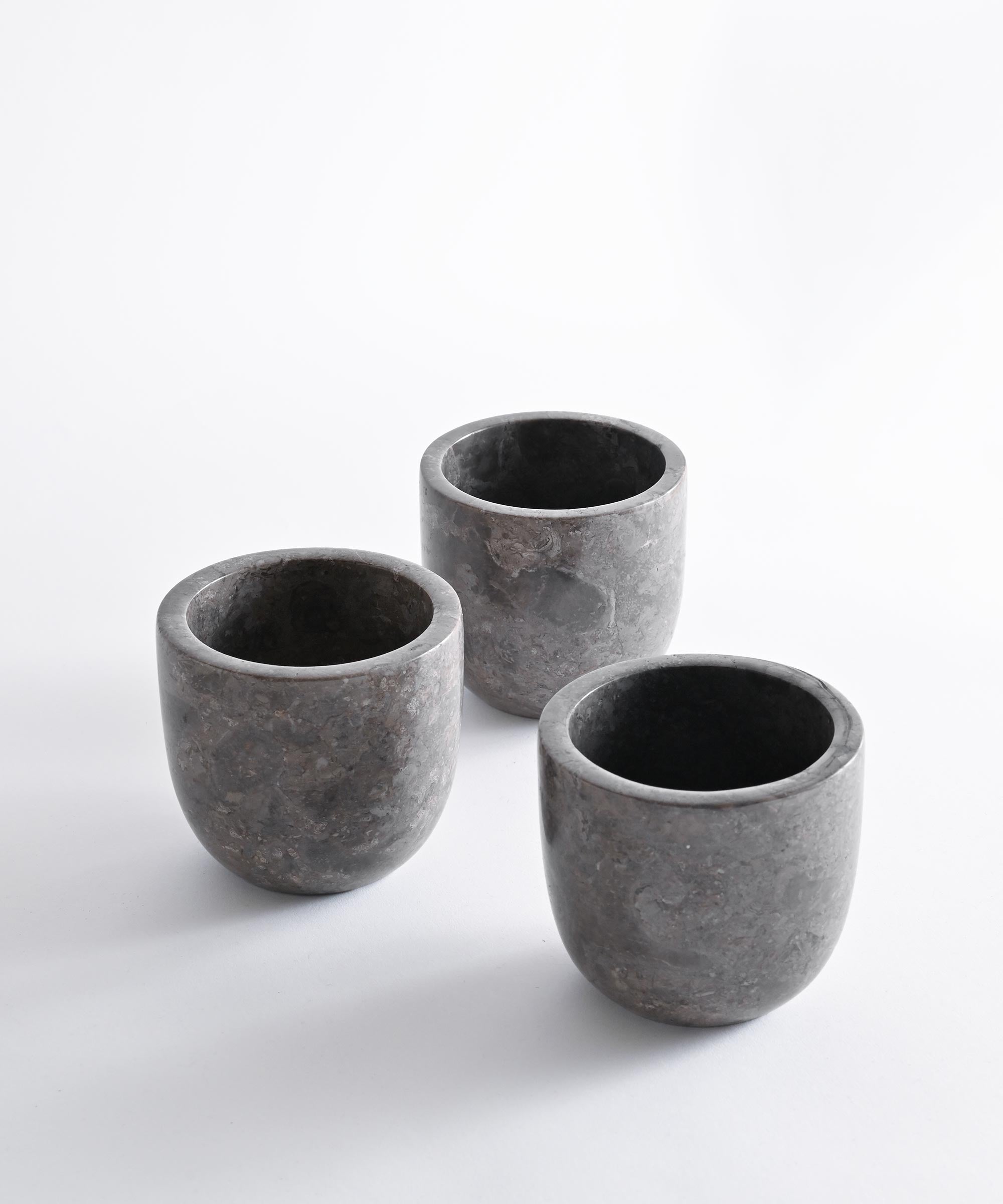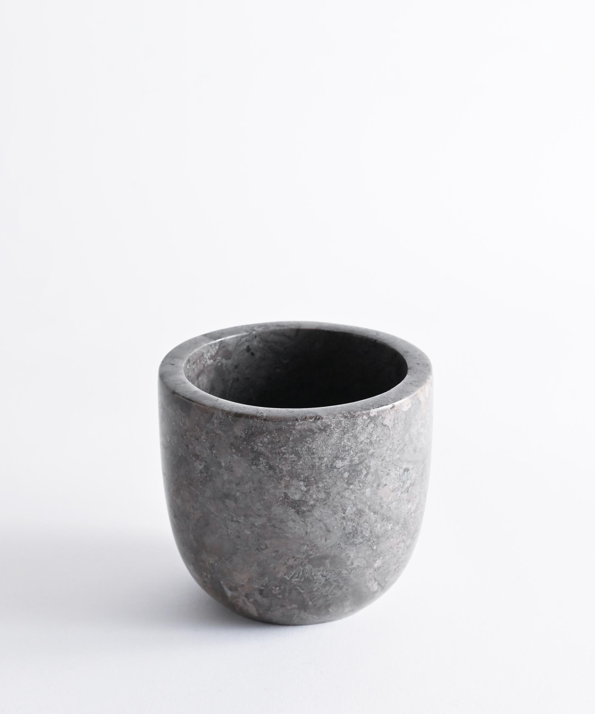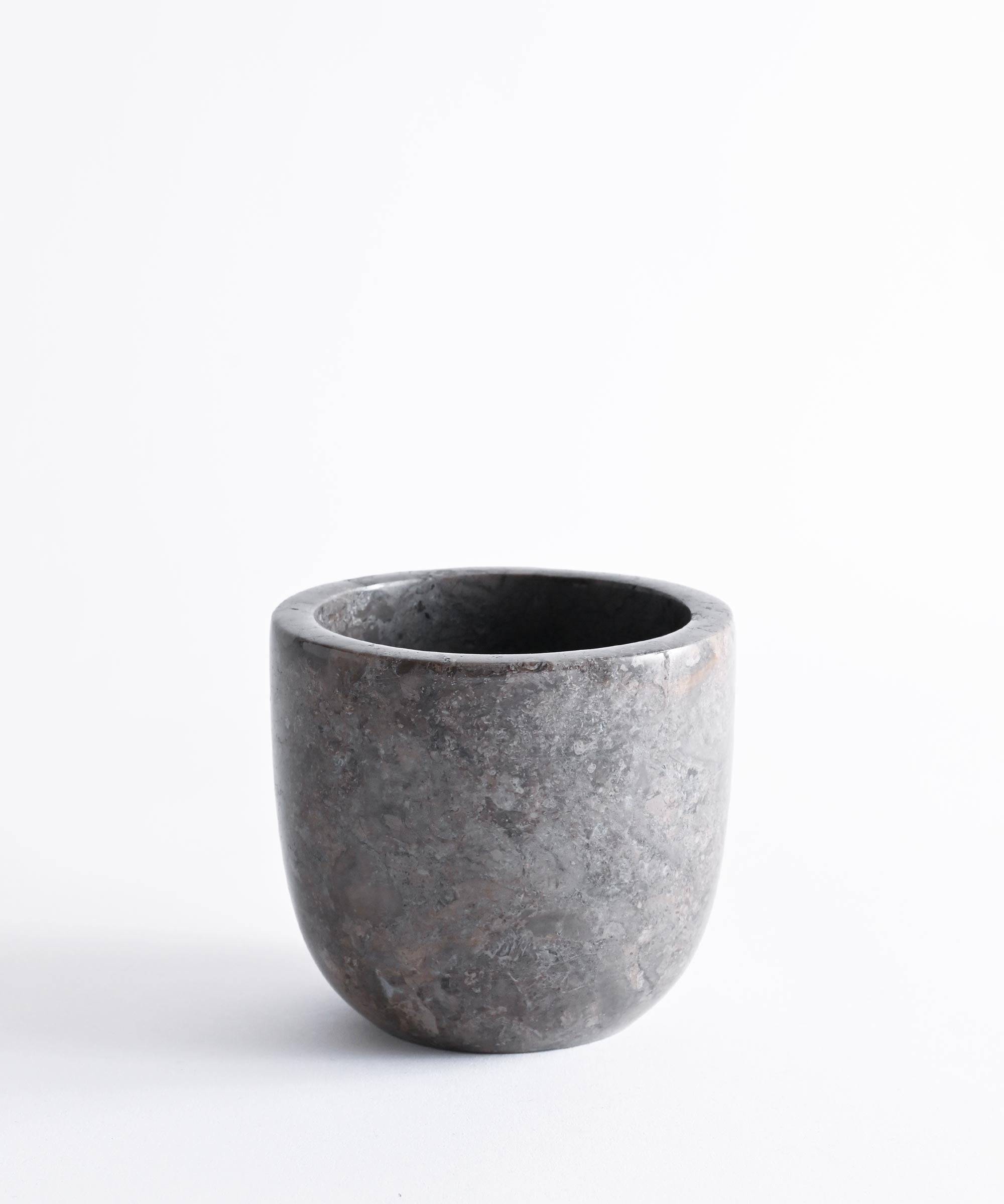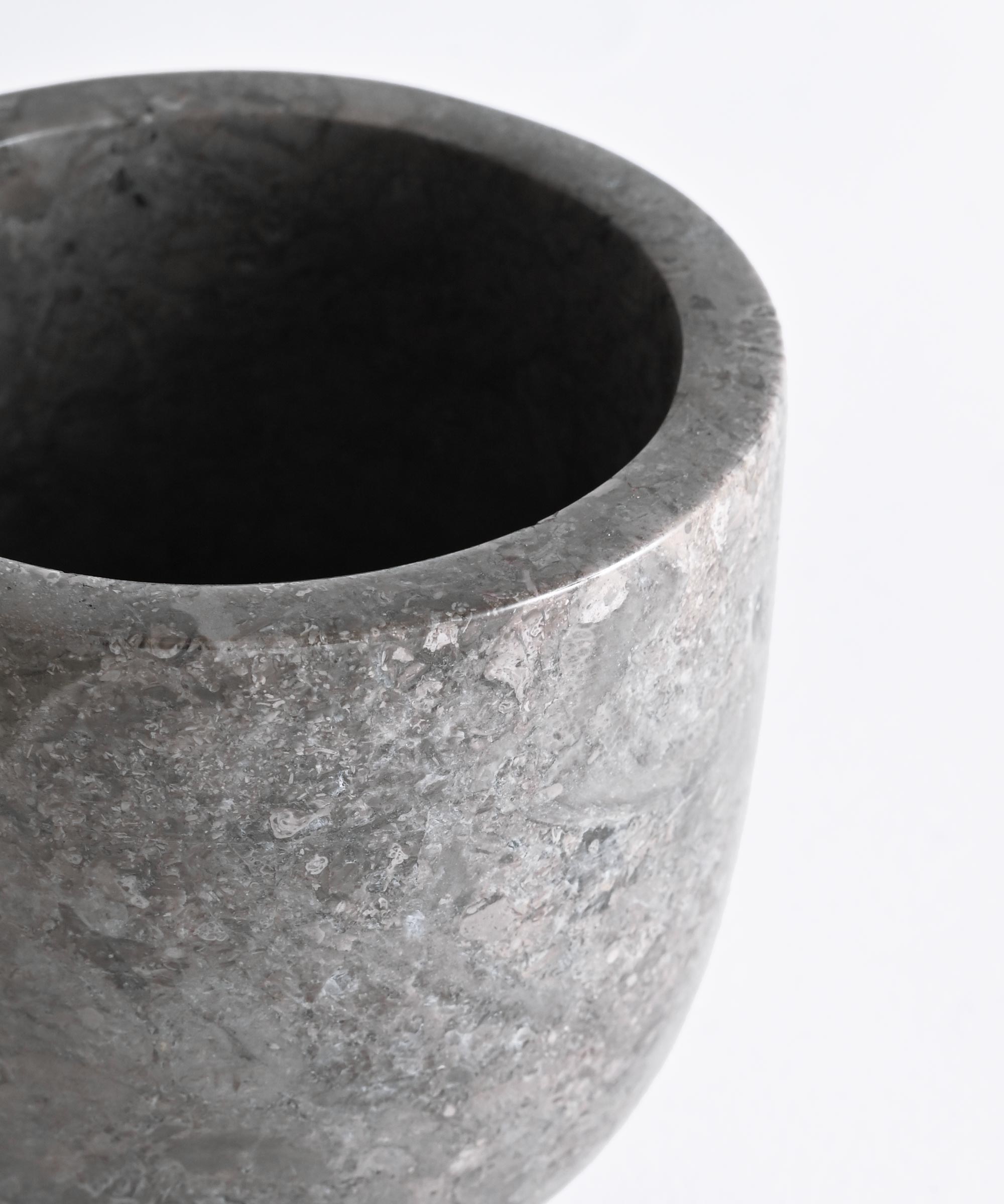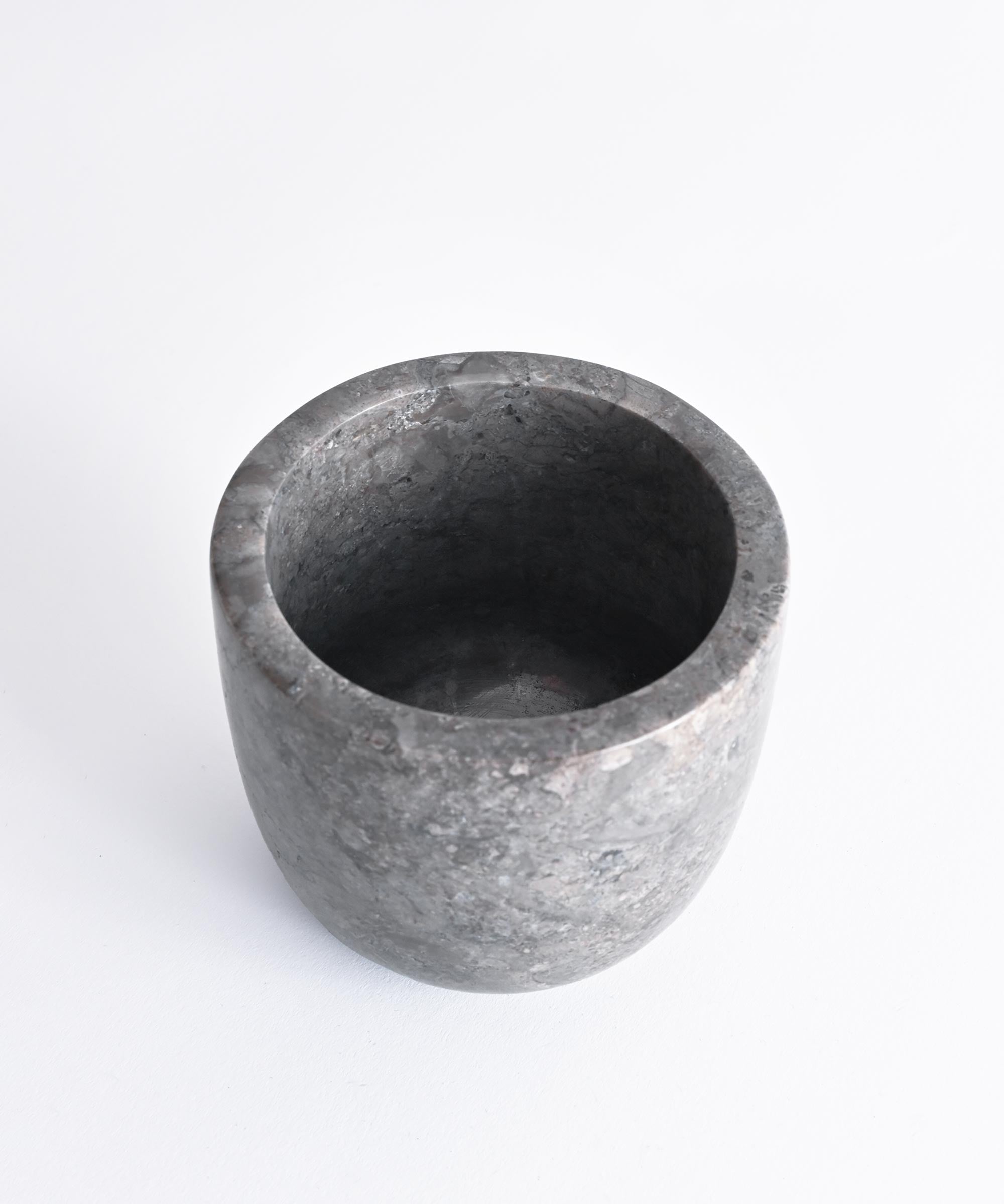 天然石をくりぬいてつくられたマーブル石調の鉢カバー。