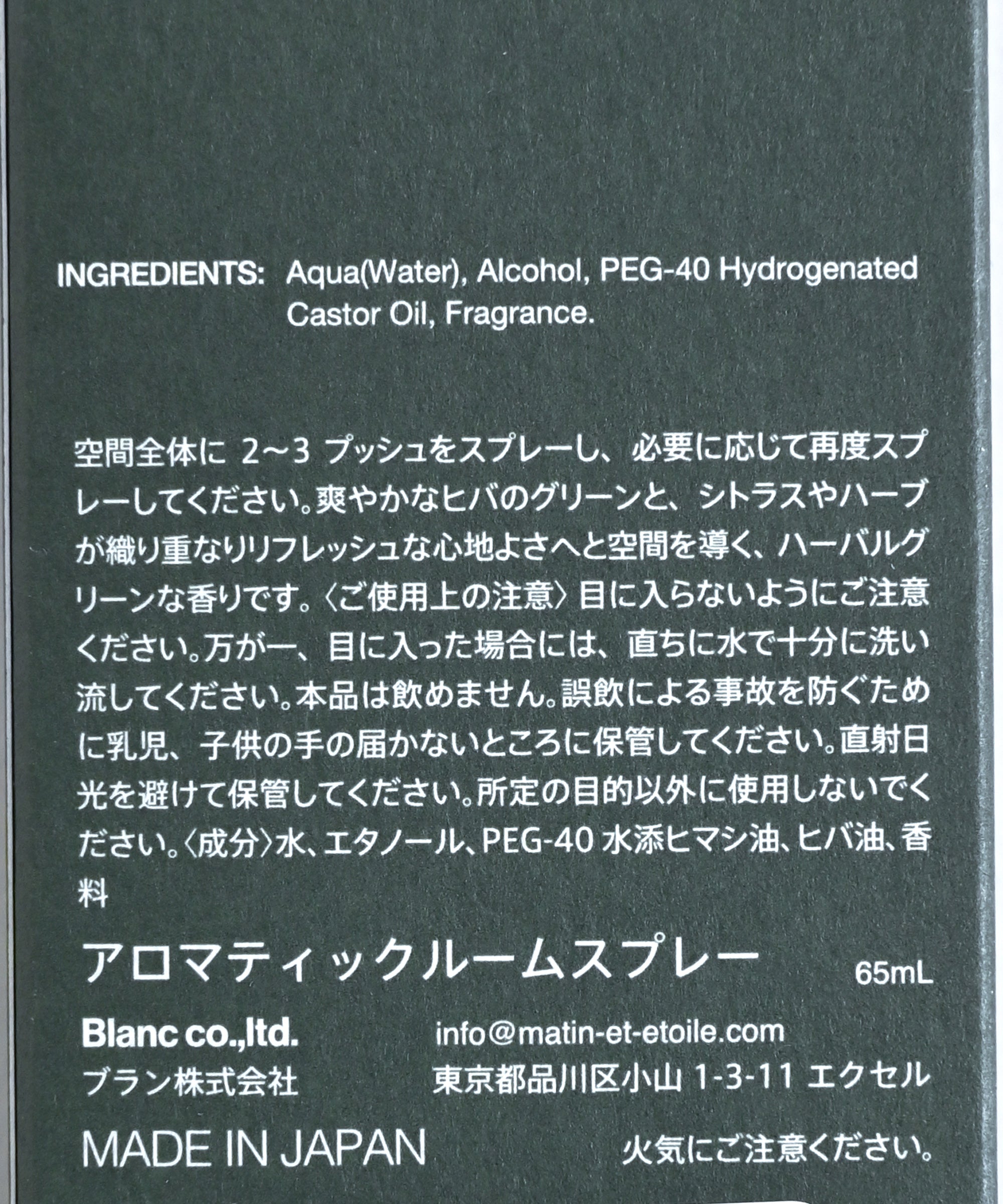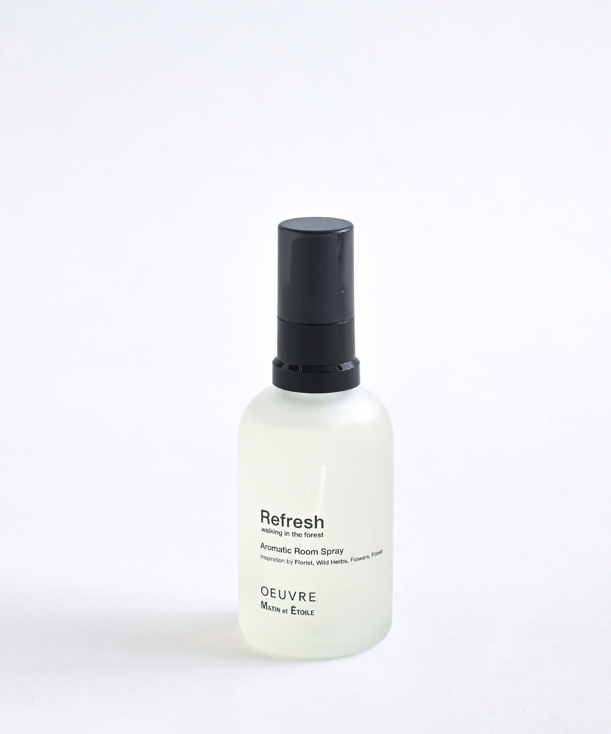 まるで森の中を歩いているかのようなリフレッシュできるハーバルウッディな香りのルームスプレー。