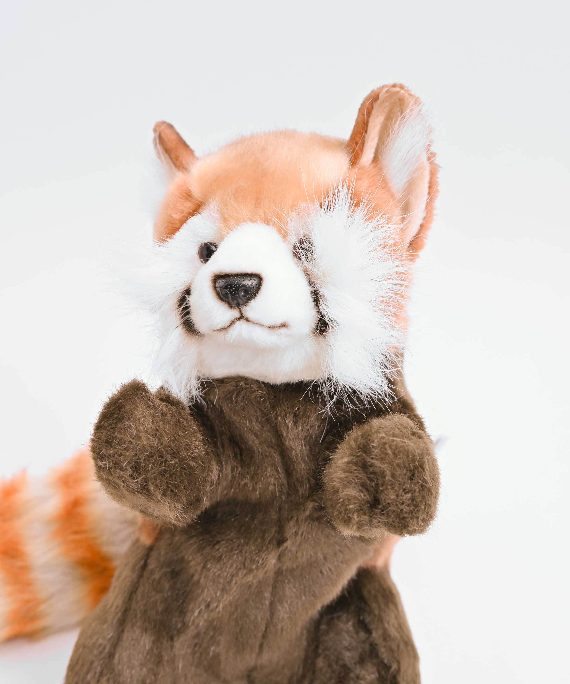 hansa社が制作したリアルなレッサーパンダのハンドパペット。リアルな質感とかわいらしさはそのままに手を入れて遊ぶことができます。