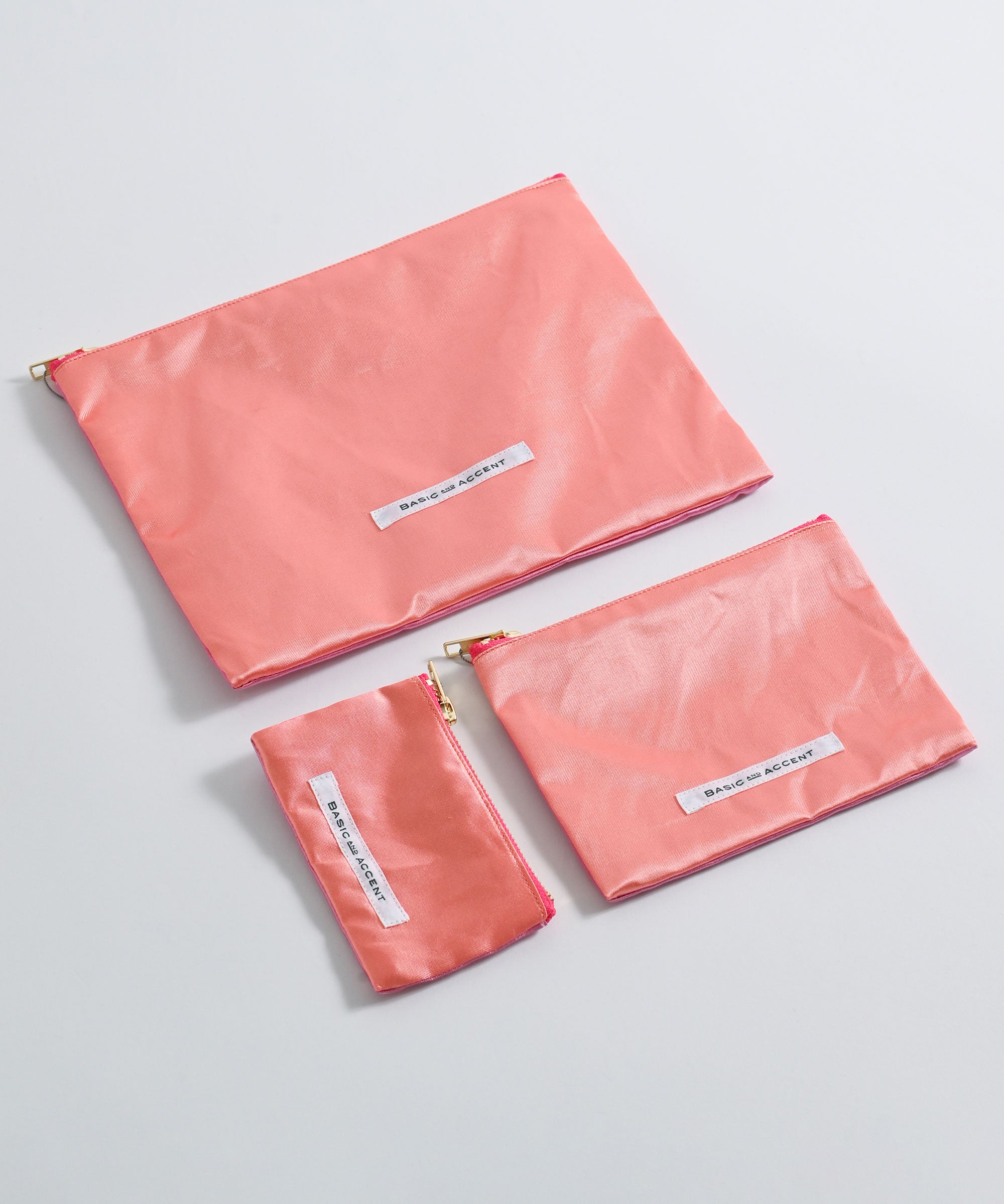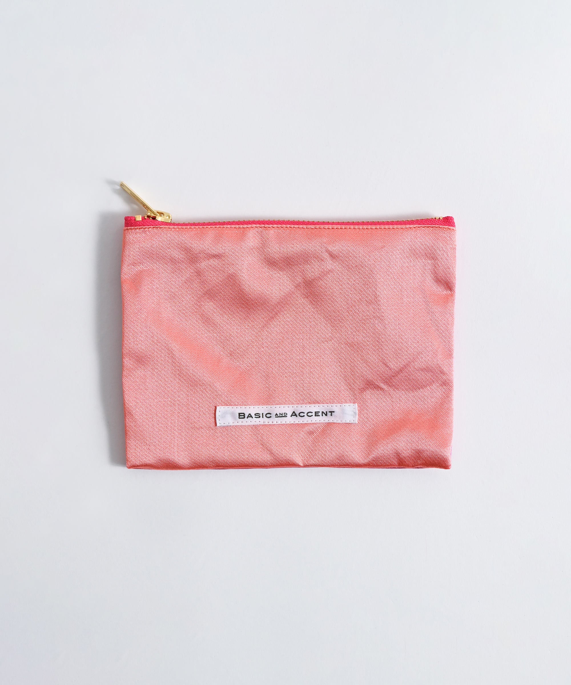 フラットな織り感で程よいグリッター感と裏表で配色の楽しめるBASIC AND ACCENTオリジナルのポーチシリーズ。