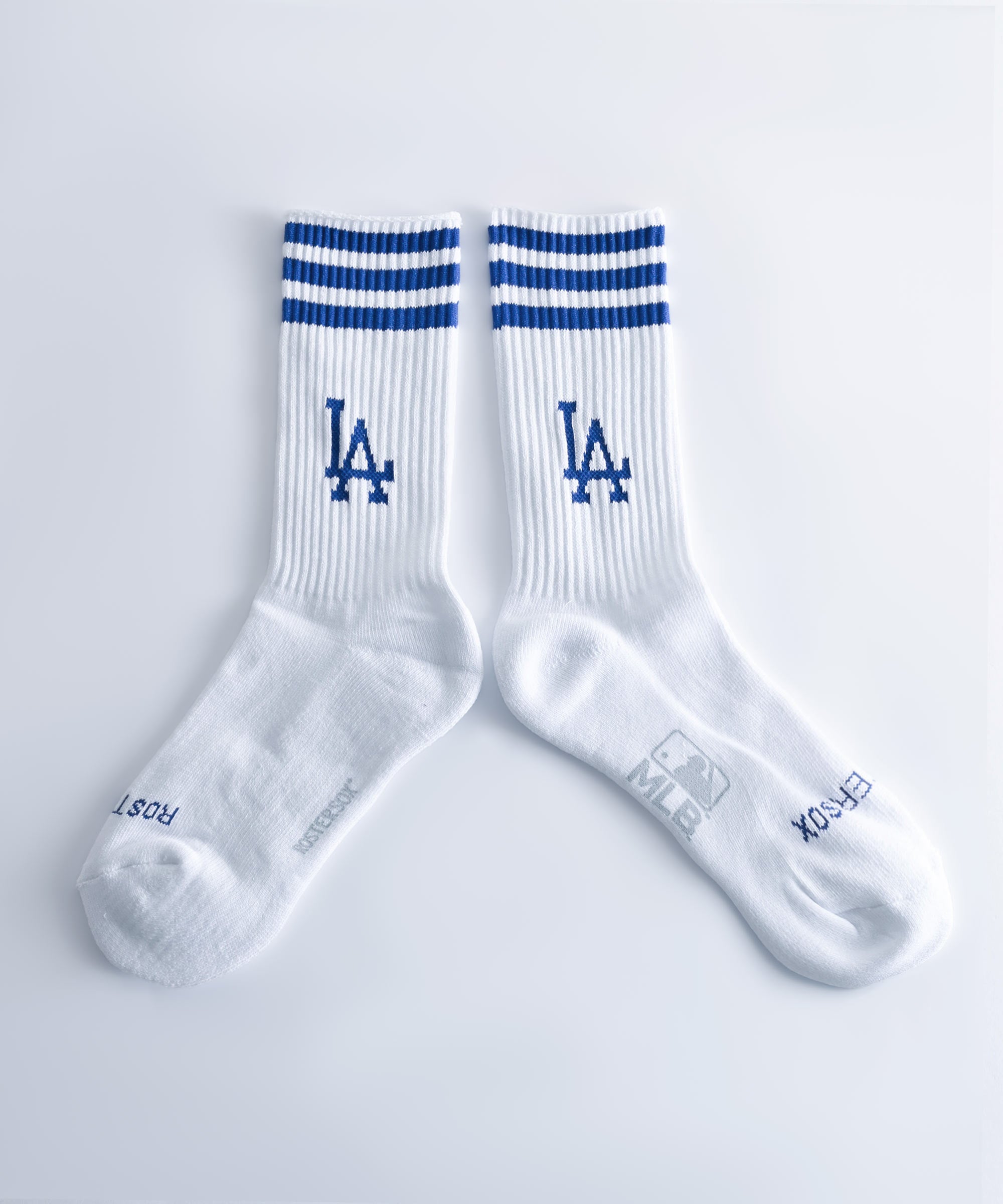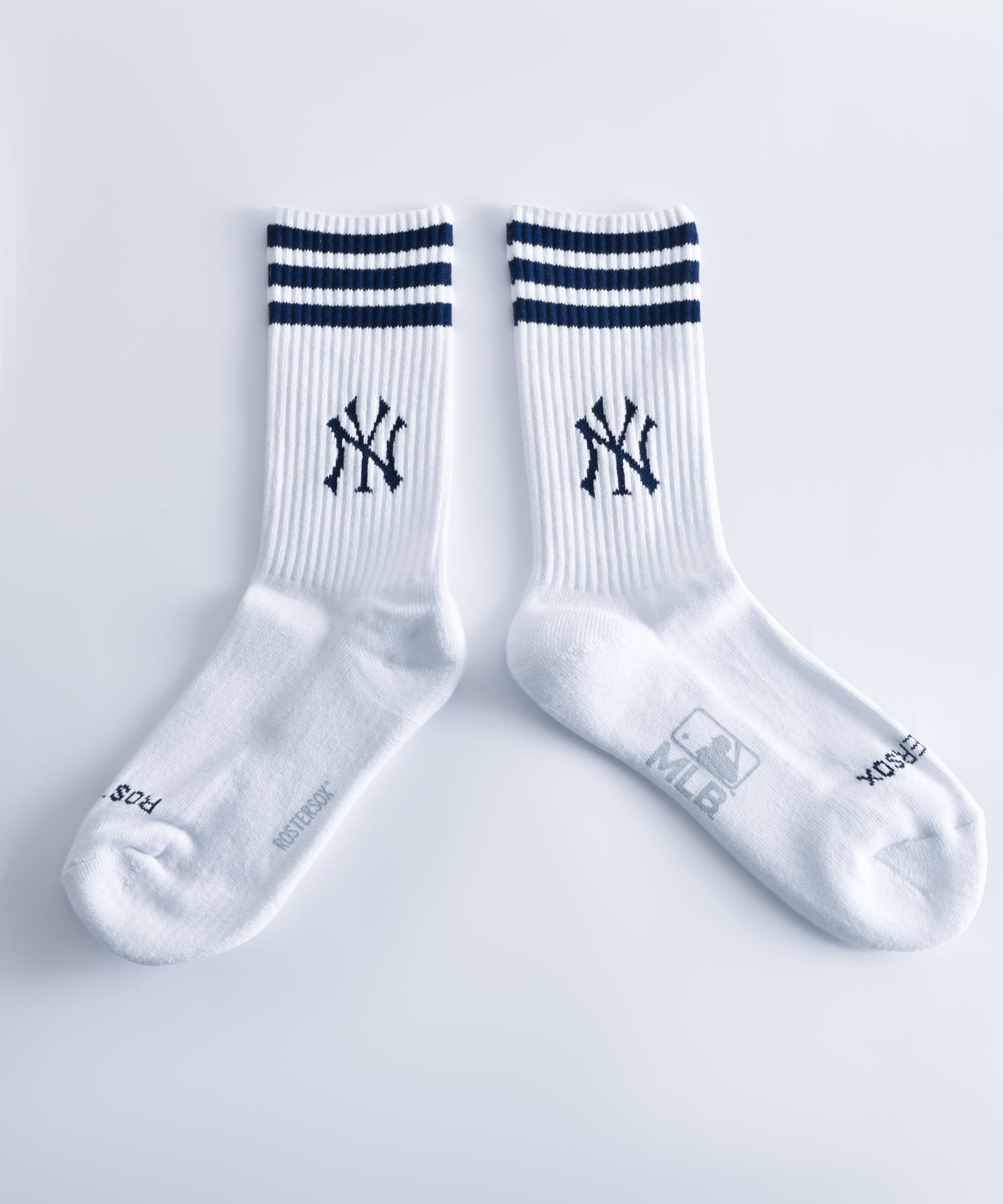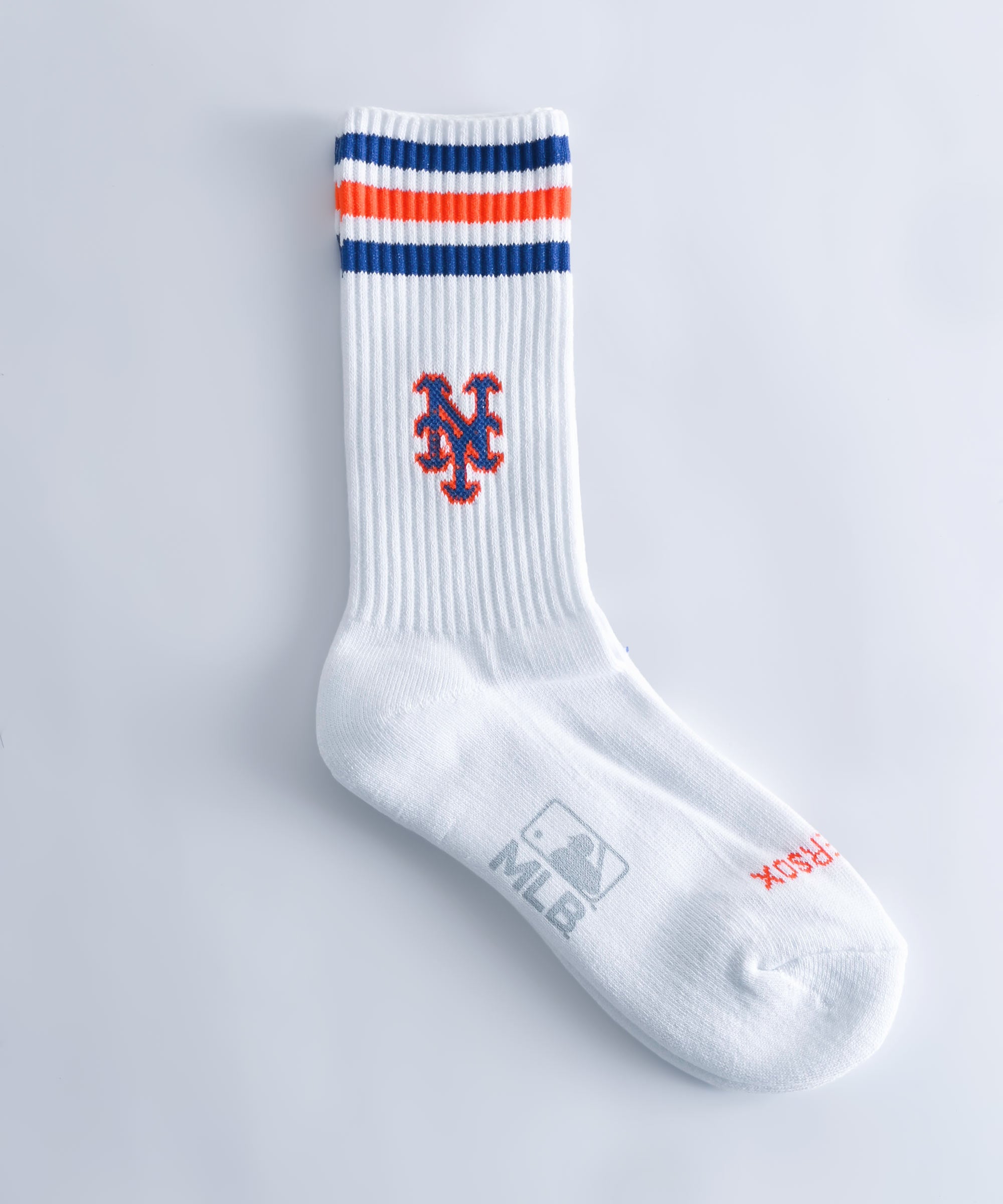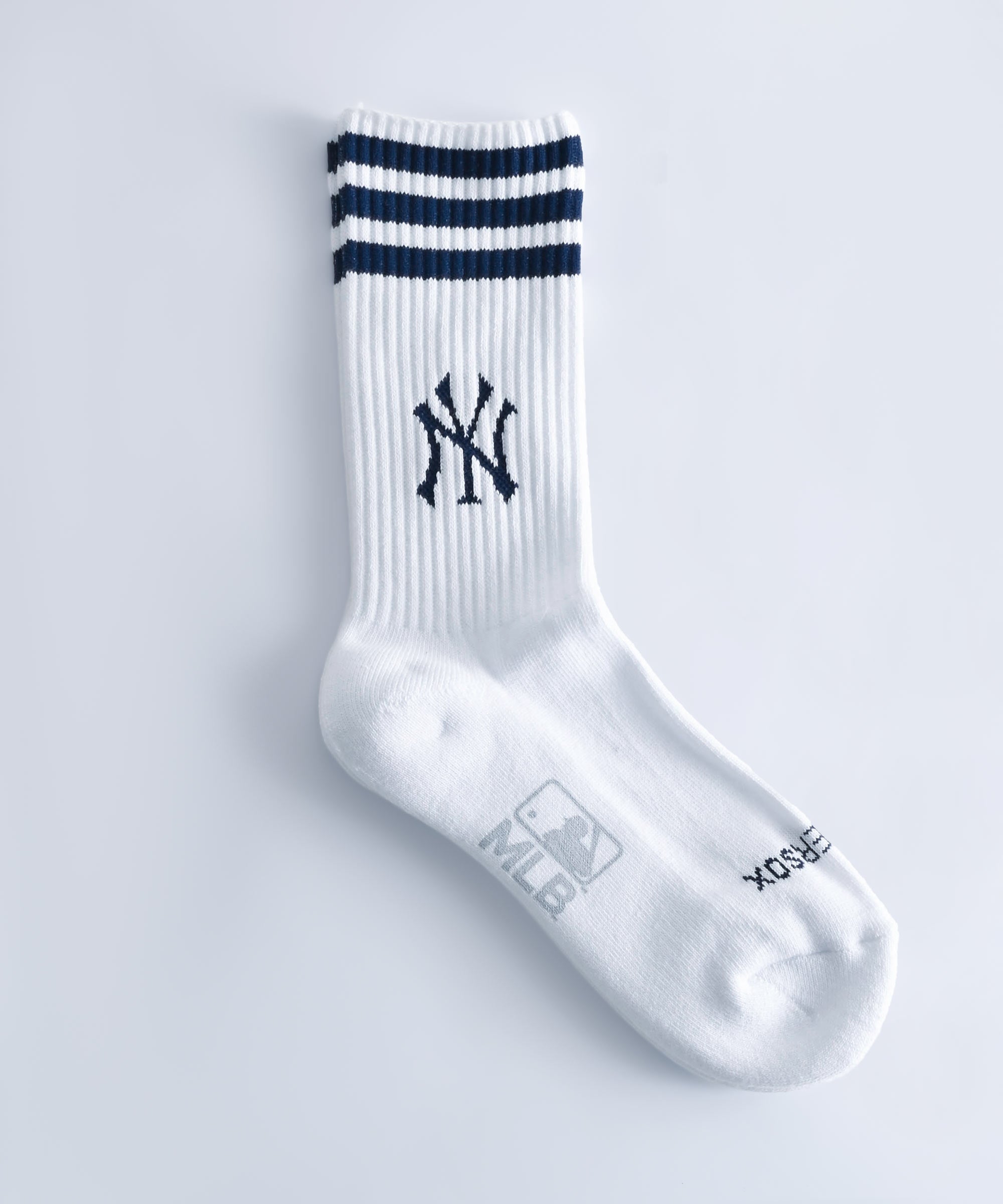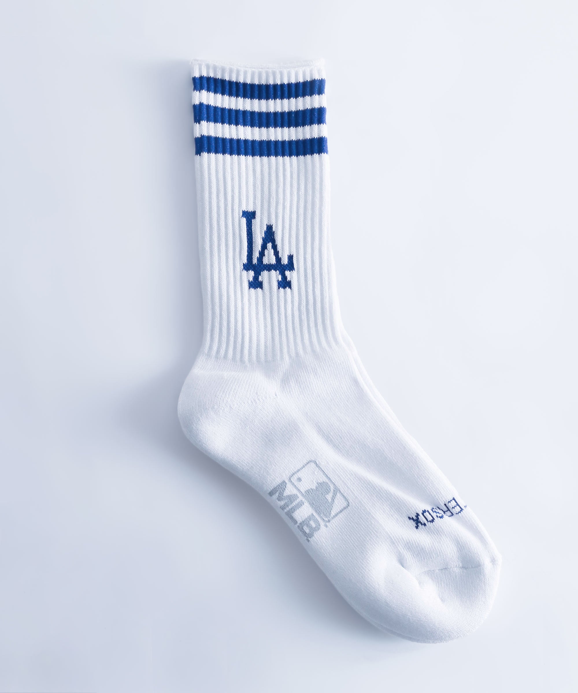 MBL/メジャーリーグベースボールの人気球団のチームロゴと3本のラインがスポーティーなリブソックス。