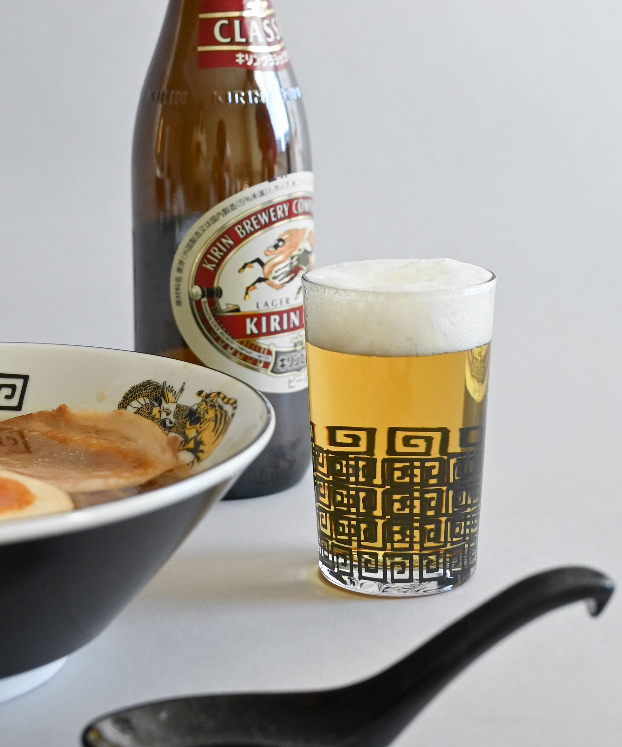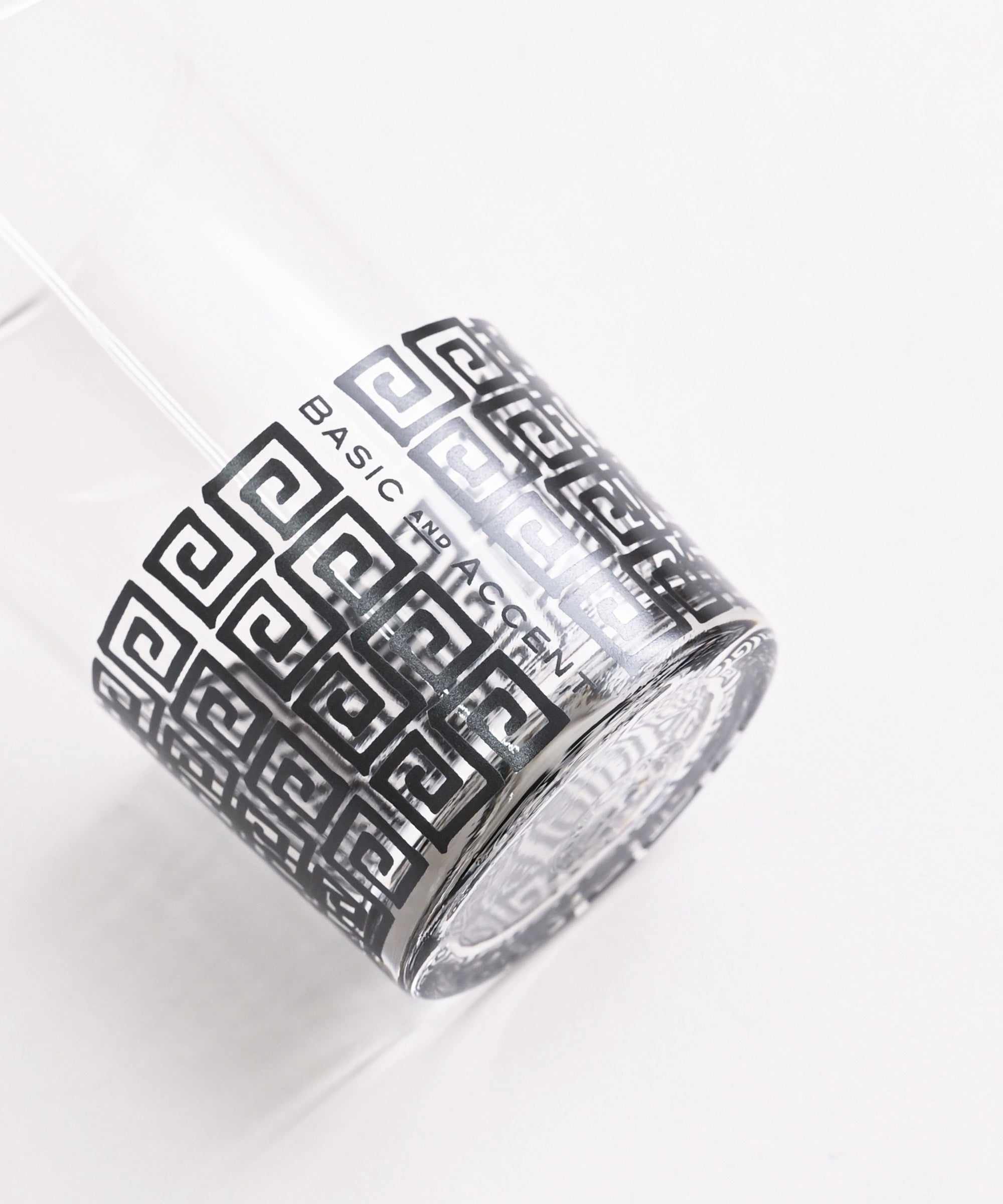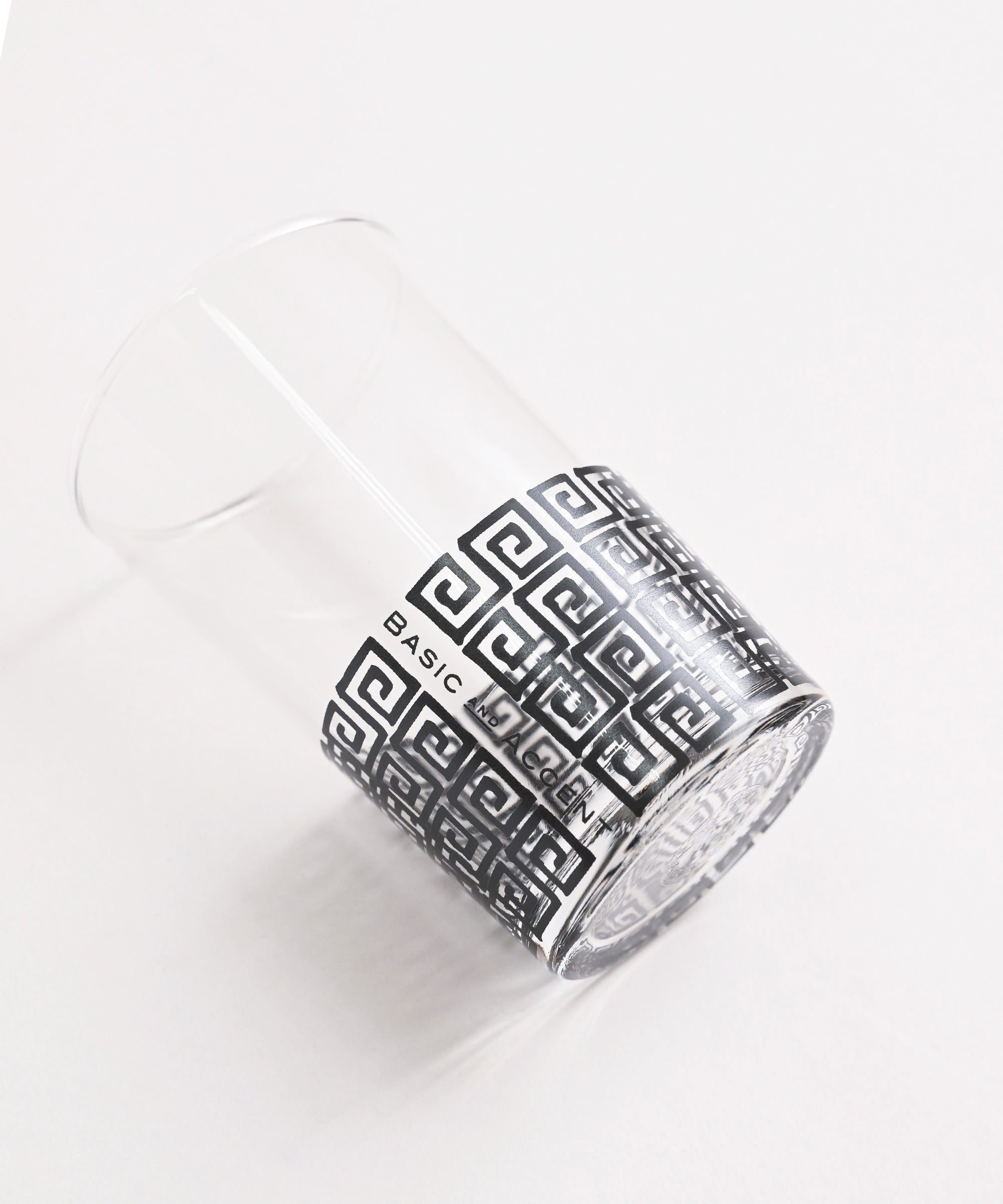 グラスは、ビールを飲むのにもぴったりなサイズ感で、BASIC AND ACCENTのロゴがプリントされています。