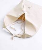 背面にはヌメ革のレザーパッチを配し、口元はテープで結べるようになっています。
