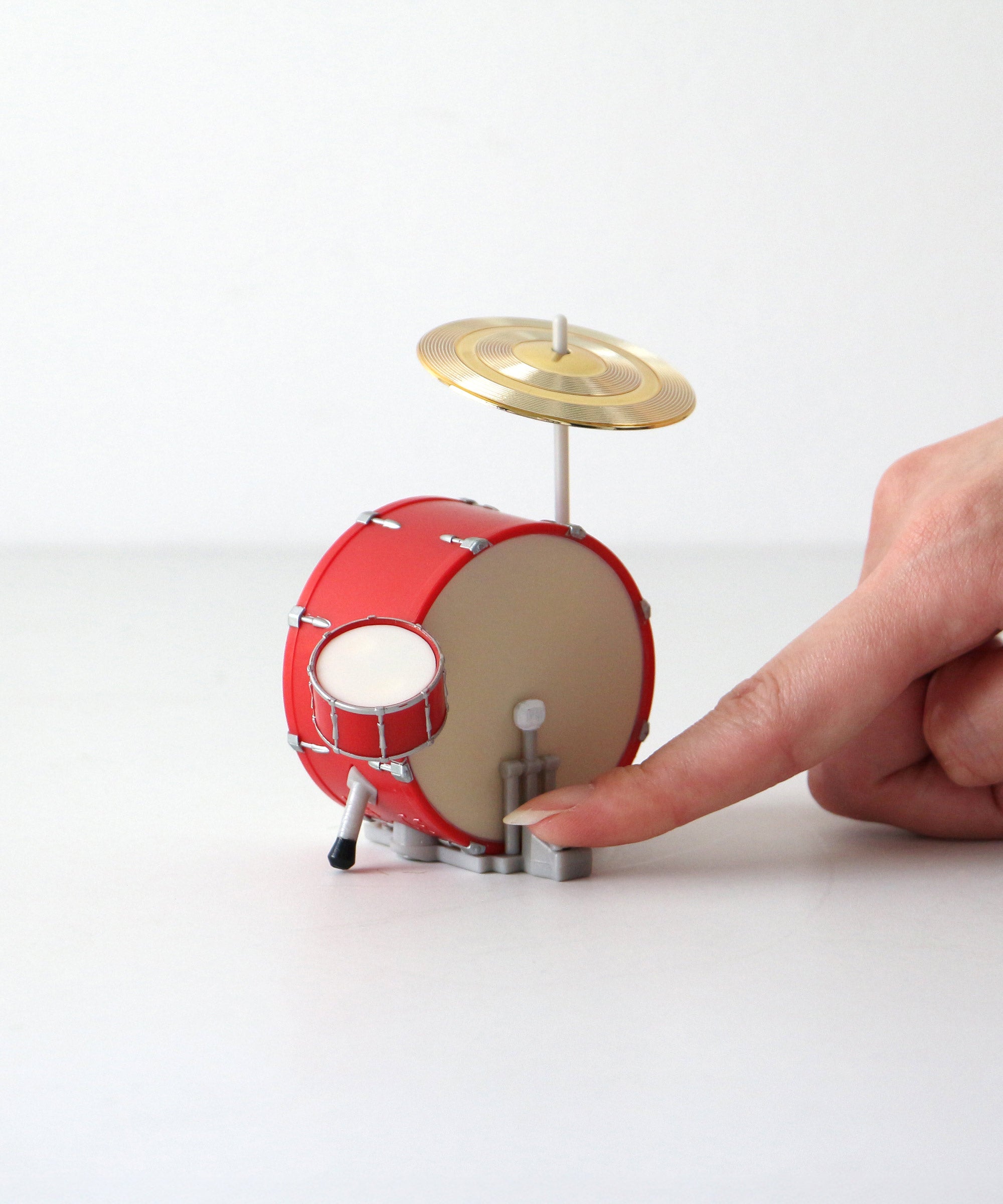 バスドラム・スネアドラム・シンバルの3つのパーツを自由に組み合わせて、オリジナルのサウンドパフォーマンスを楽しめます。スネアを長押しすることでドラムロールが流れるので、シンバルと組み合わせることで結果発表のような演奏も可能。