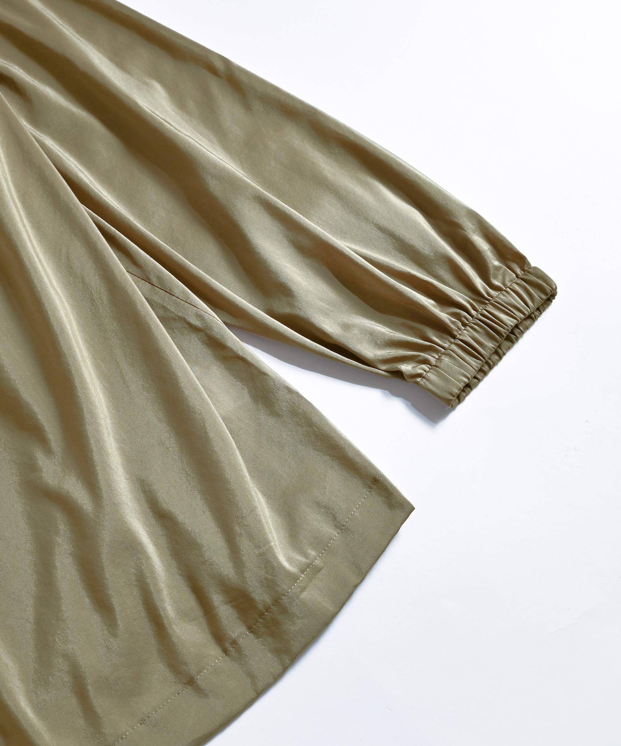 ソフトで軽い特徴的な光沢感のある生地を使用した、羽織にもなる2wayブラウス。