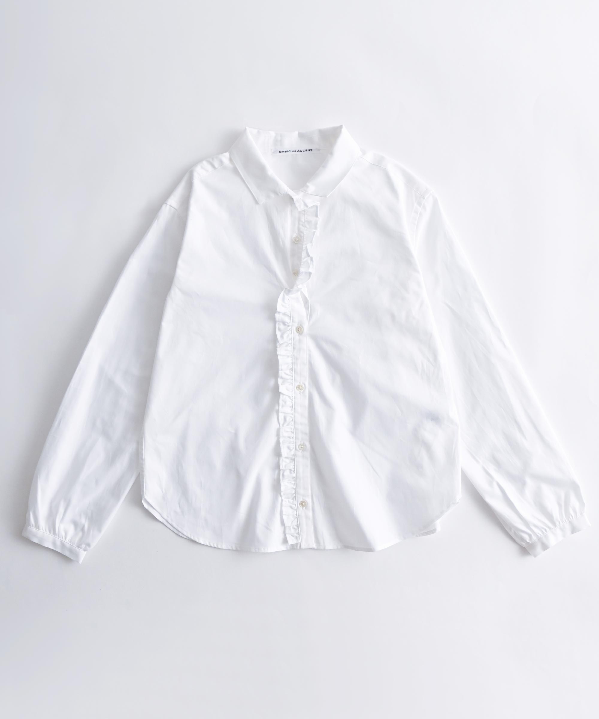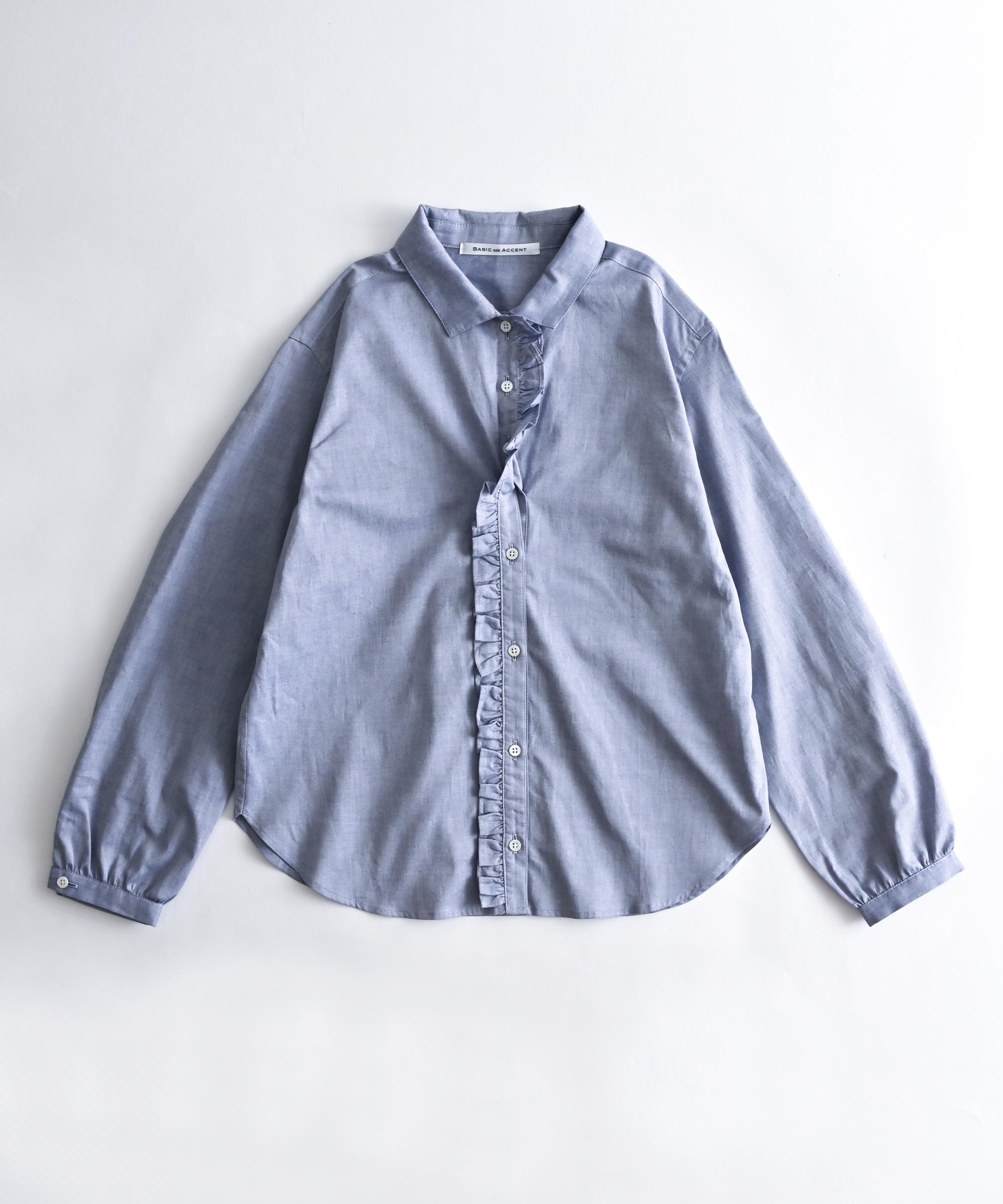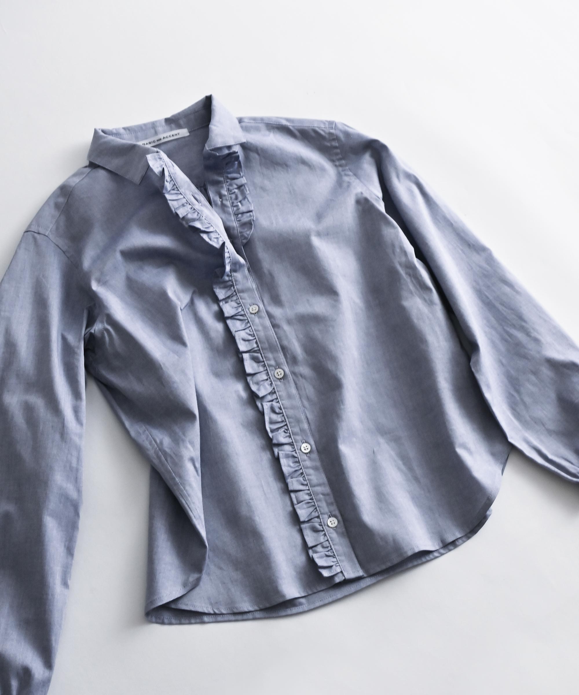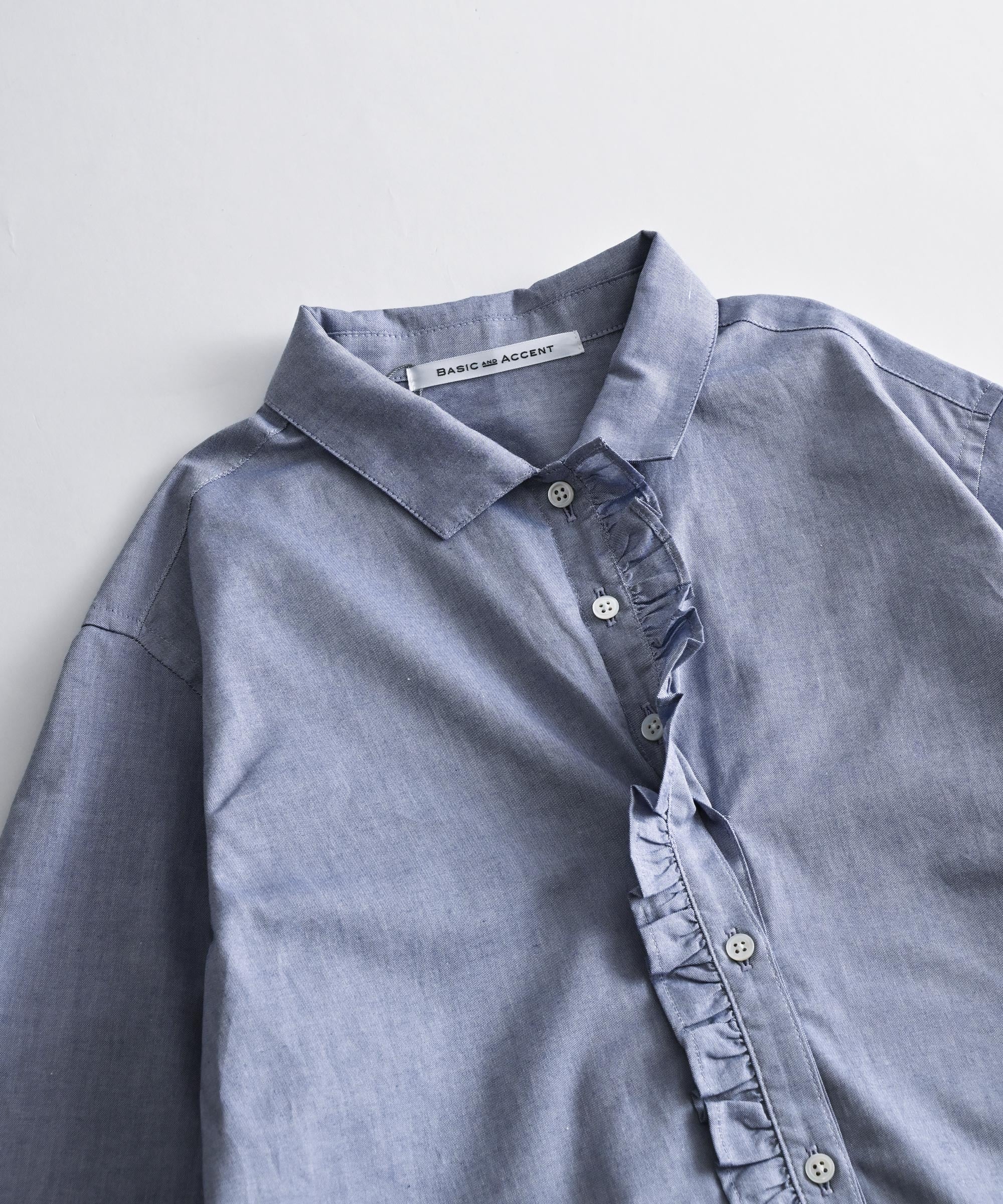 綺麗めなピンオックス生地とフリルデザインのバランスが絶妙なBASIC AND ACCENTオリジナルのデザインシャツ。
