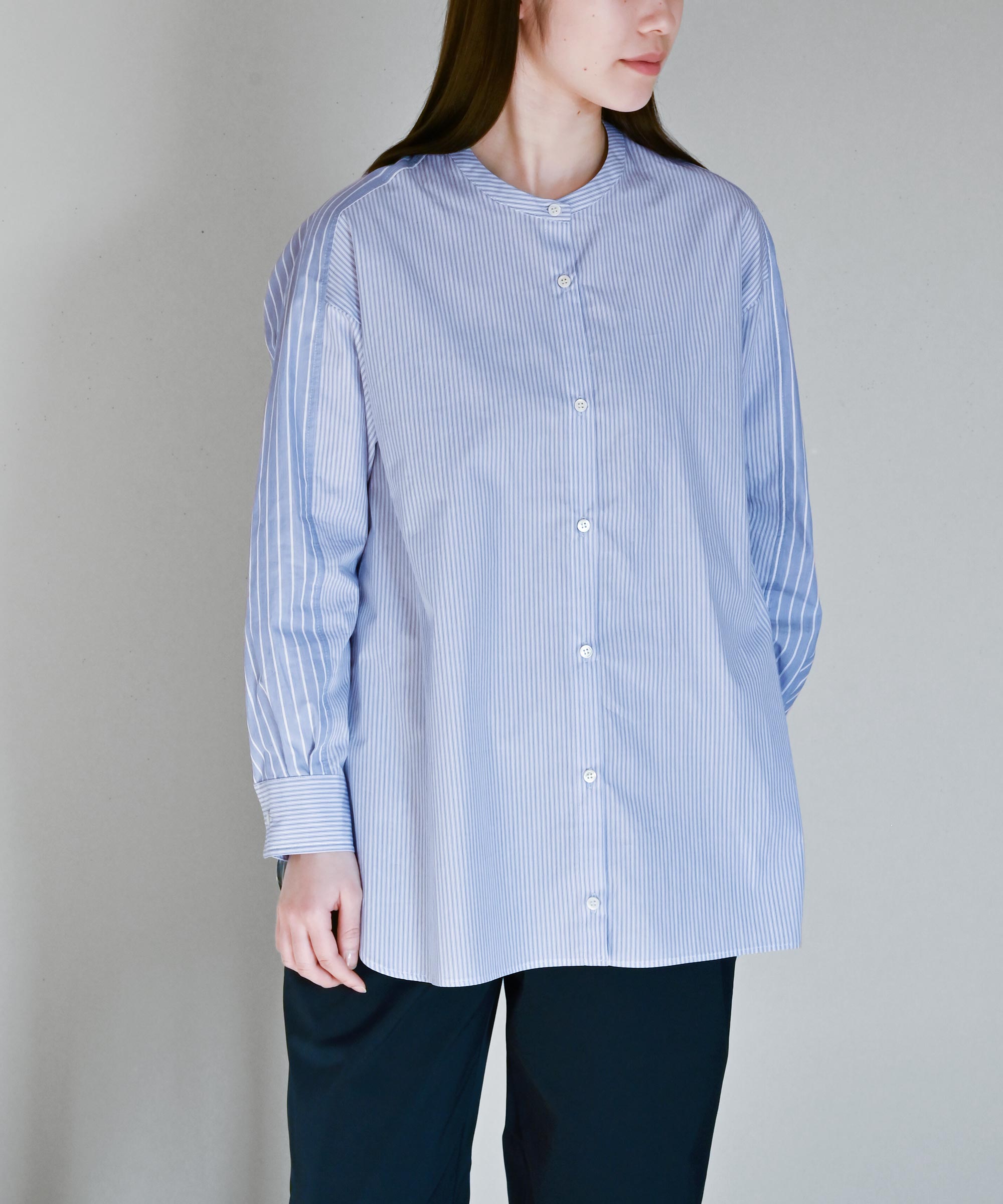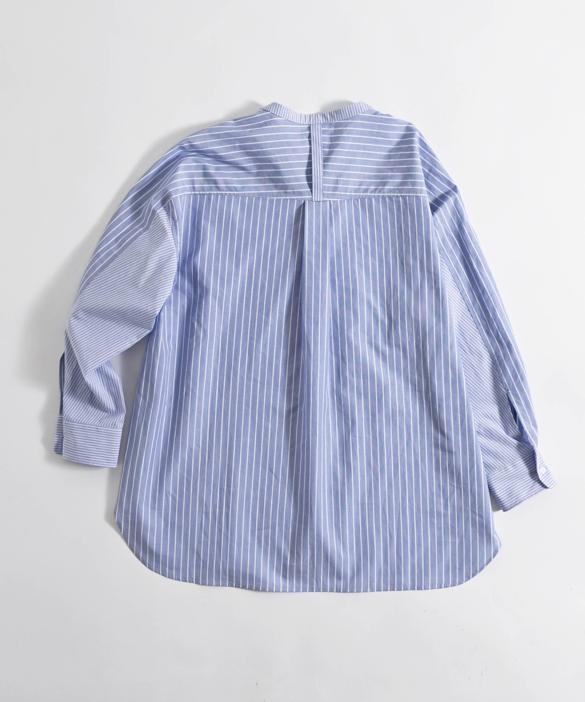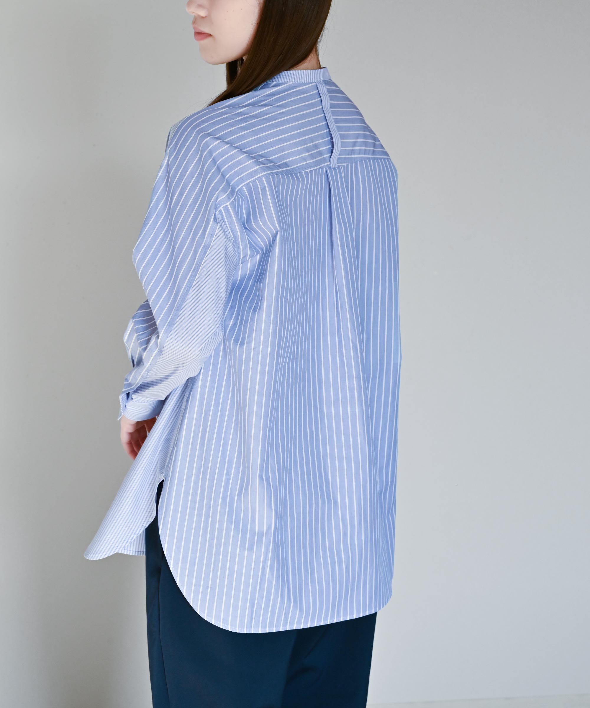 やや薄手のシャツ生地を使用し太さの違うストライプ柄を組み合わせました。