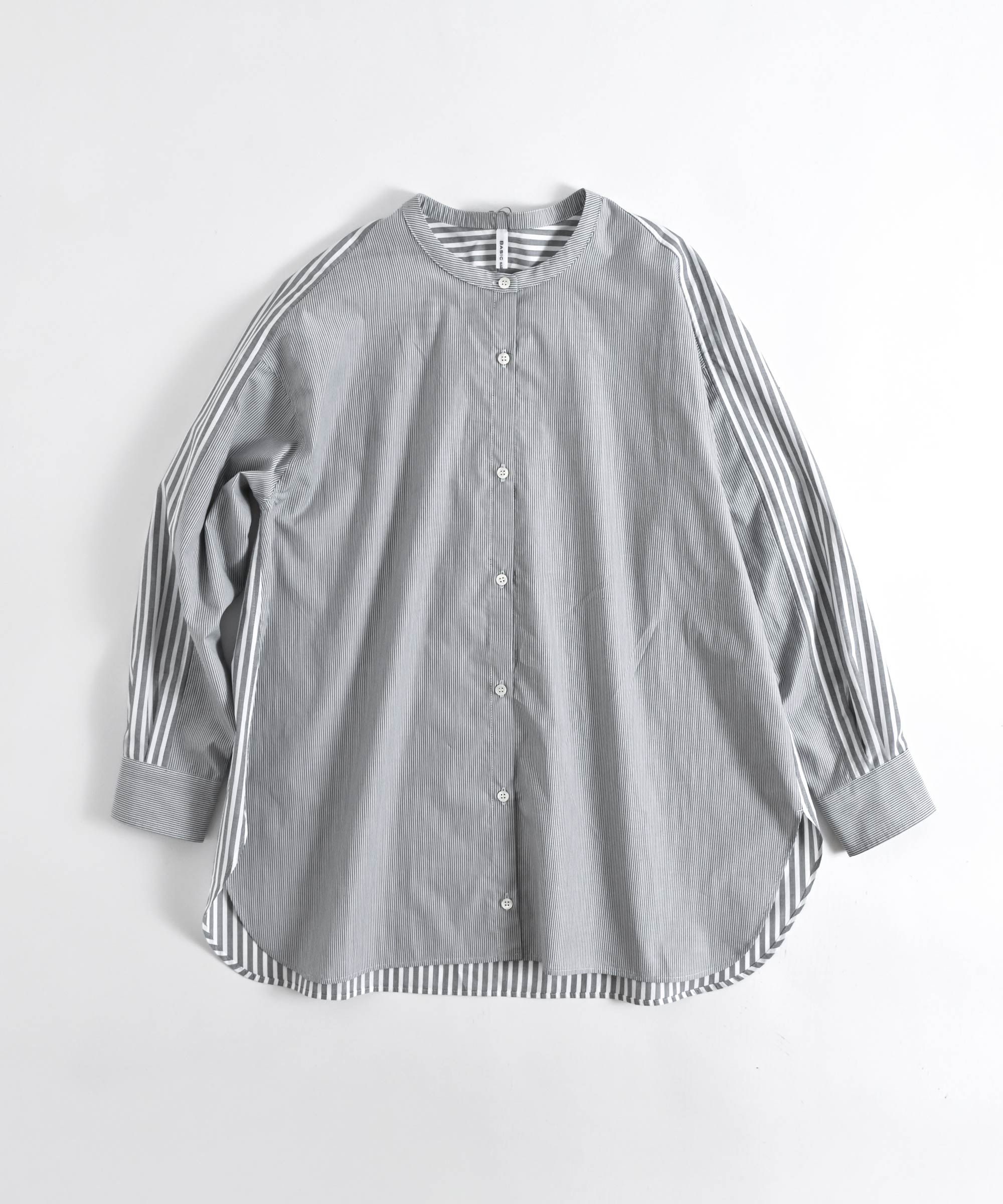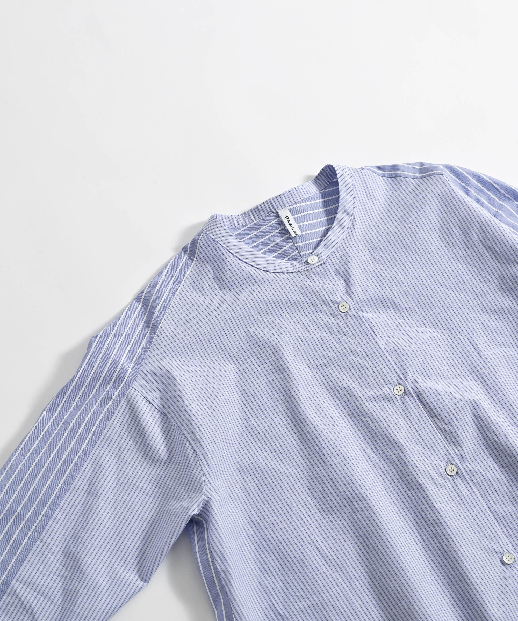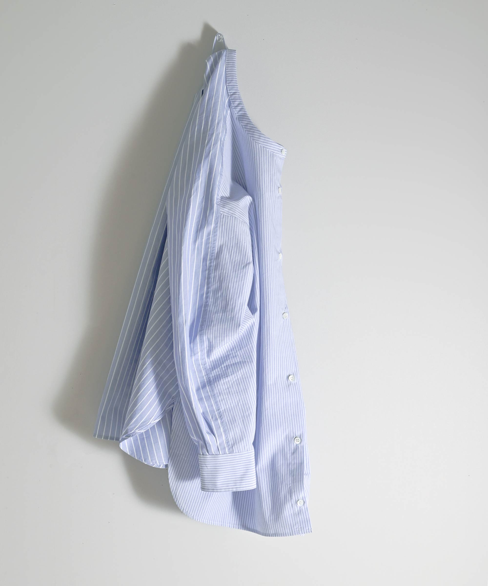 やや薄手のシャツ生地を使用し太さの違うストライプ柄を組み合わせました。