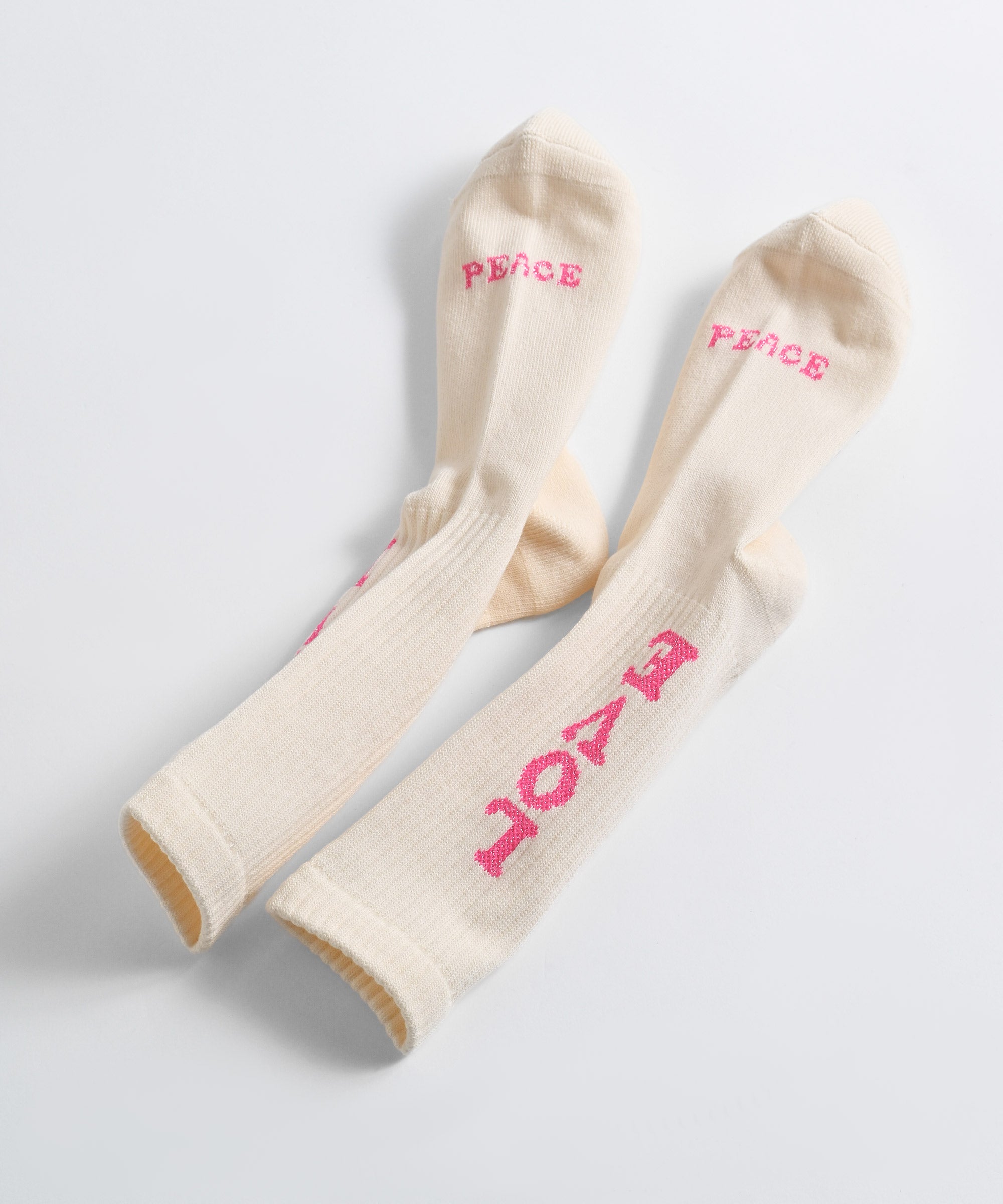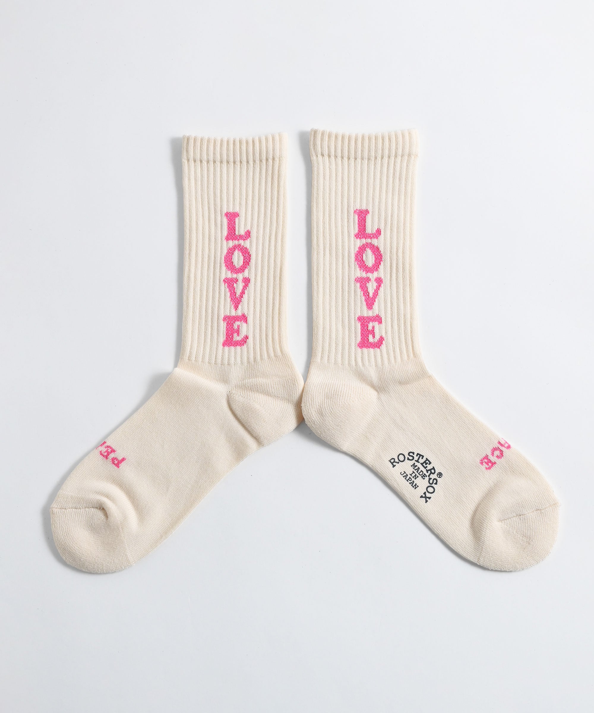ボディの"LOVE"とつま先の"PEACE"の文字が印象的なソックス。