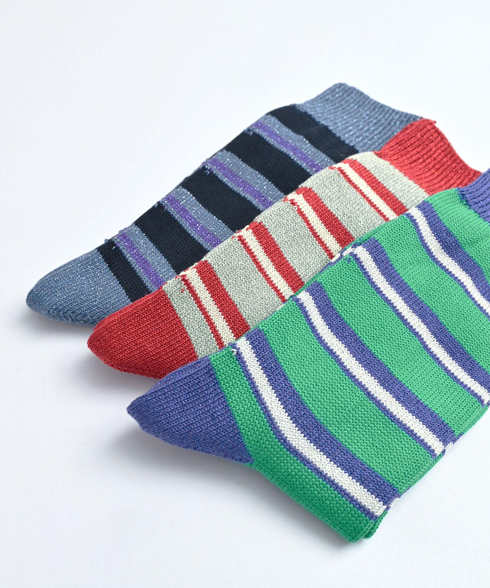 目を惹く配色のボーダーに、ラメで遊び心をプラスしました。