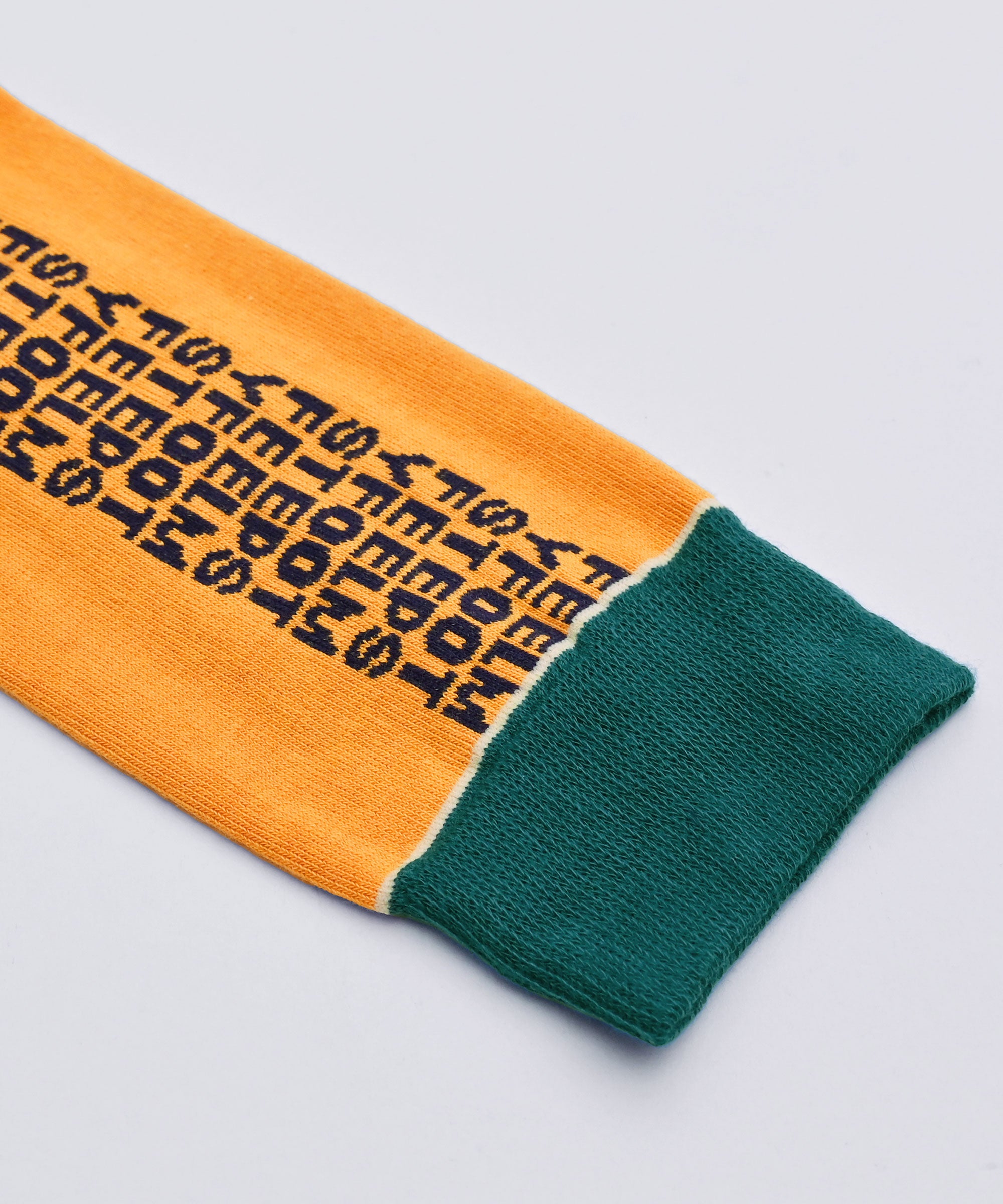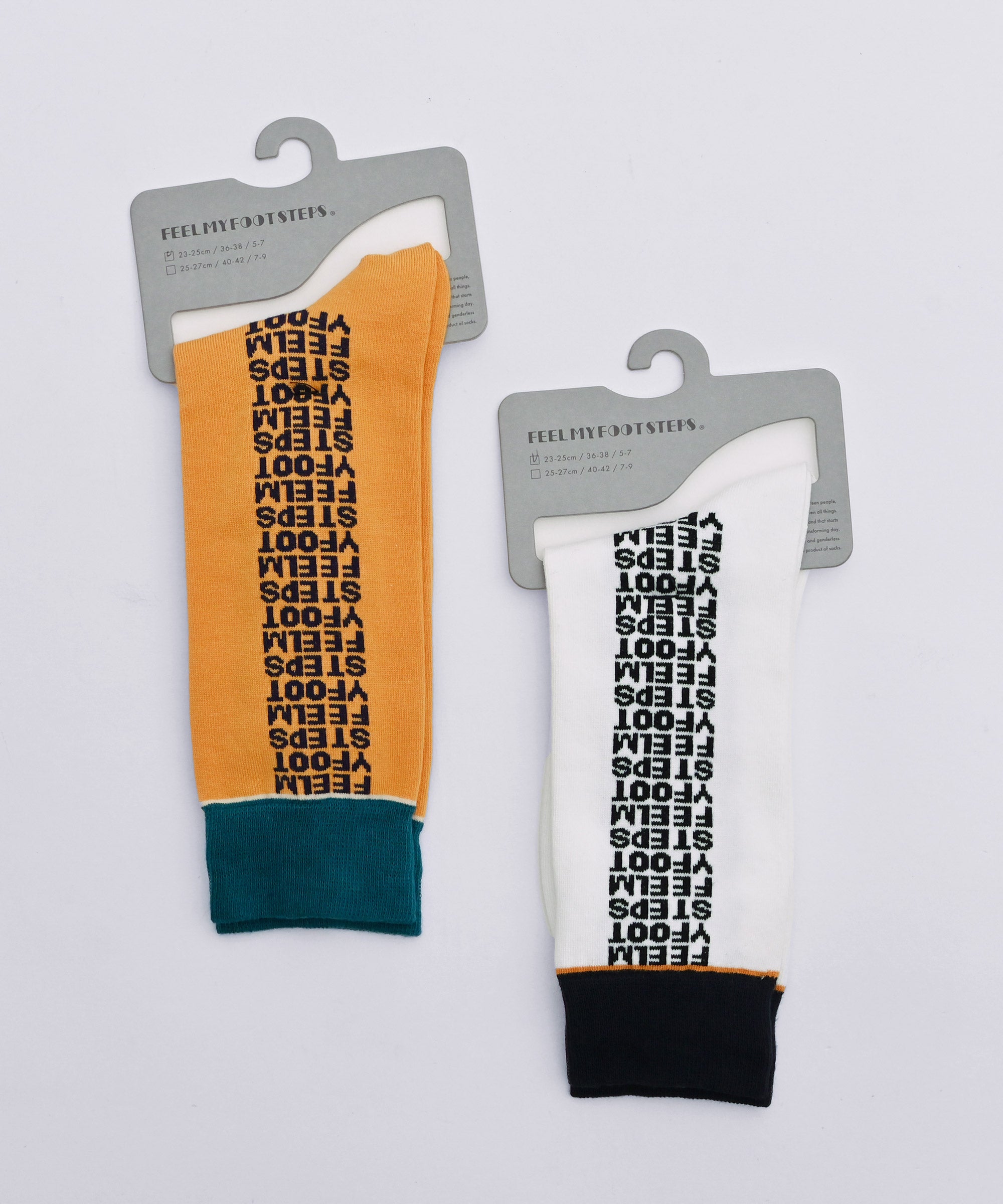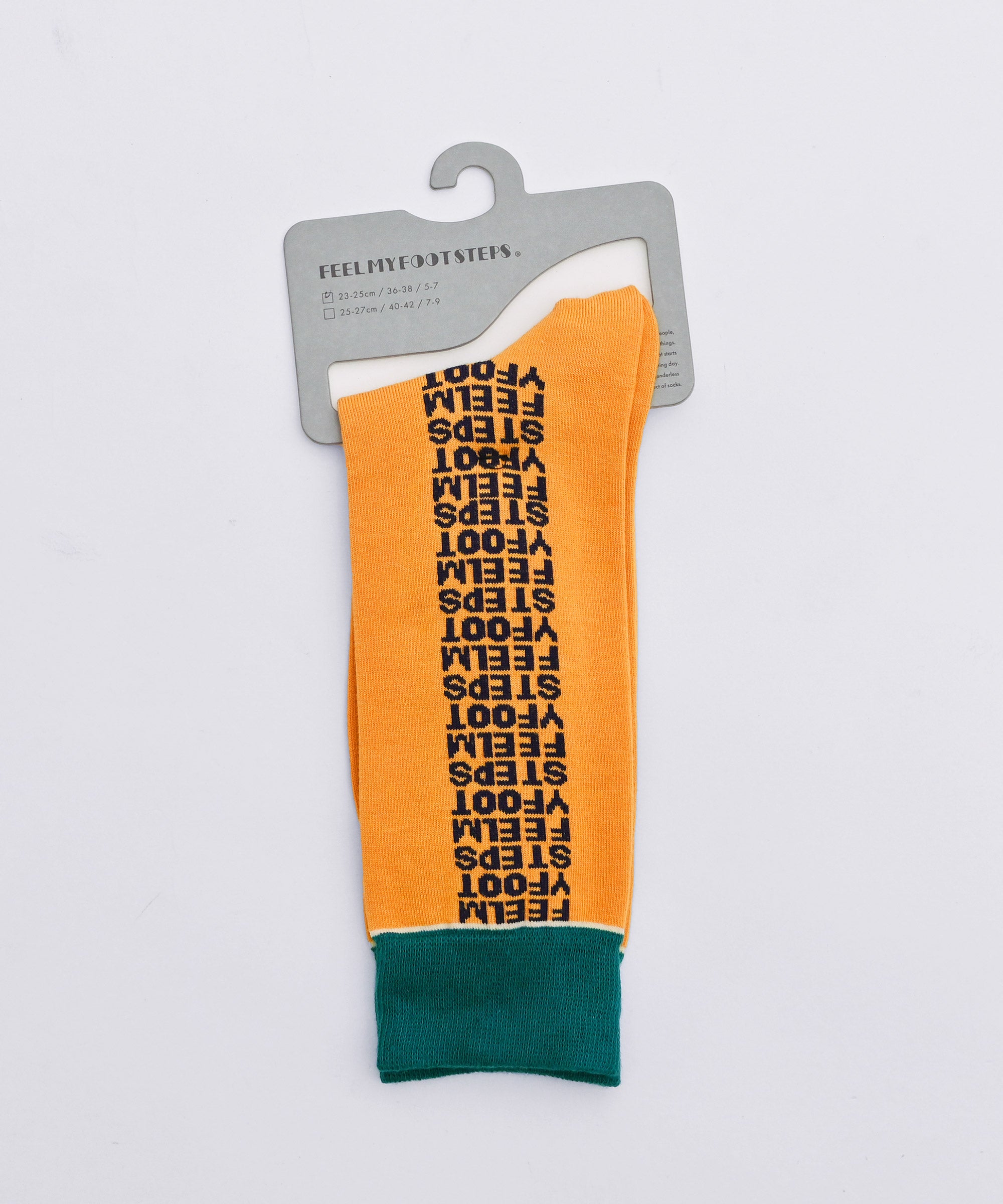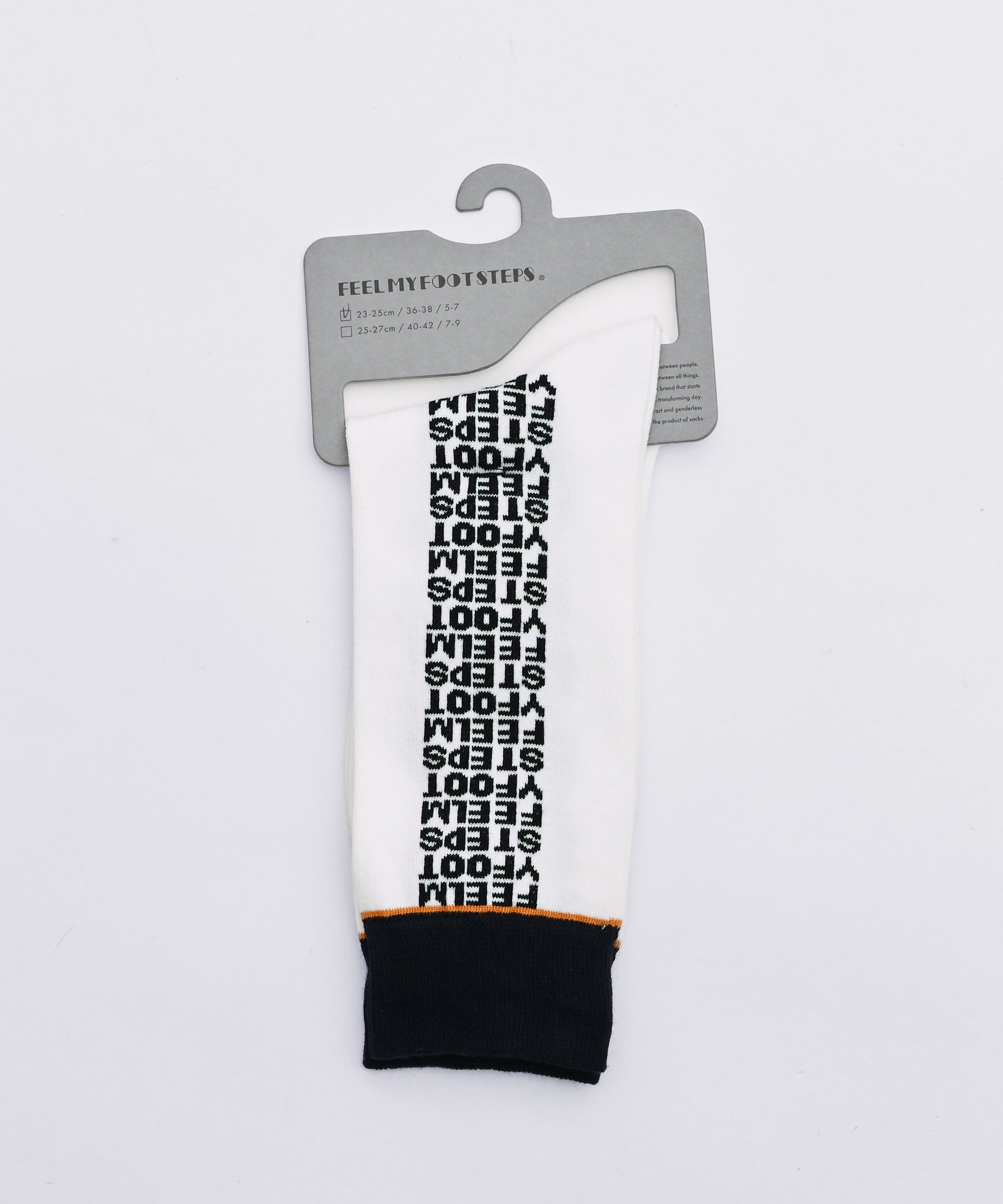 左右にアルファベットが並ぶ、発売当初から FEEL MY FOOTSTEPS 一番人気のデザイン「レター」のソックス。