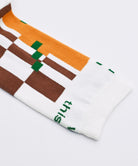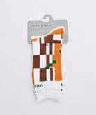 幾何学模様がインパクトのあるソックス。