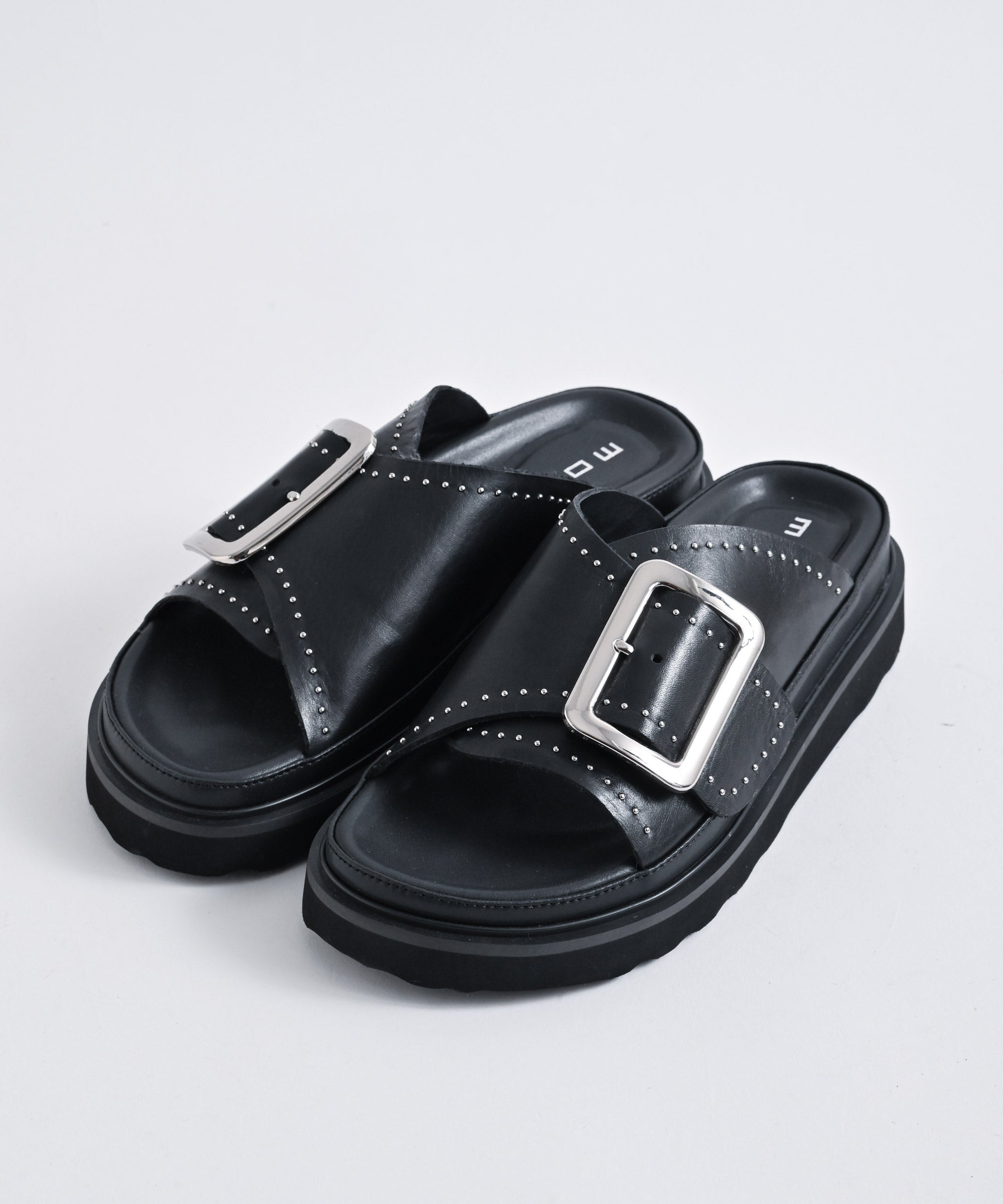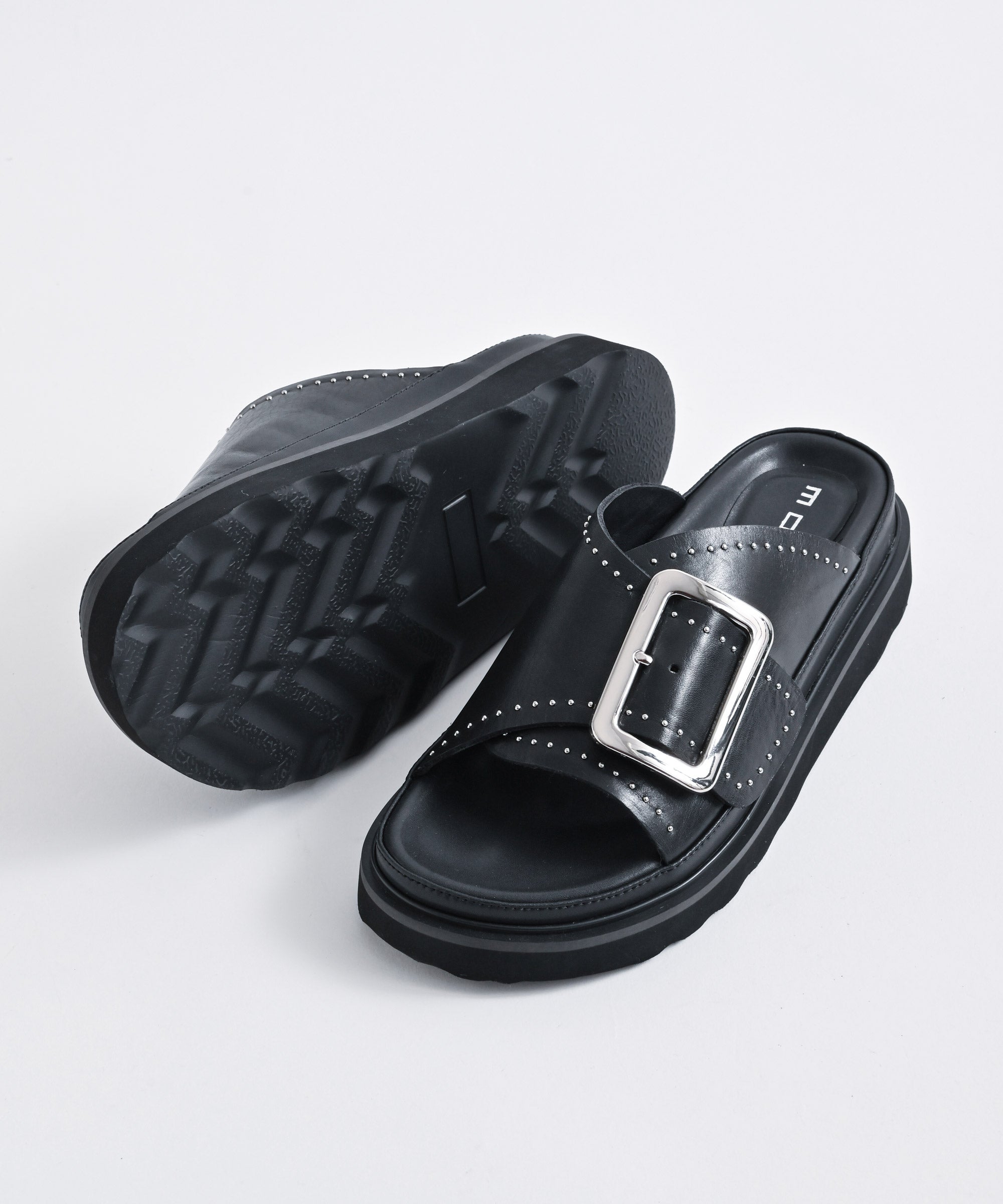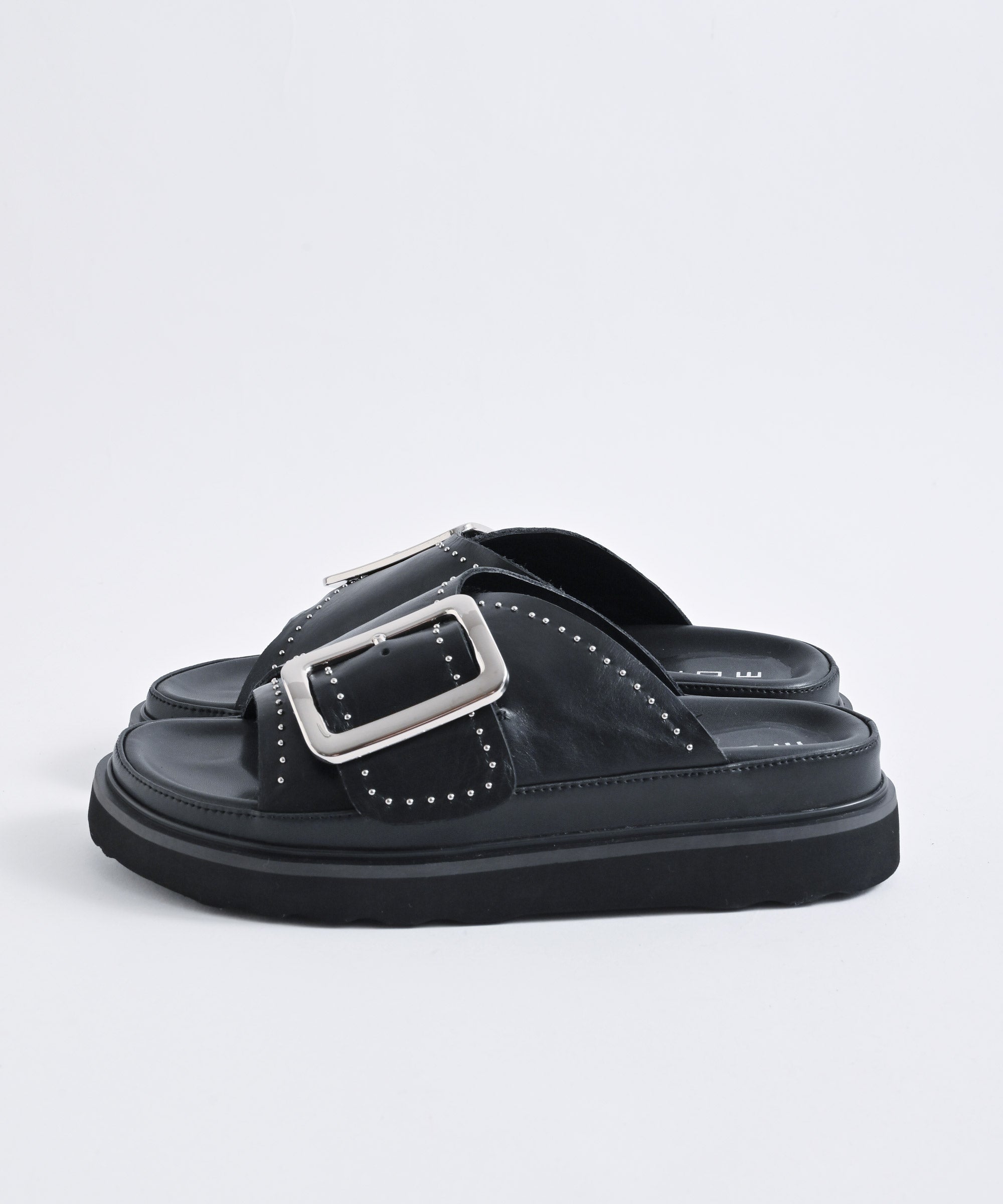 ビッグバックル×スタッズ レザーコンフォートサンダル