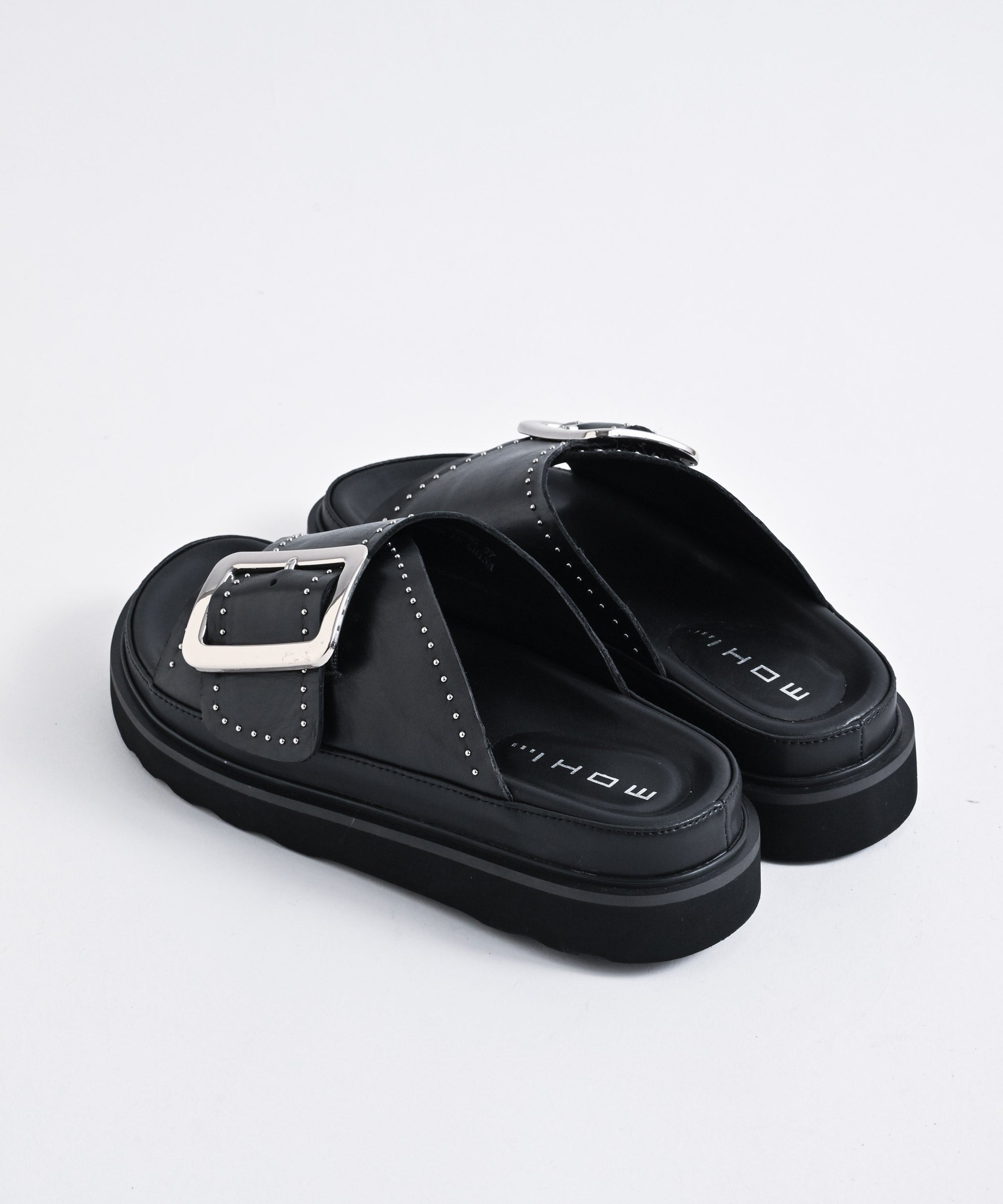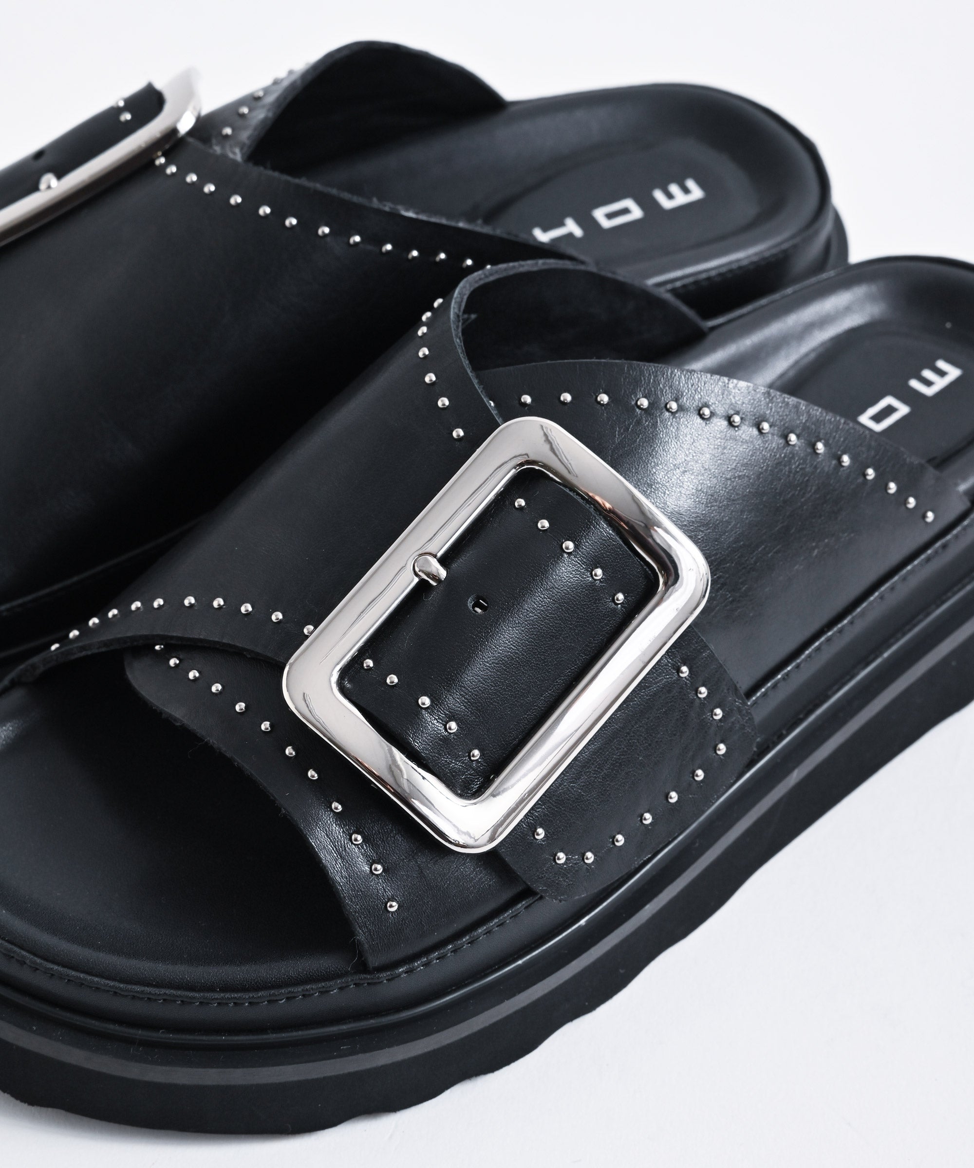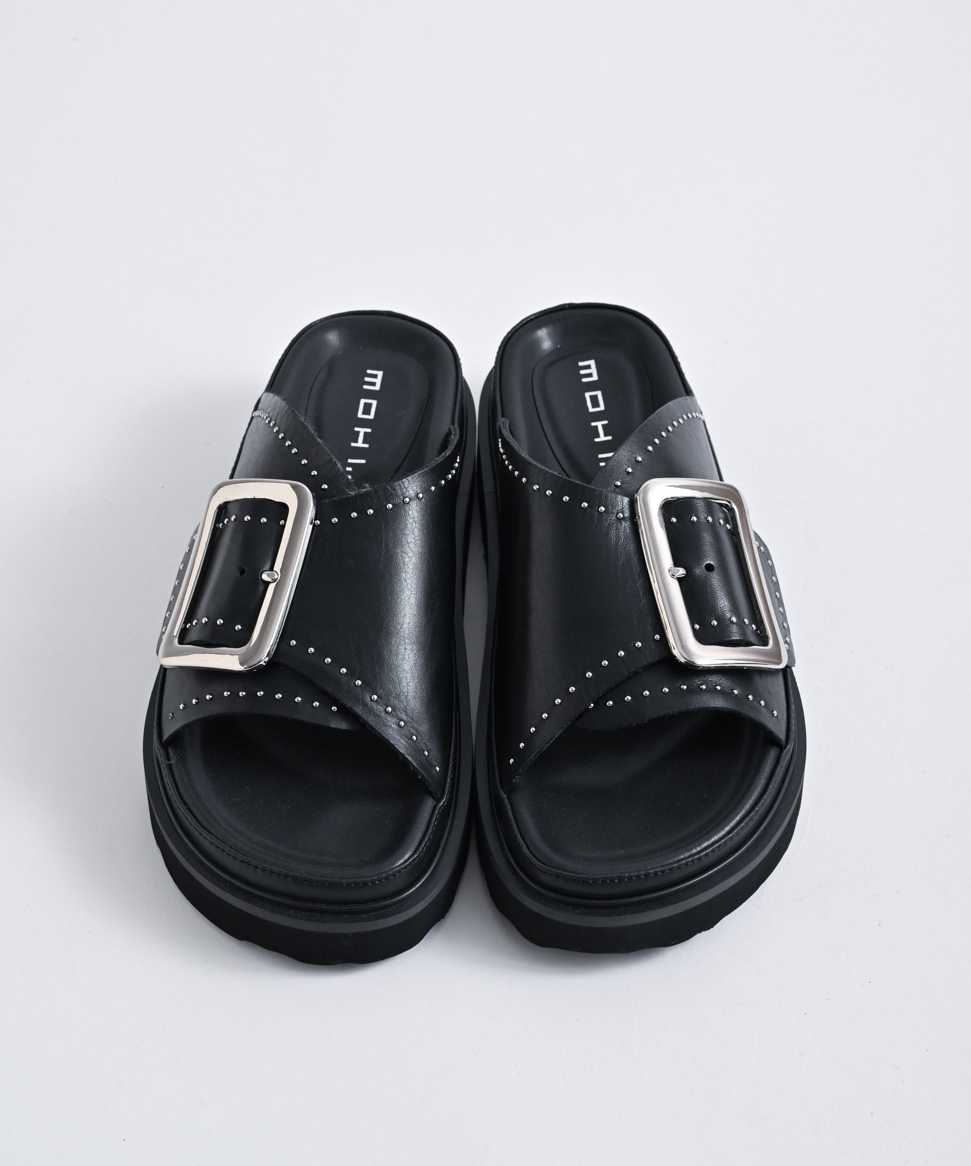 ビッグバックル×スタッズ レザーコンフォートサンダル