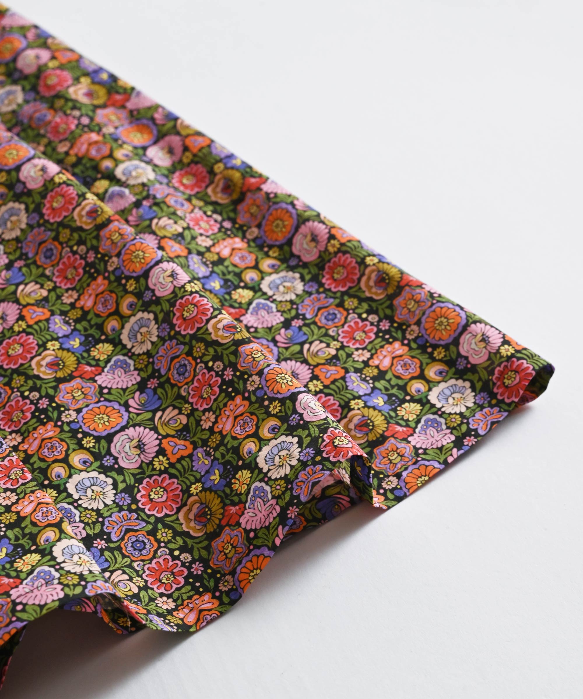 イギリスのテキスタイルブランド”Libertyリバティ”のテキスタイルデザインを施したプリント生地を使用し、国内縫製で丁寧に作られています。