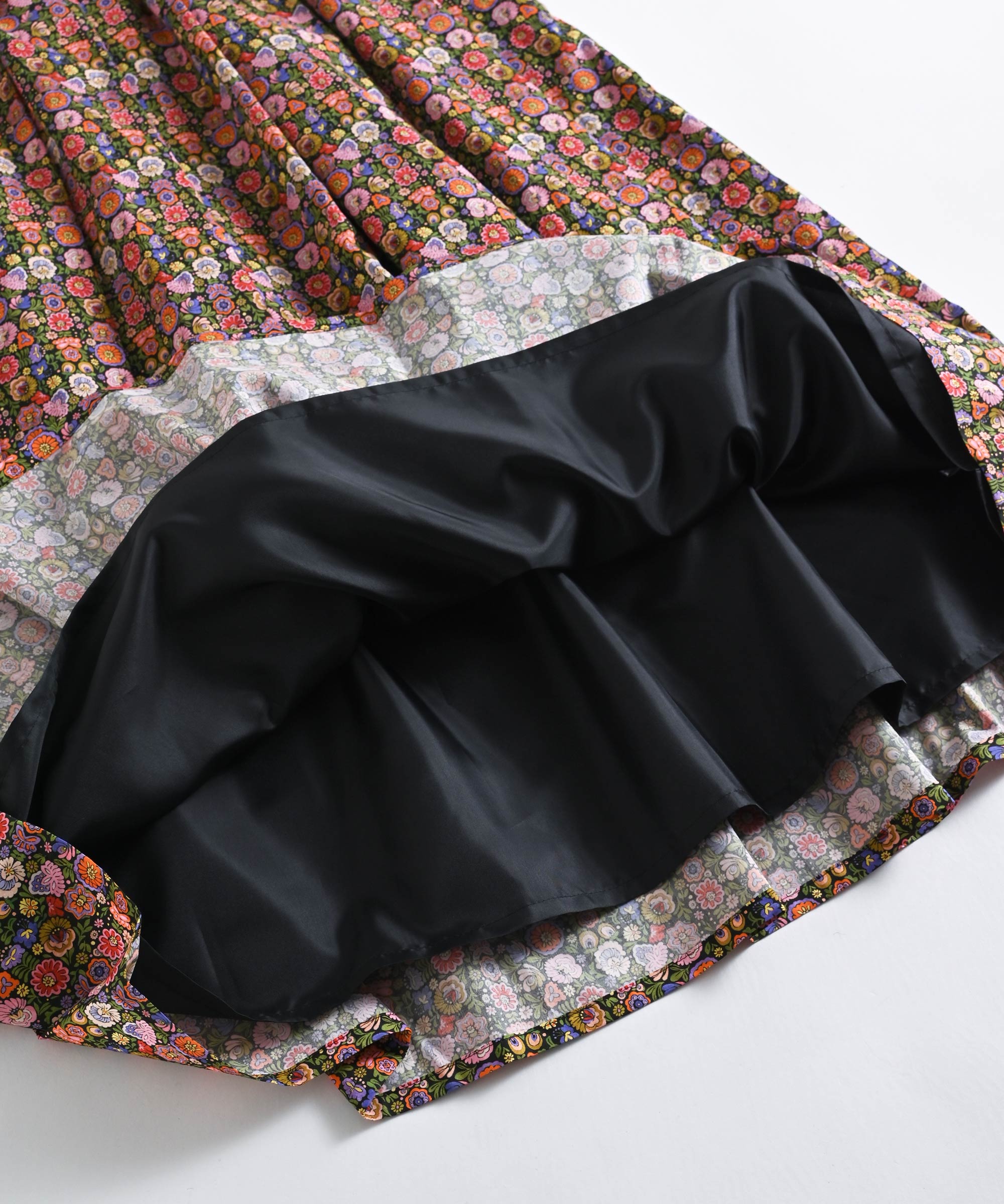リバティのテキスタイルがコーティネートのポイントになるスカート。