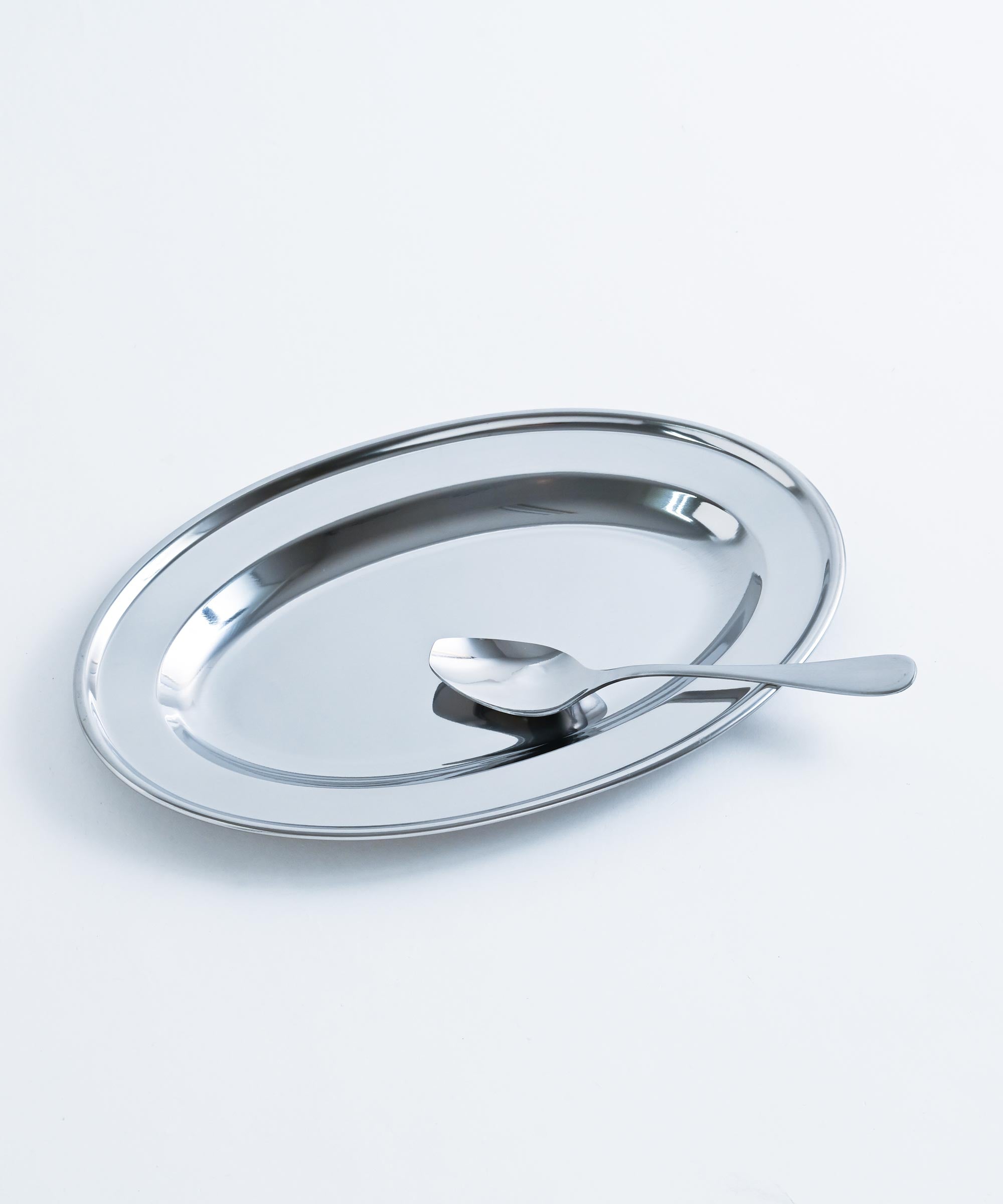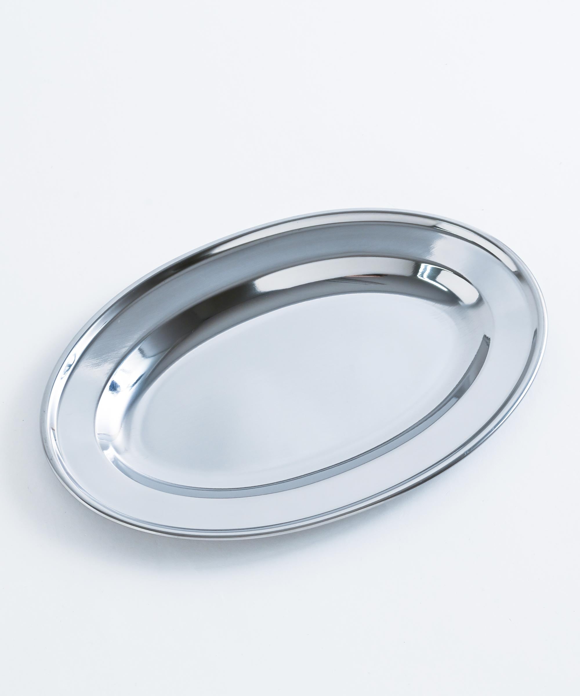 飲食店などで、現在も幅広く利用されている業務用の楕円形状のステンレス皿。